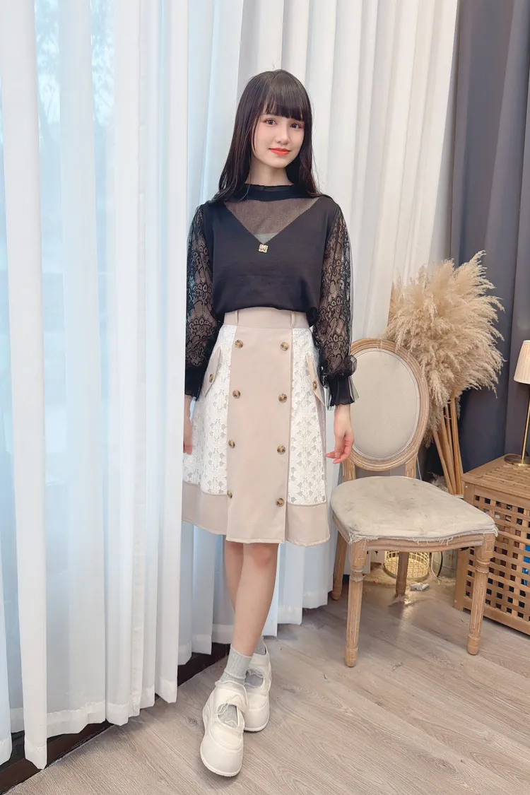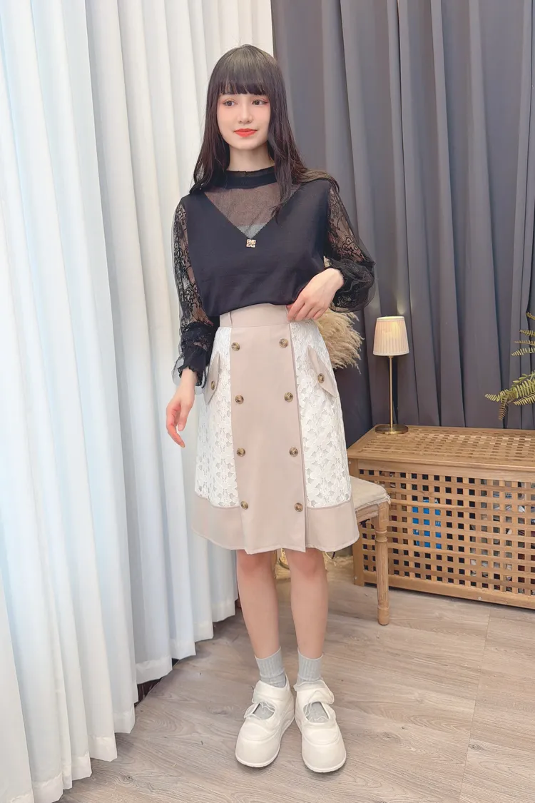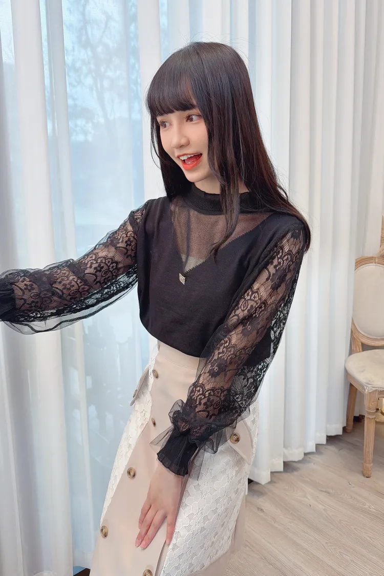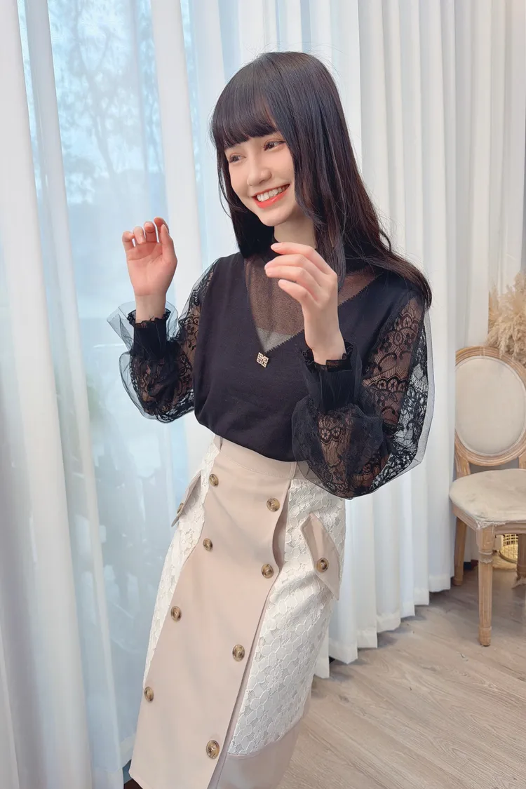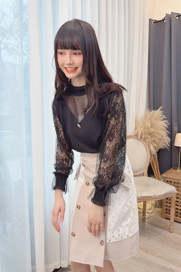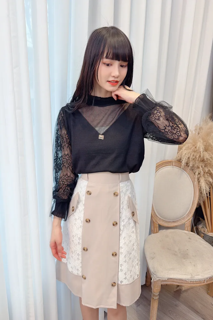 蕾絲袖透膚造型上衣/1色