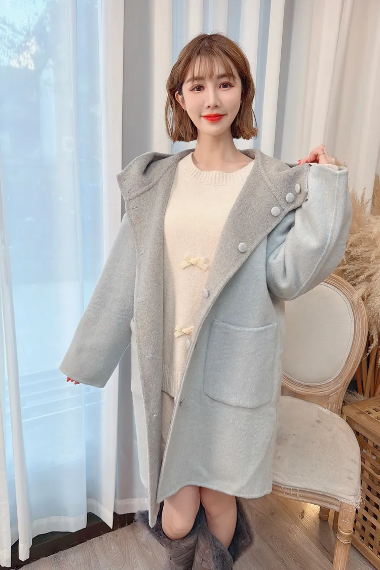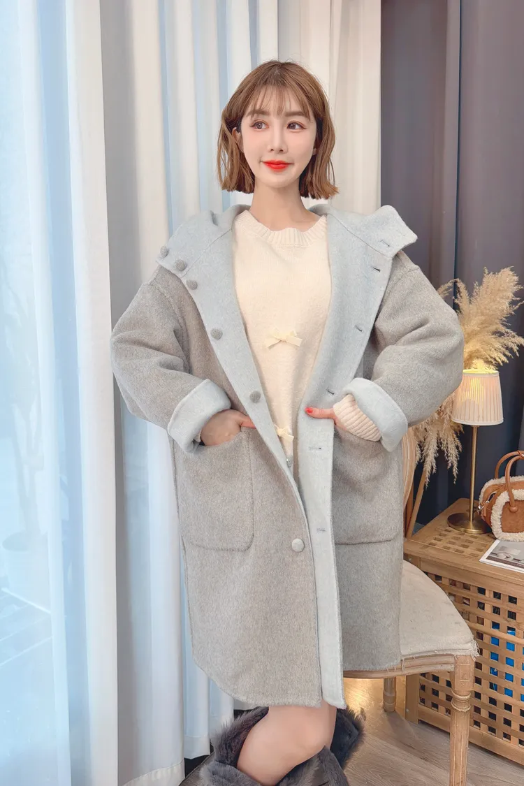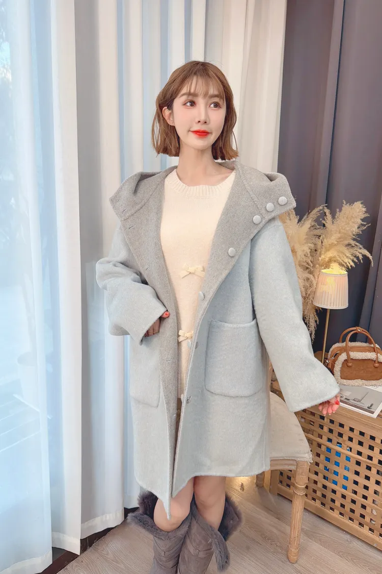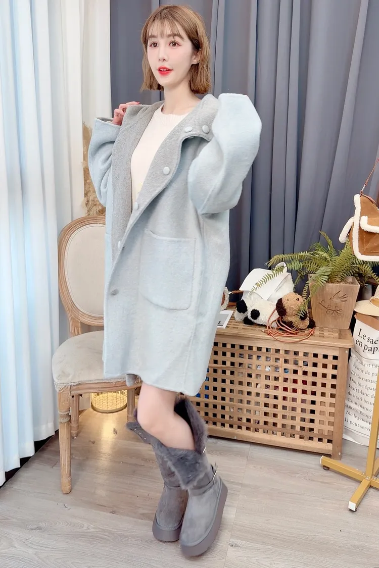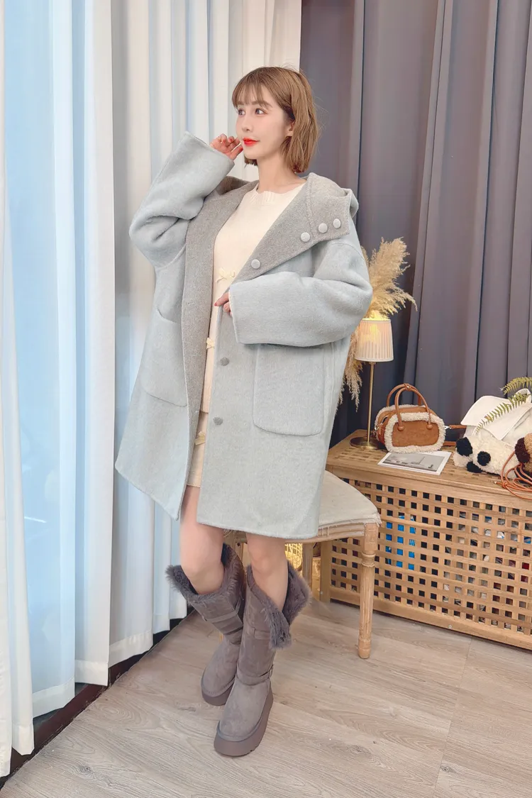 可兩面穿連帽羊毛大衣/3色