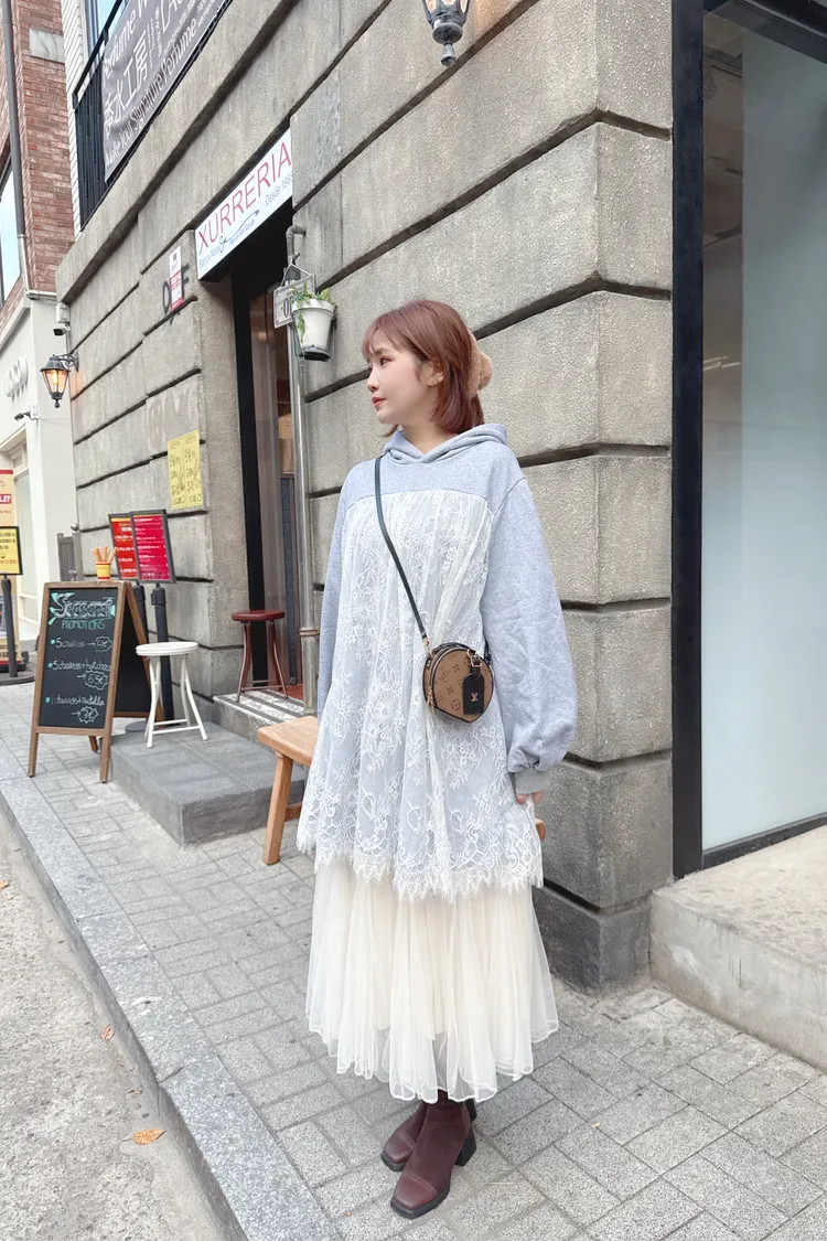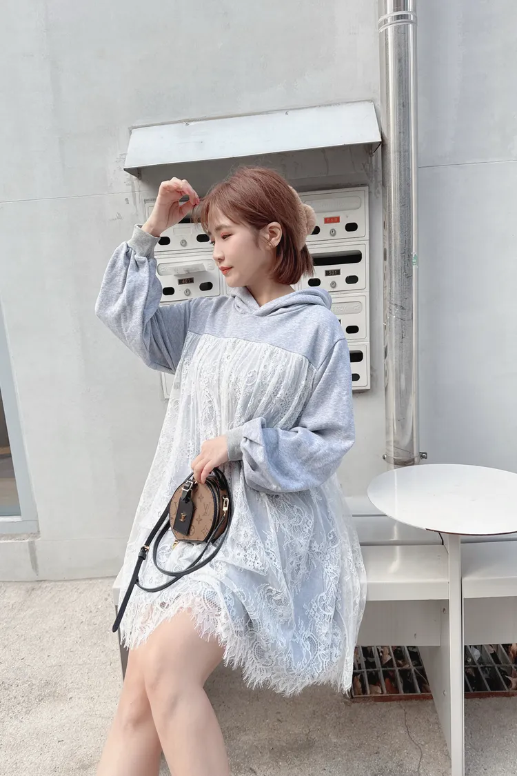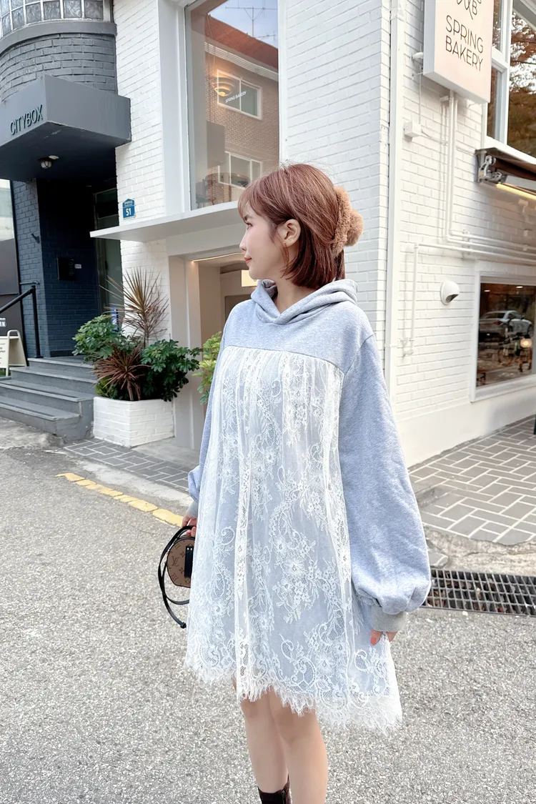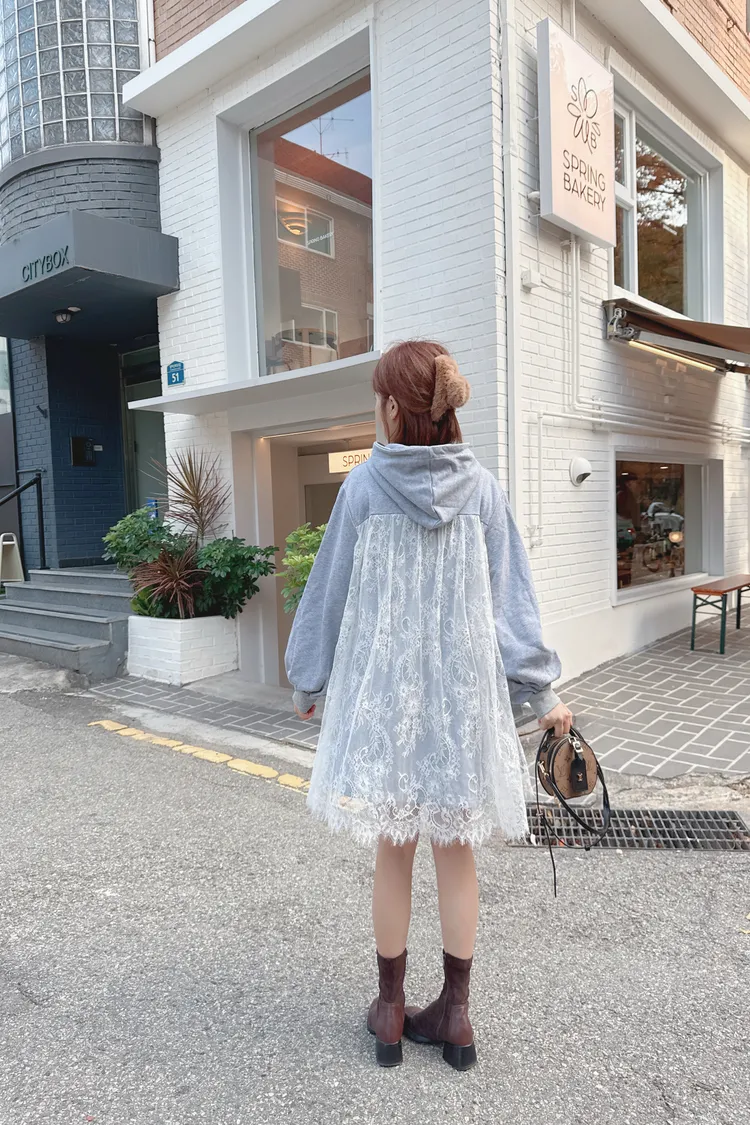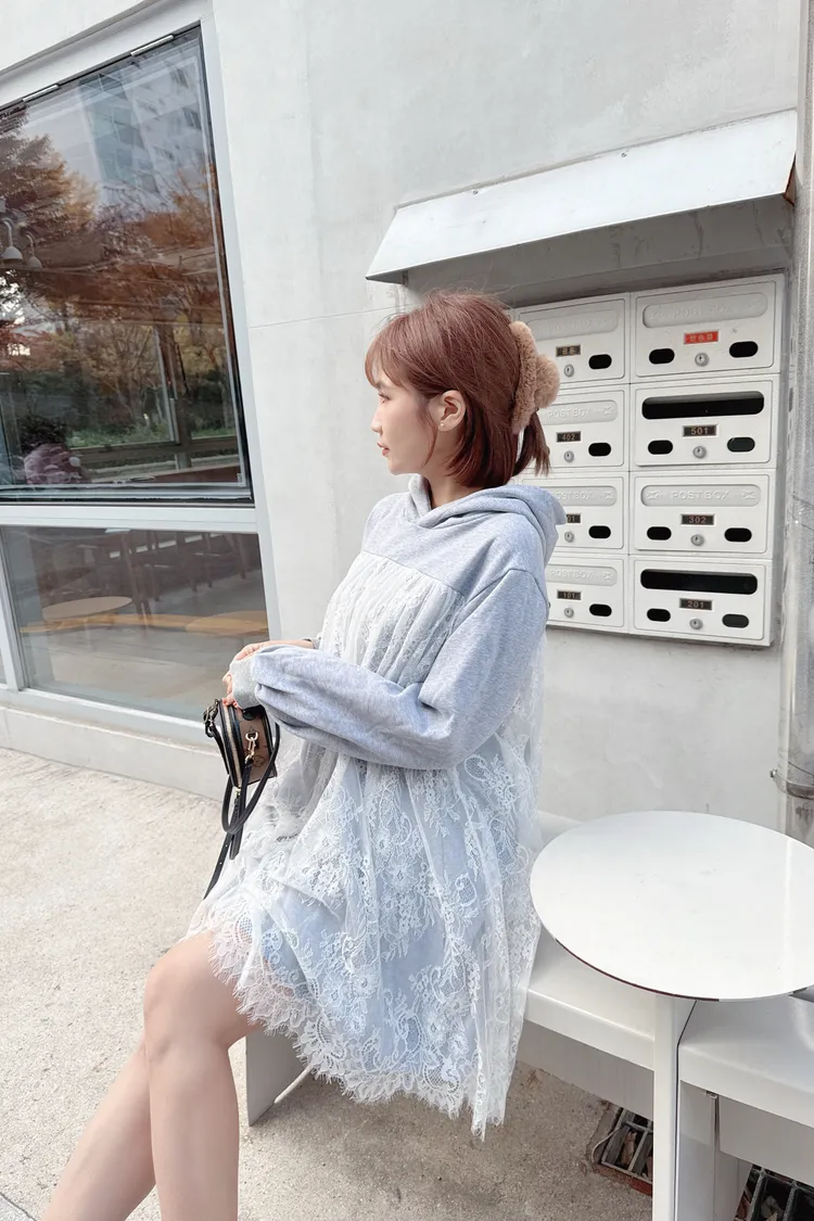 蕾絲連帽長版上衣/1色