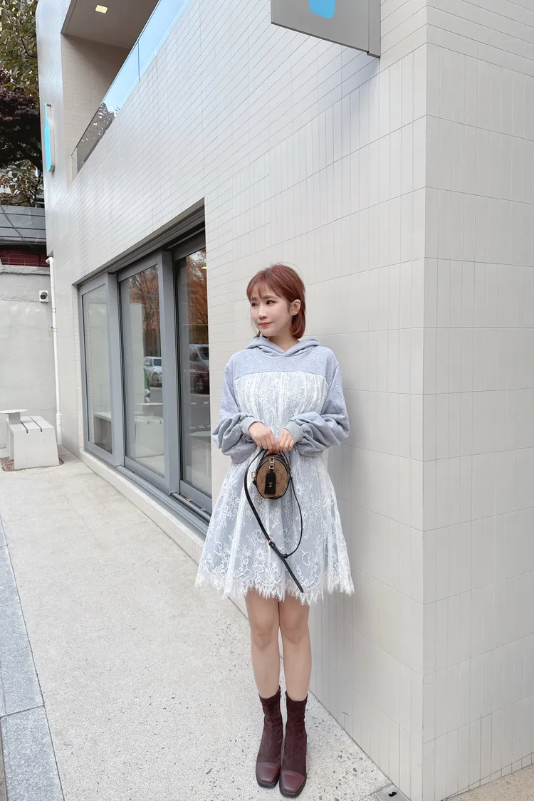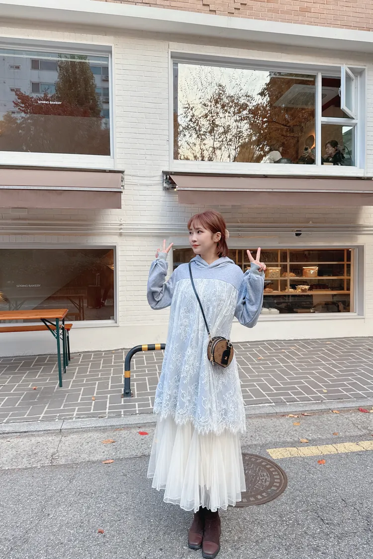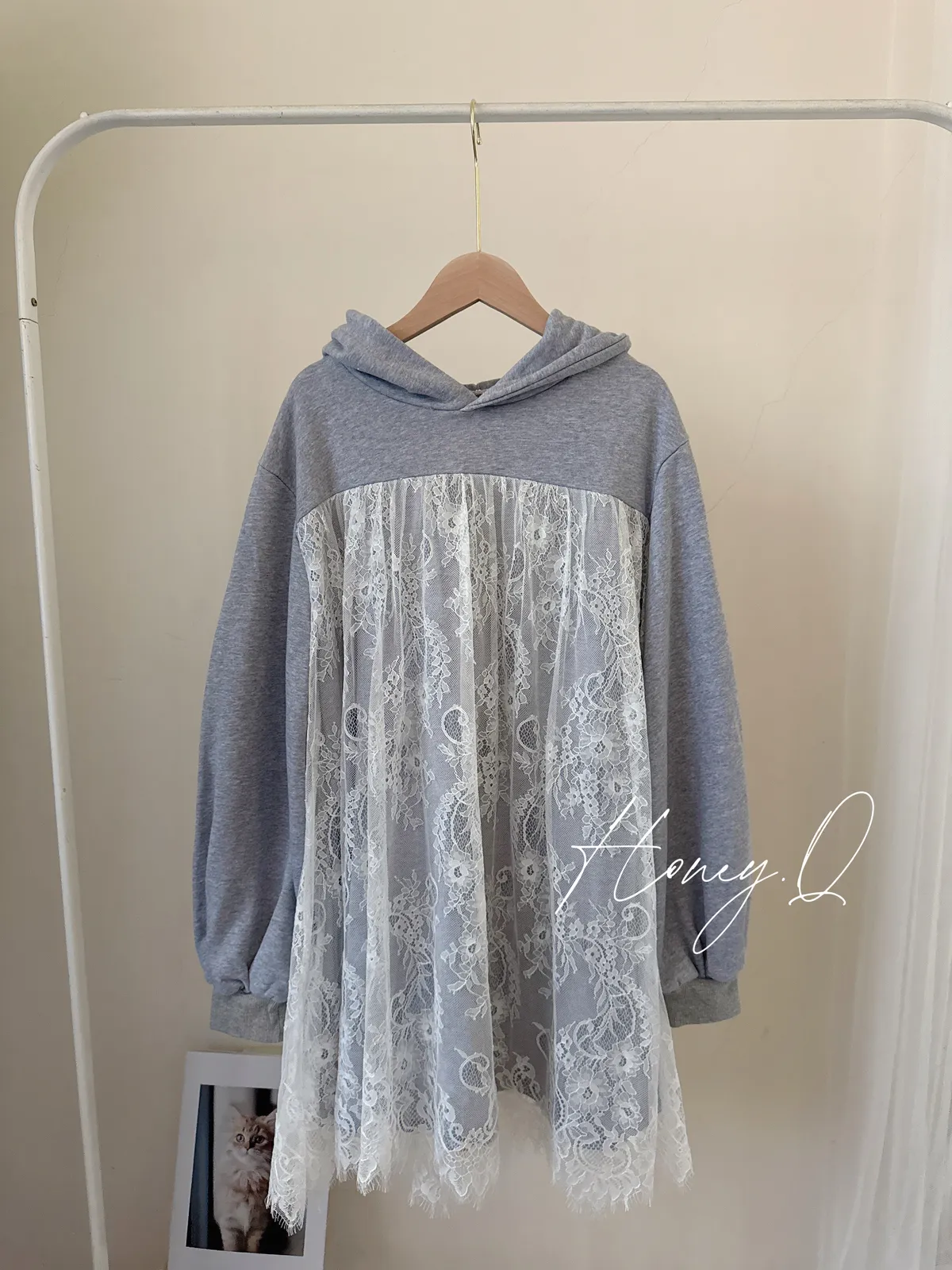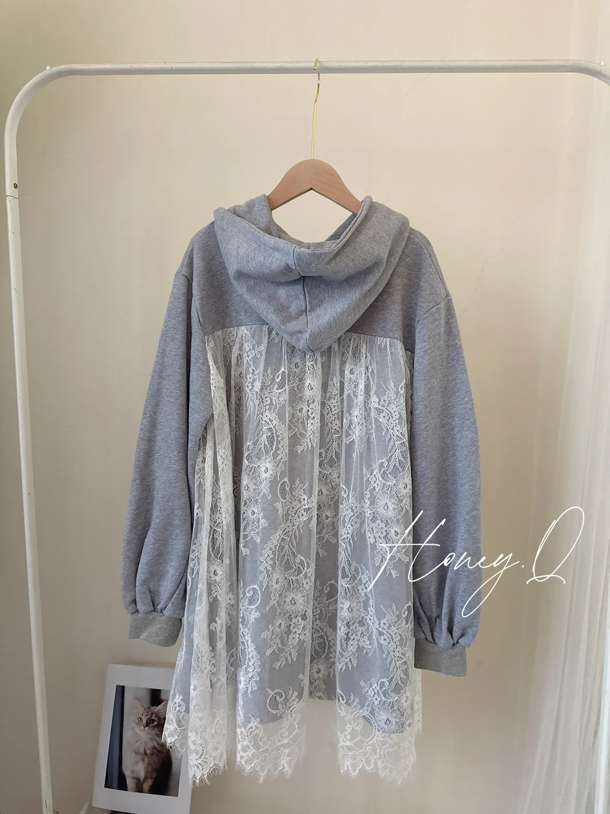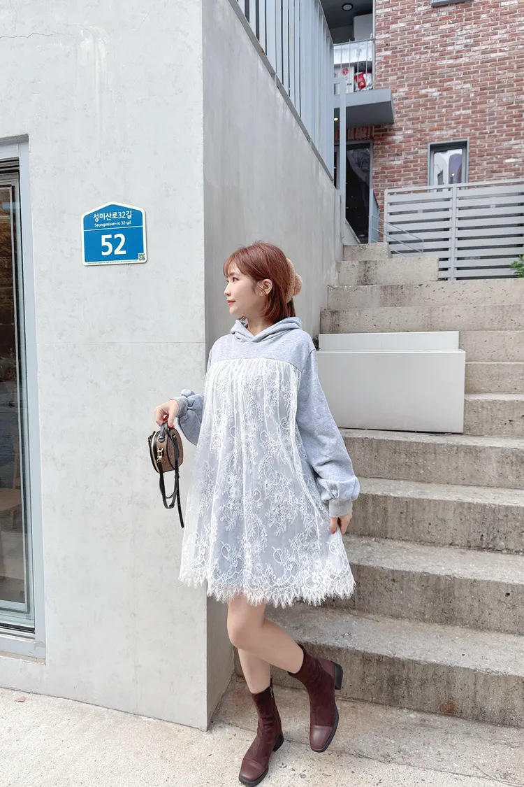 蕾絲連帽長版上衣/1色