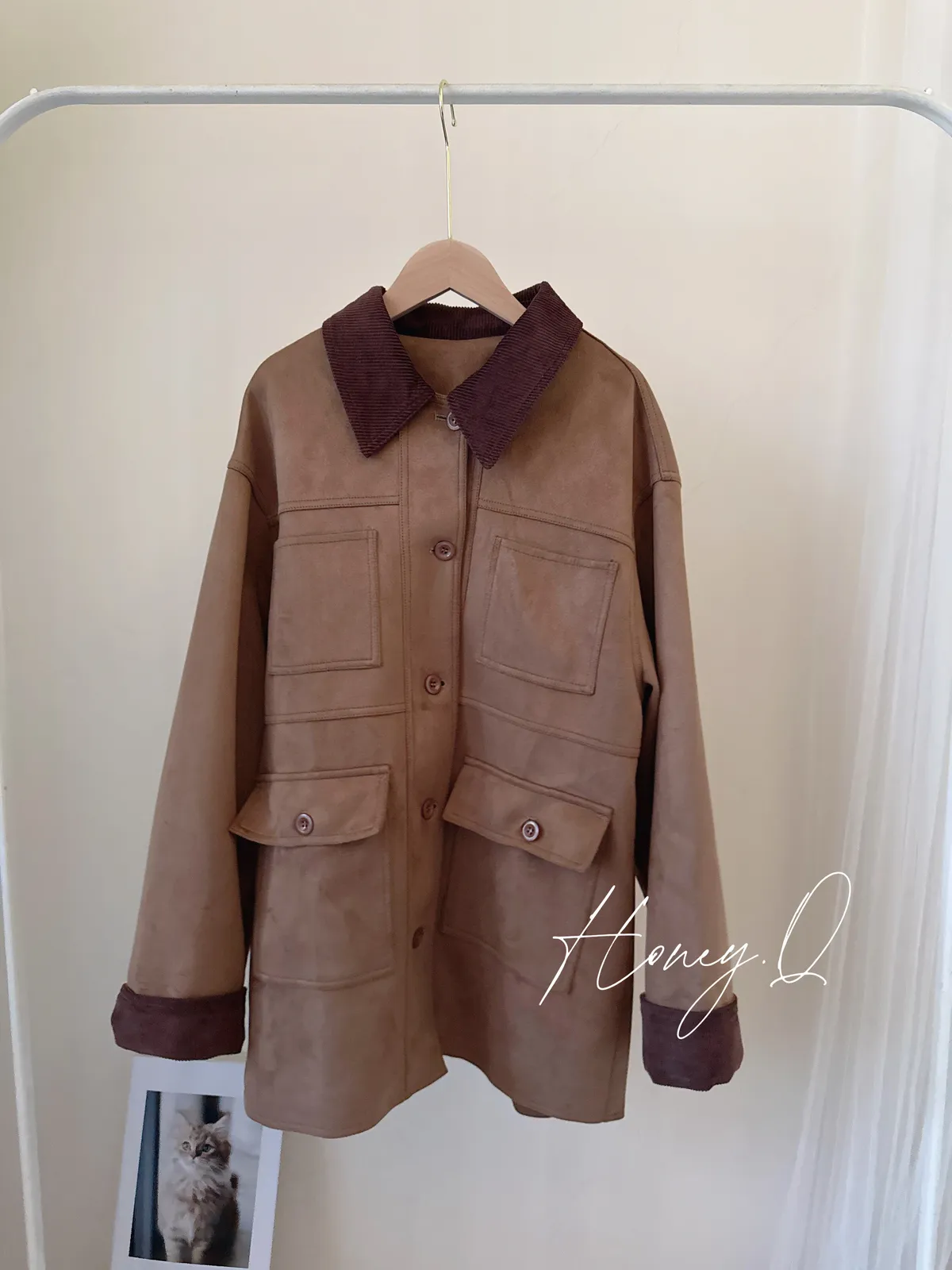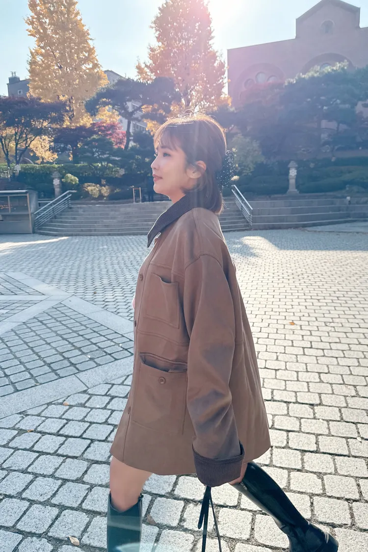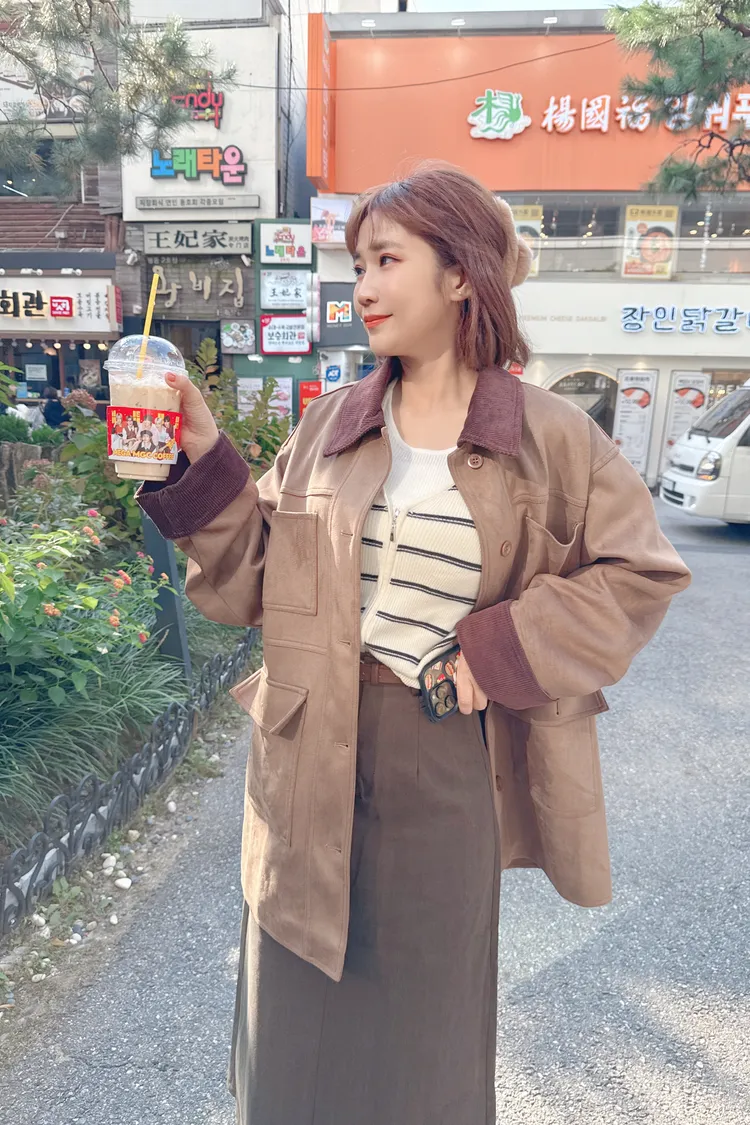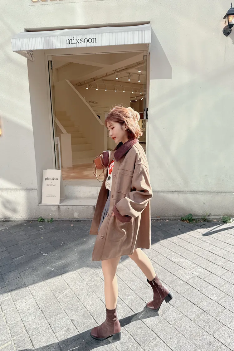 口袋麂皮長版外套/1色