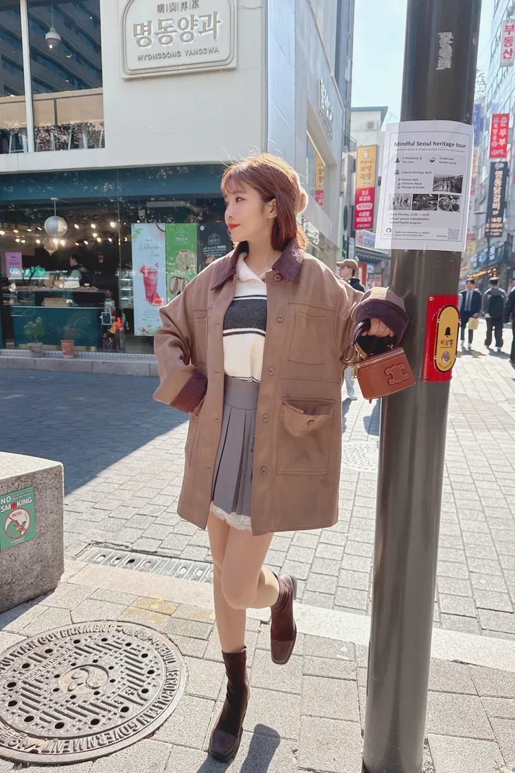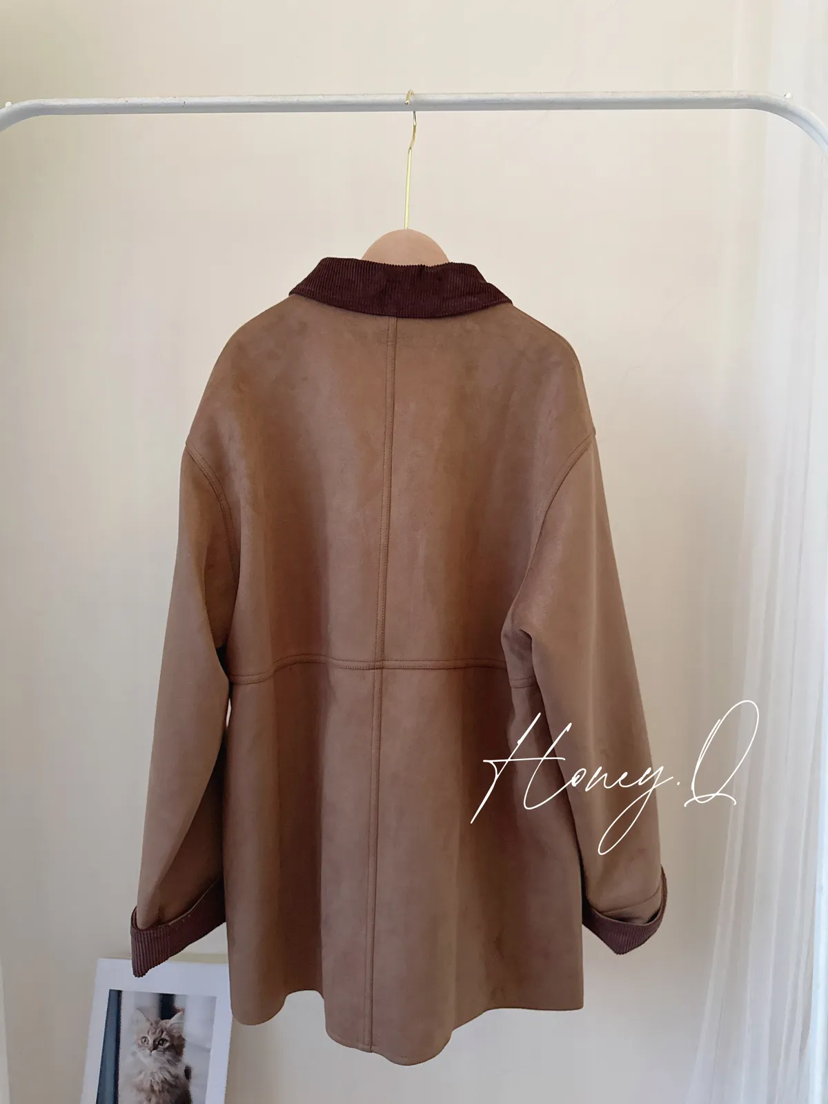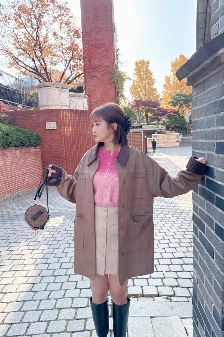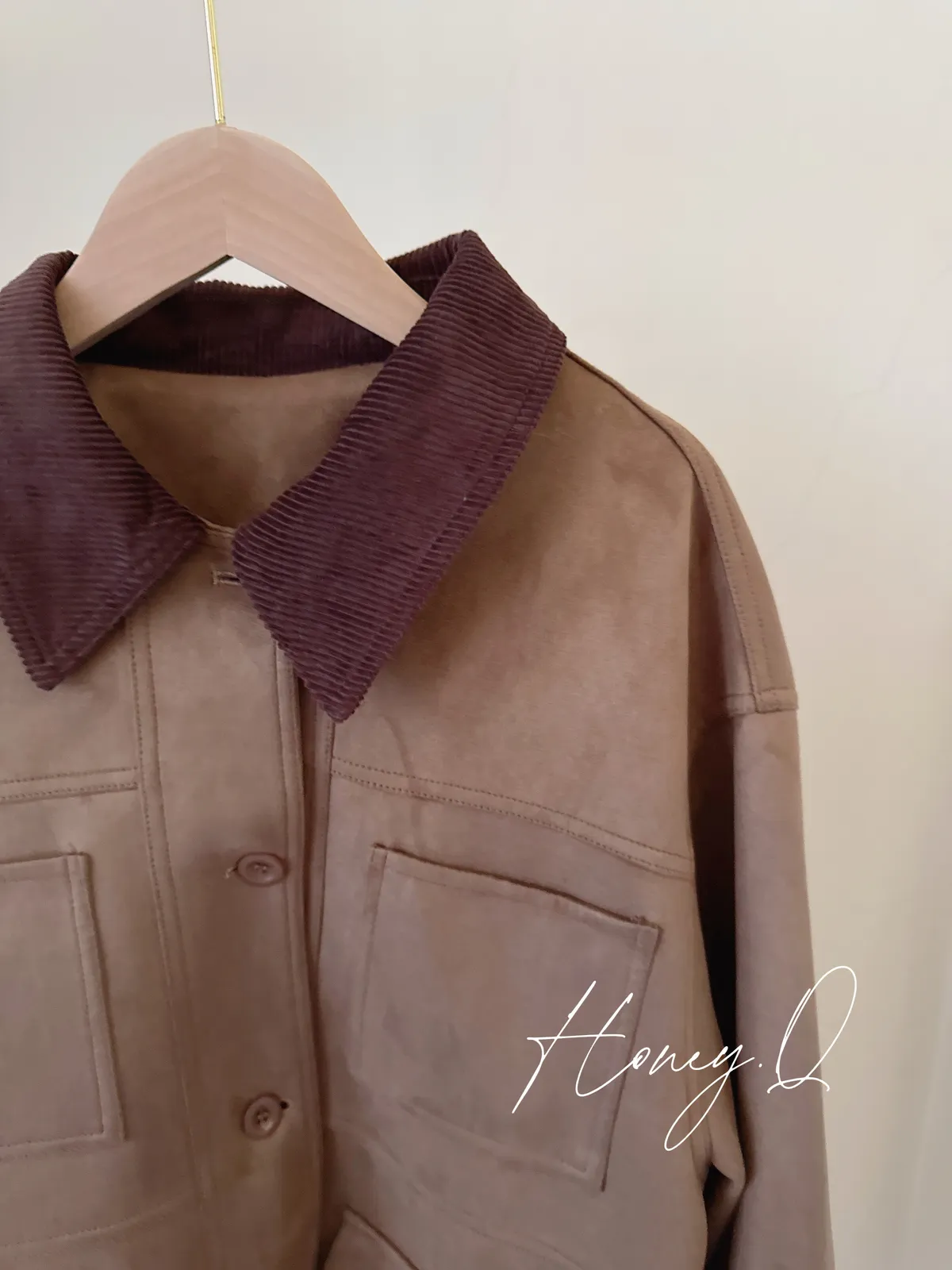 口袋麂皮長版外套/1色