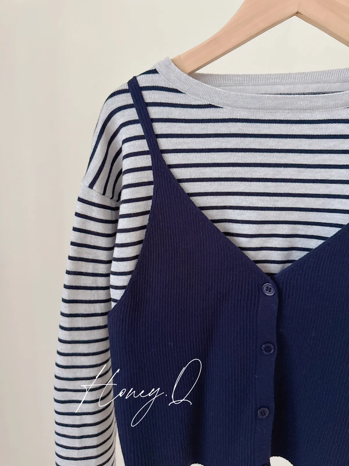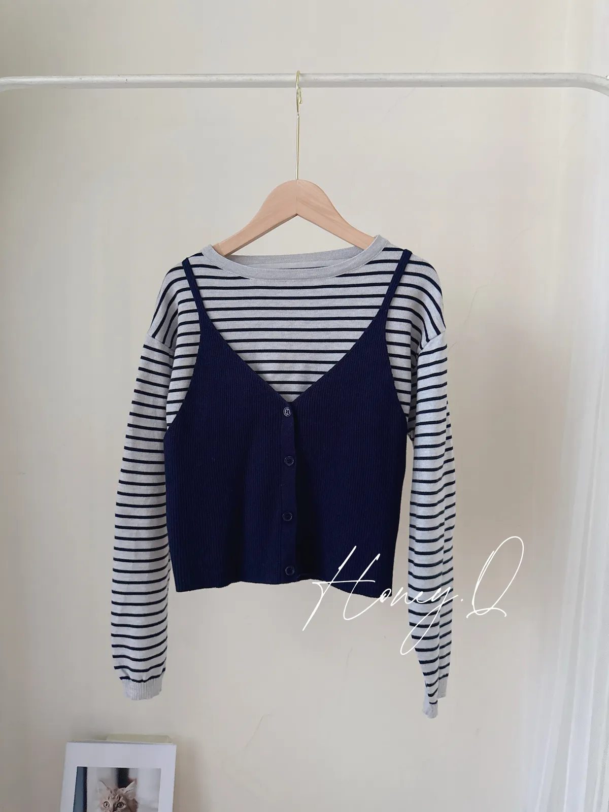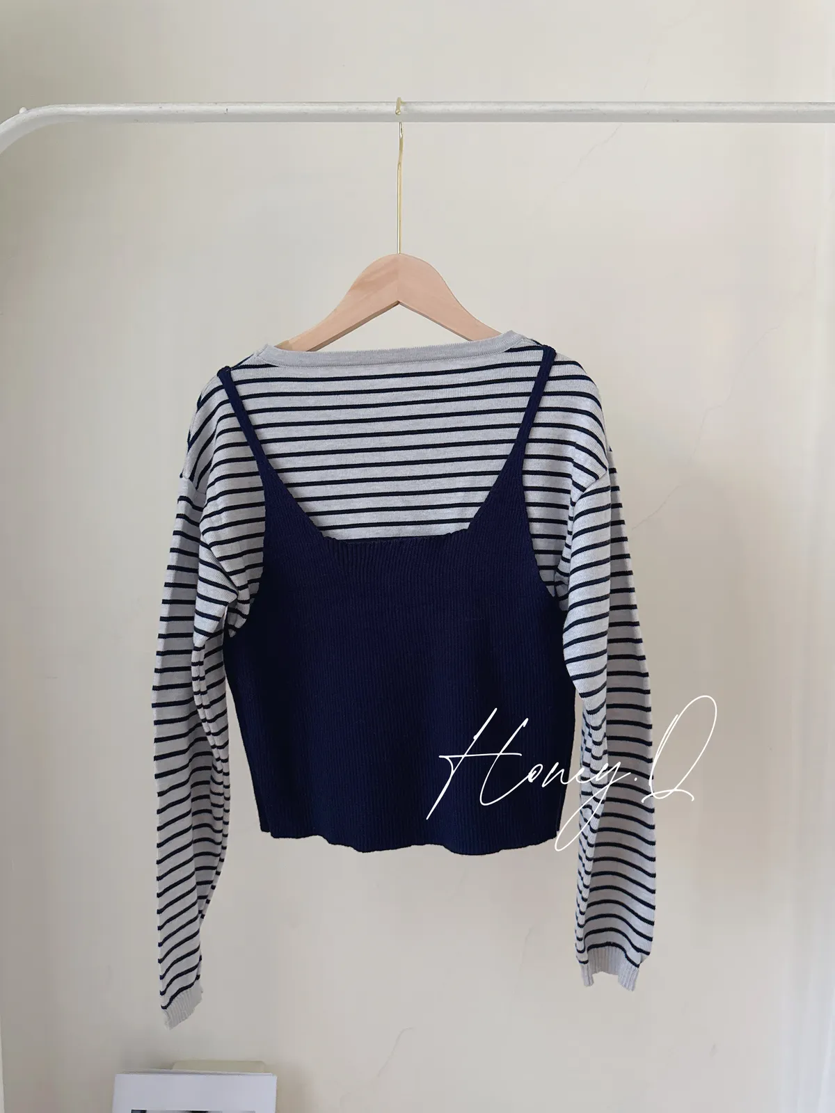 條紋假兩件背心上衣/1色
