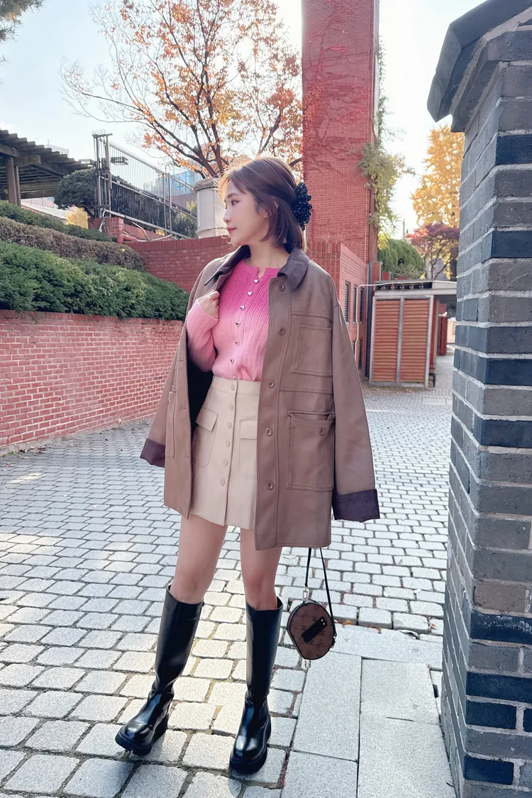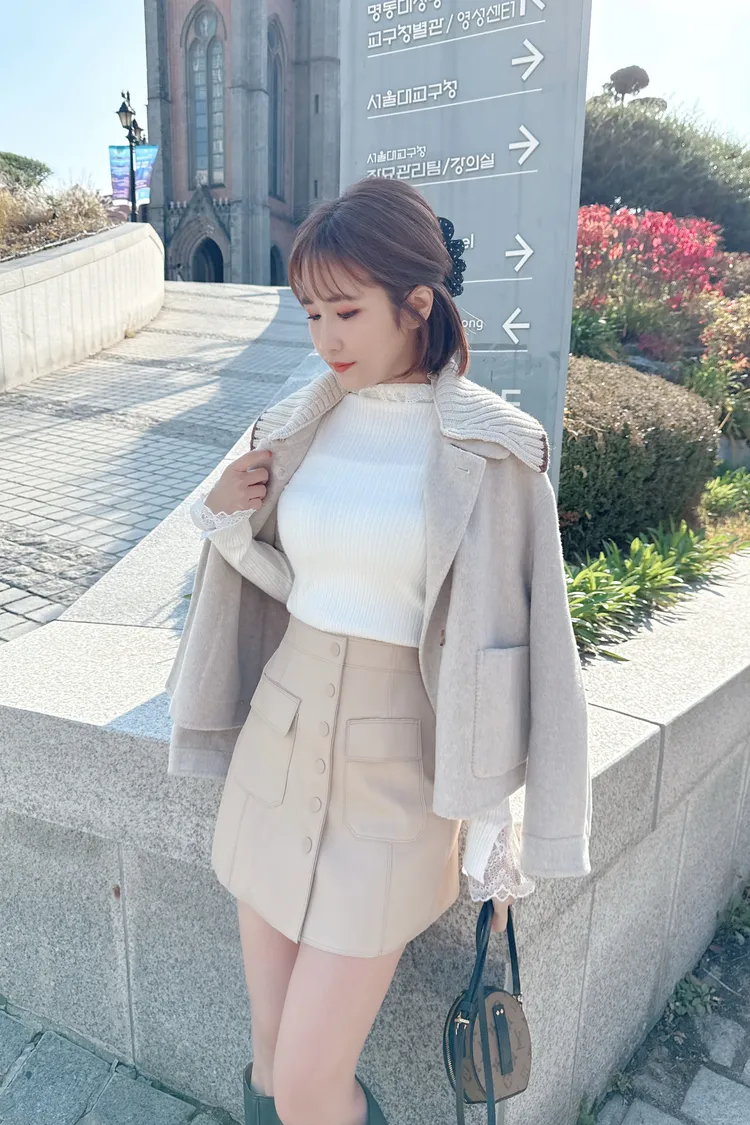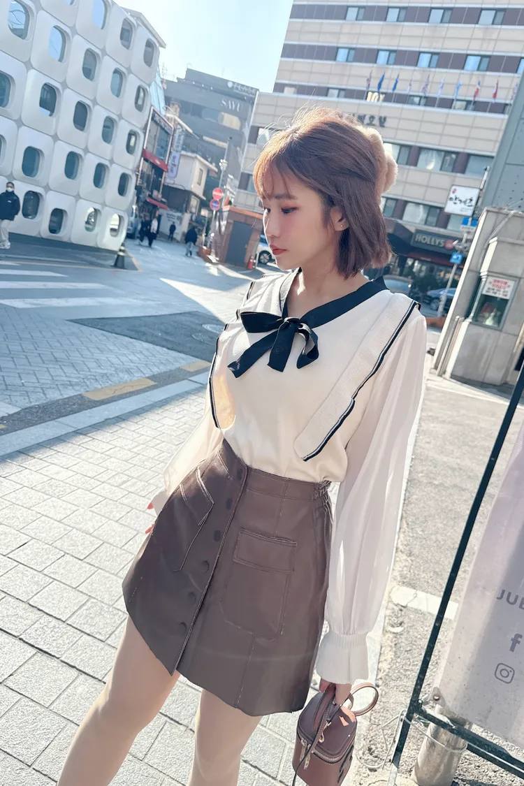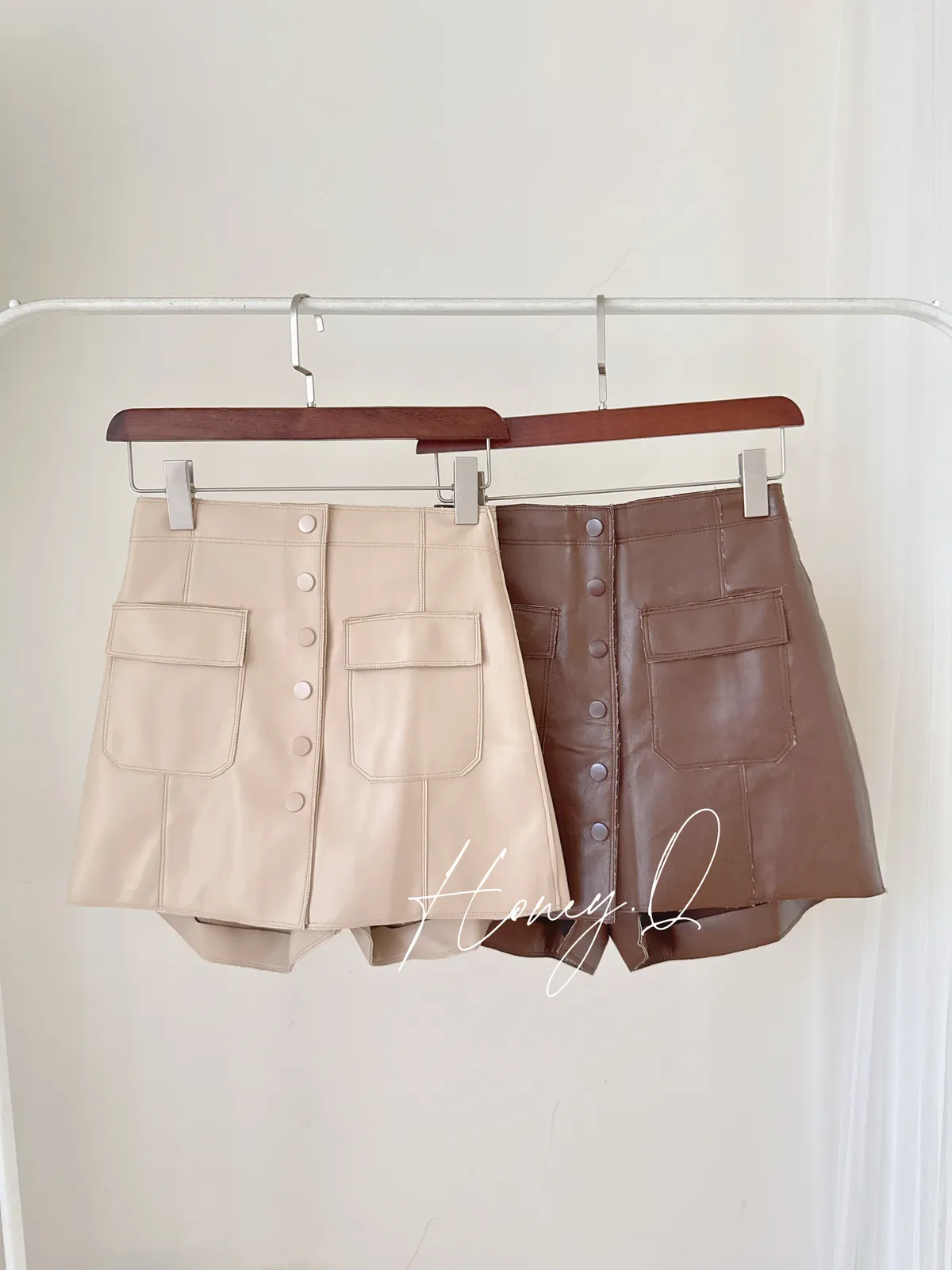 排釦皮褲裙/2色