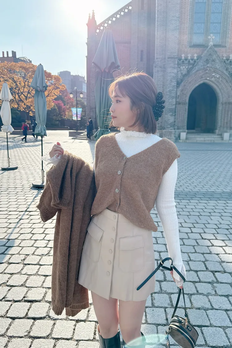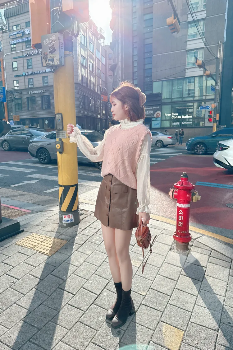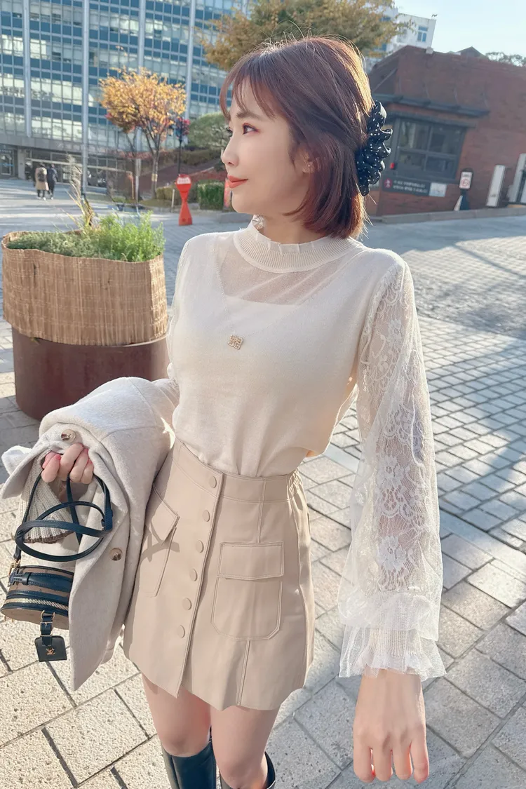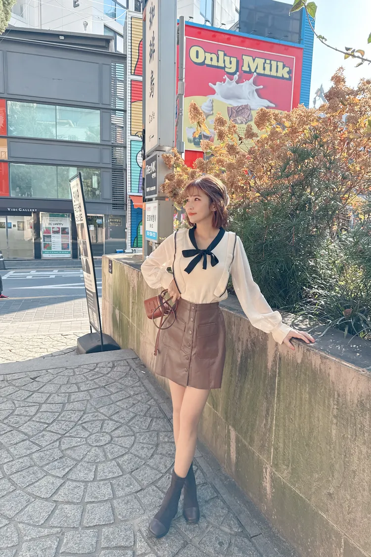 排釦皮褲裙/2色