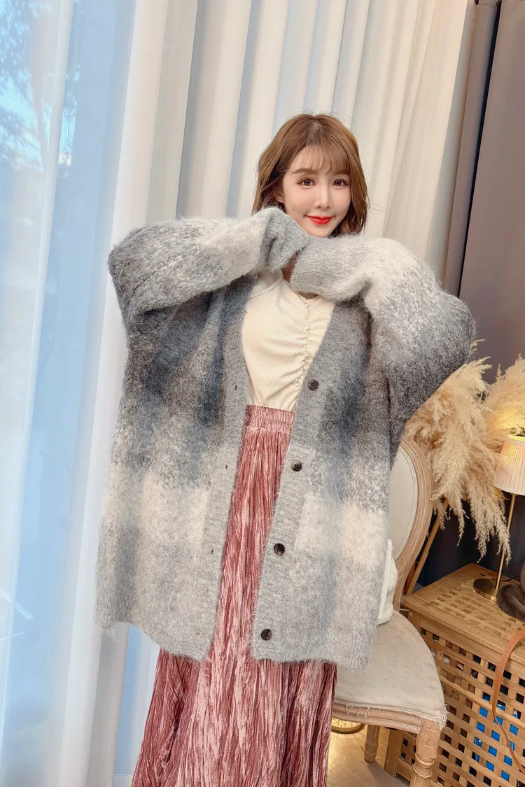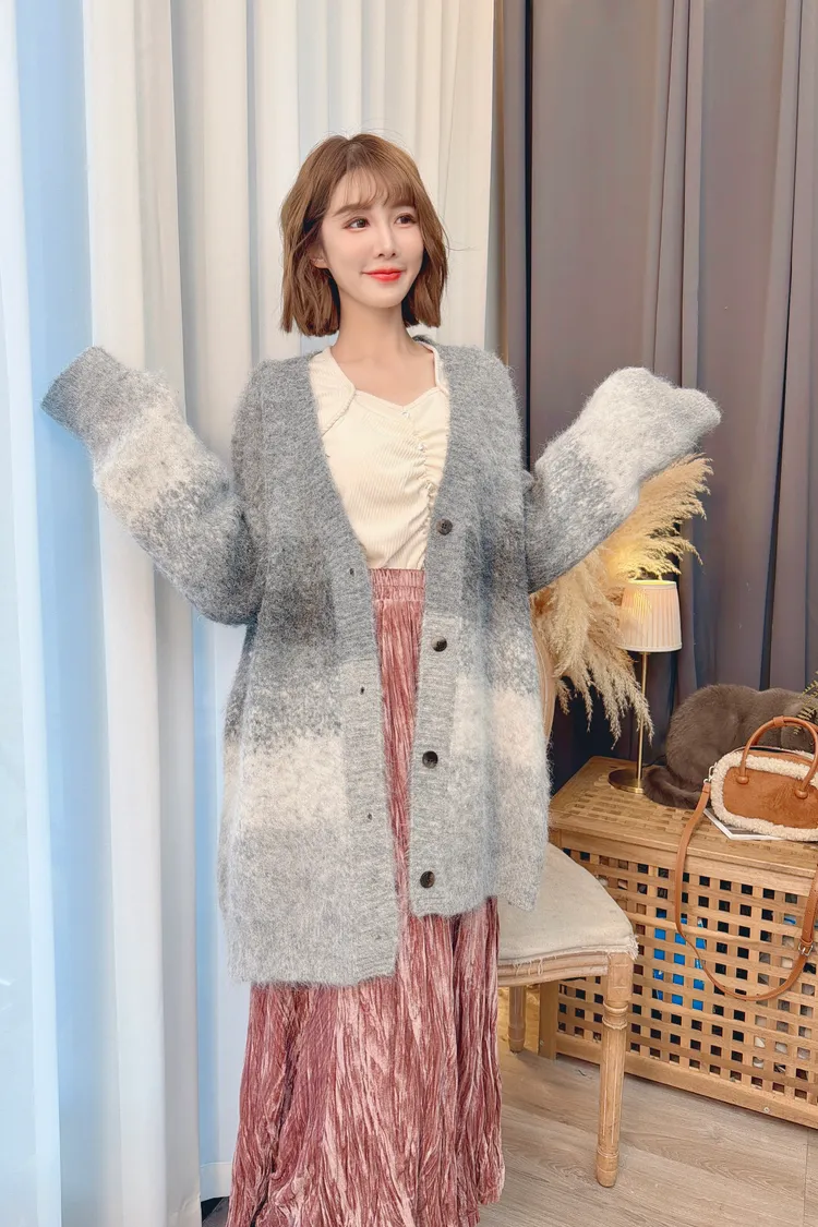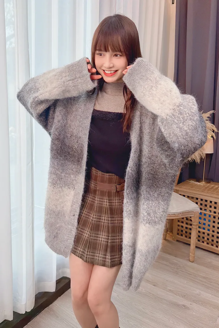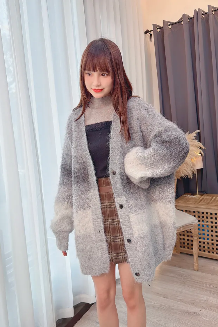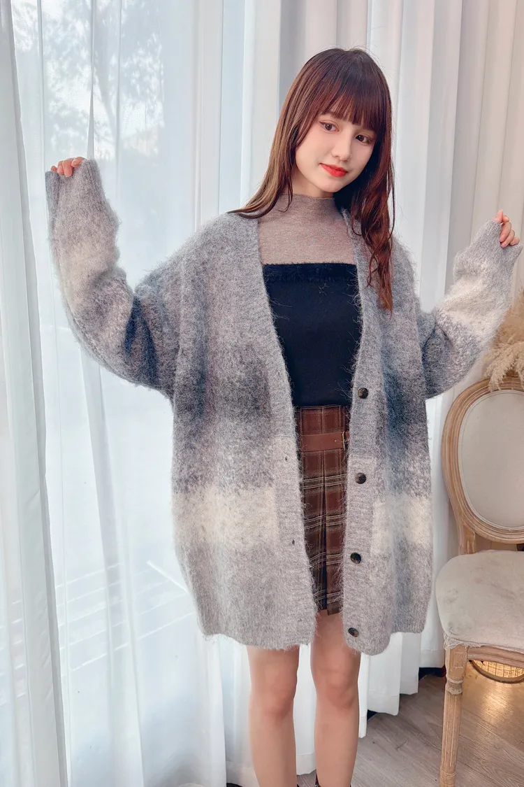 漸層配色長版針織外套/1色