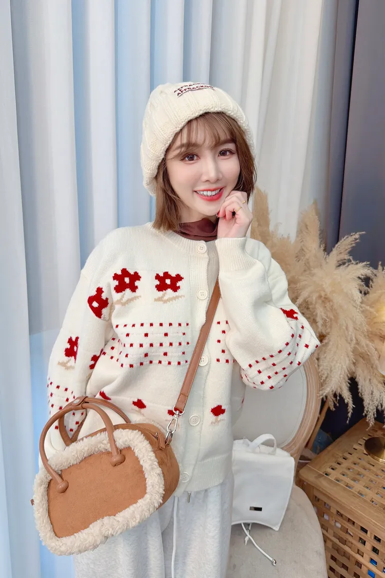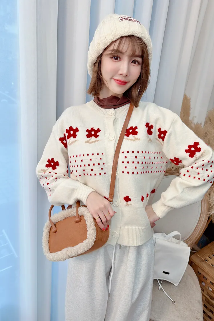 紅色小花針織上衣/1色