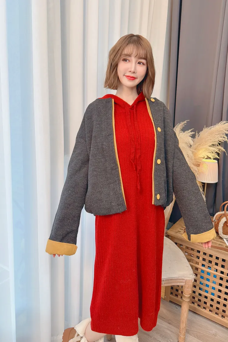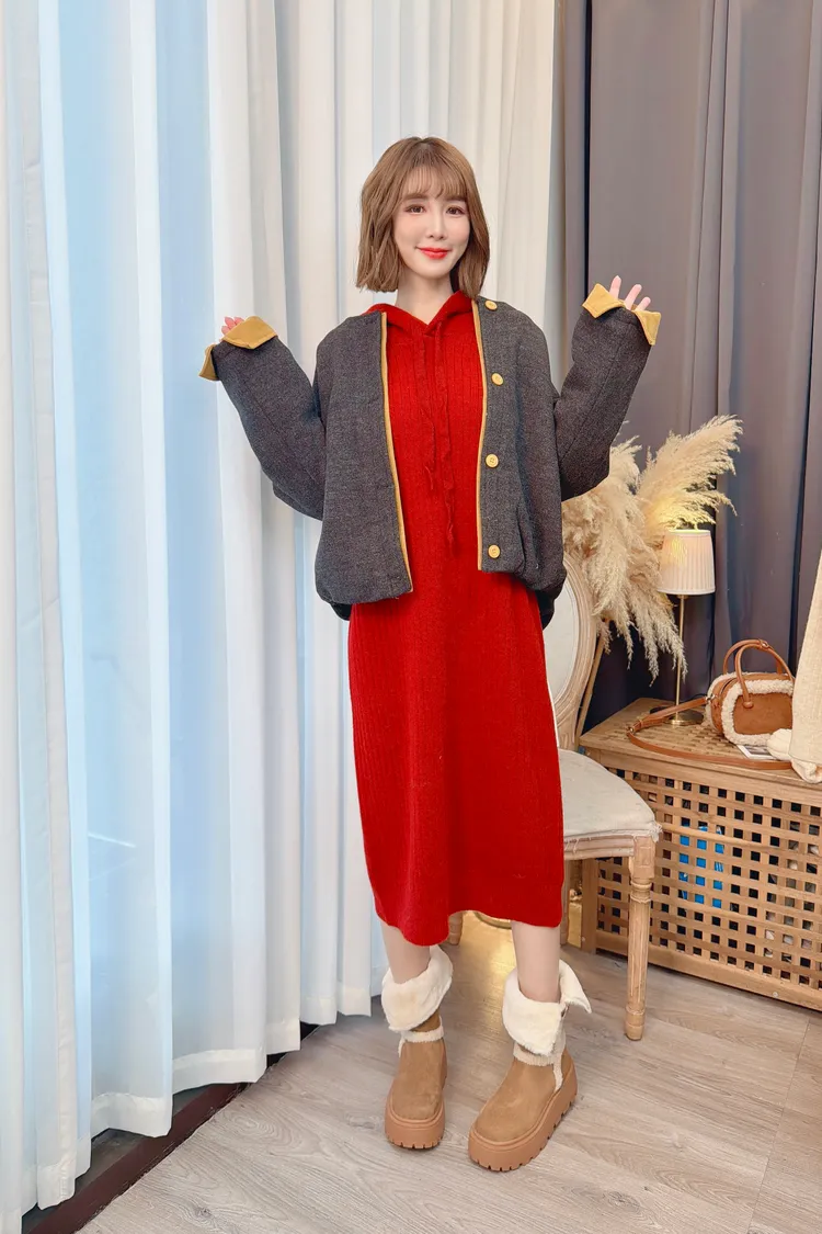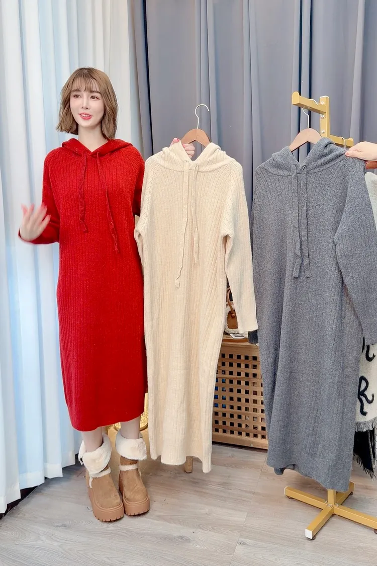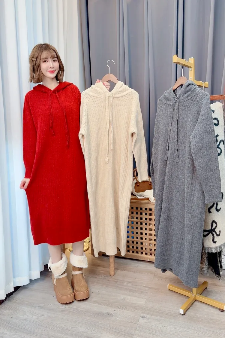 可愛連帽針織洋裝/3色