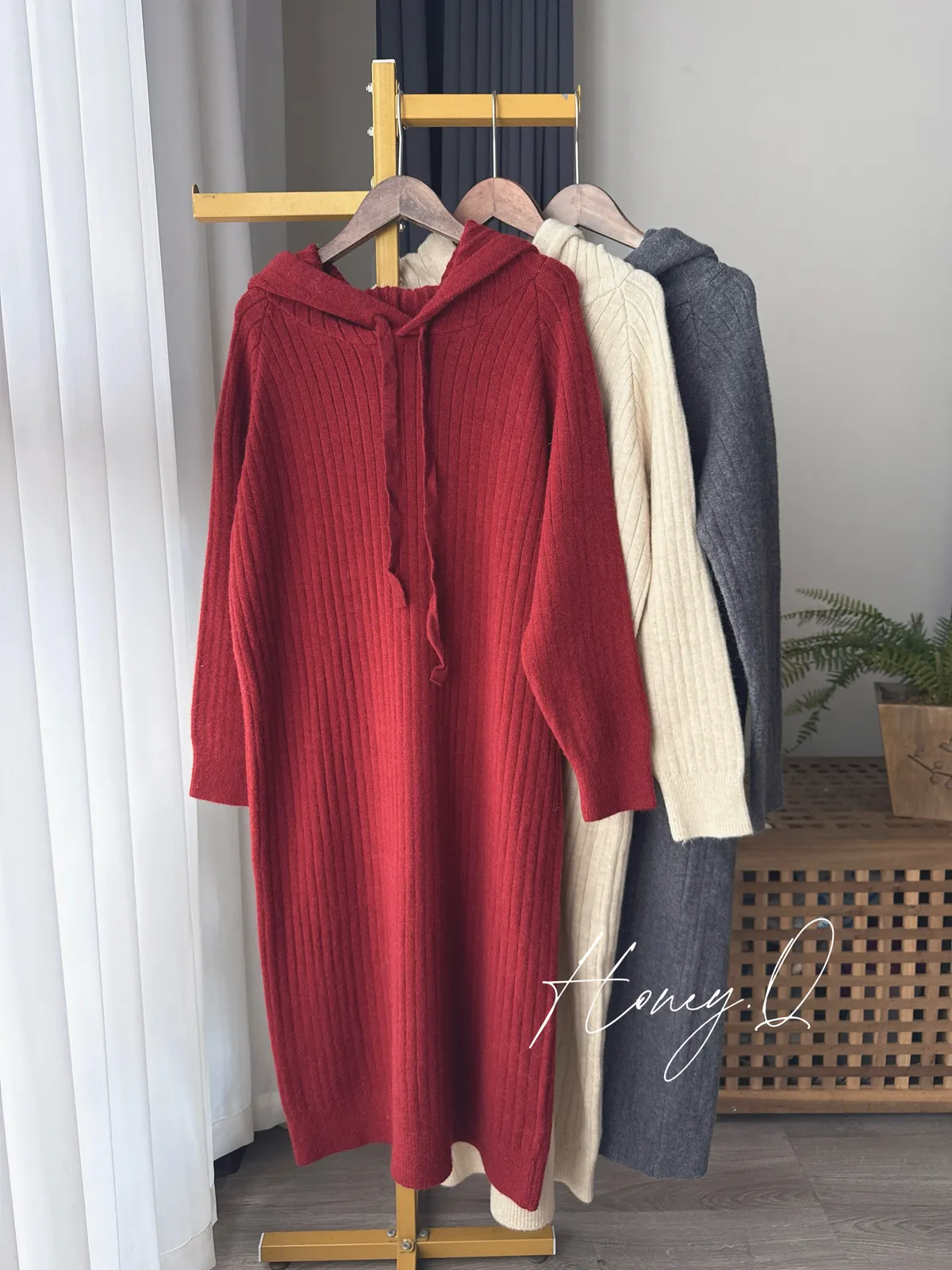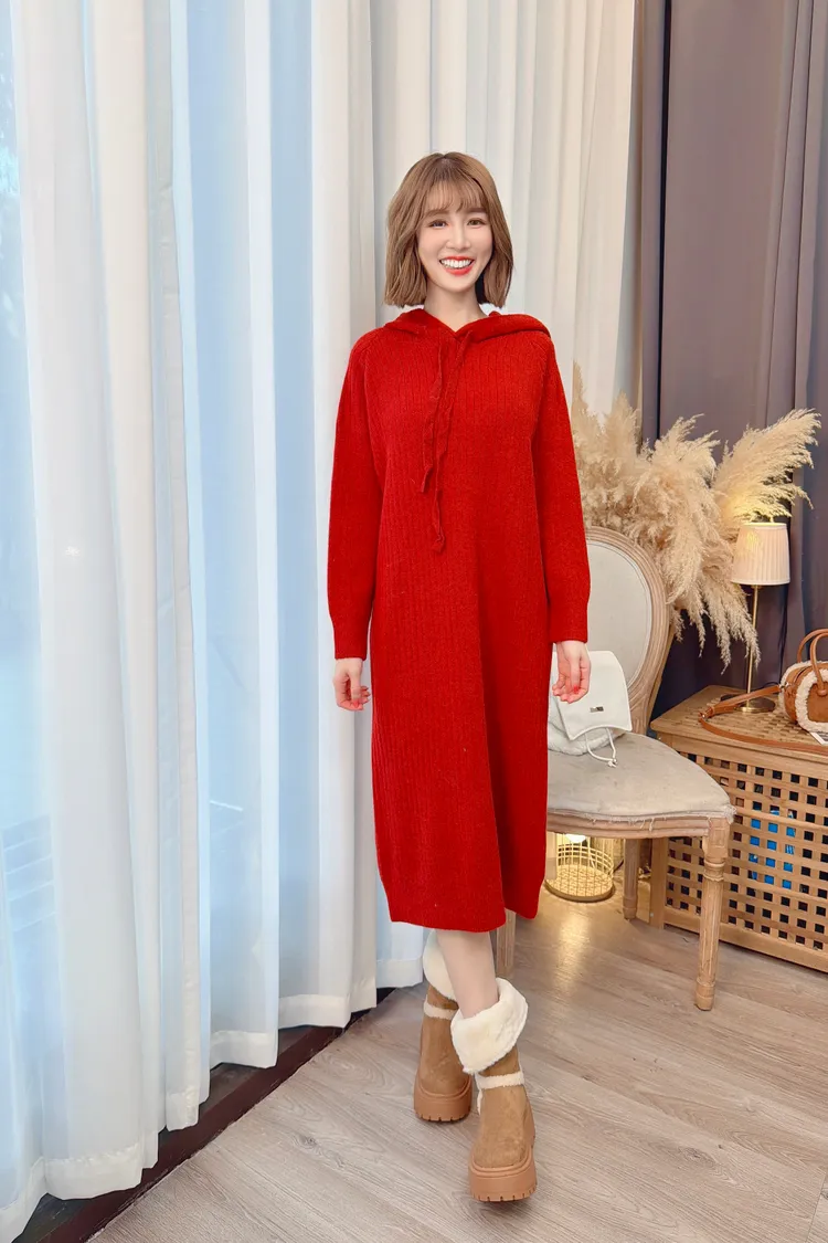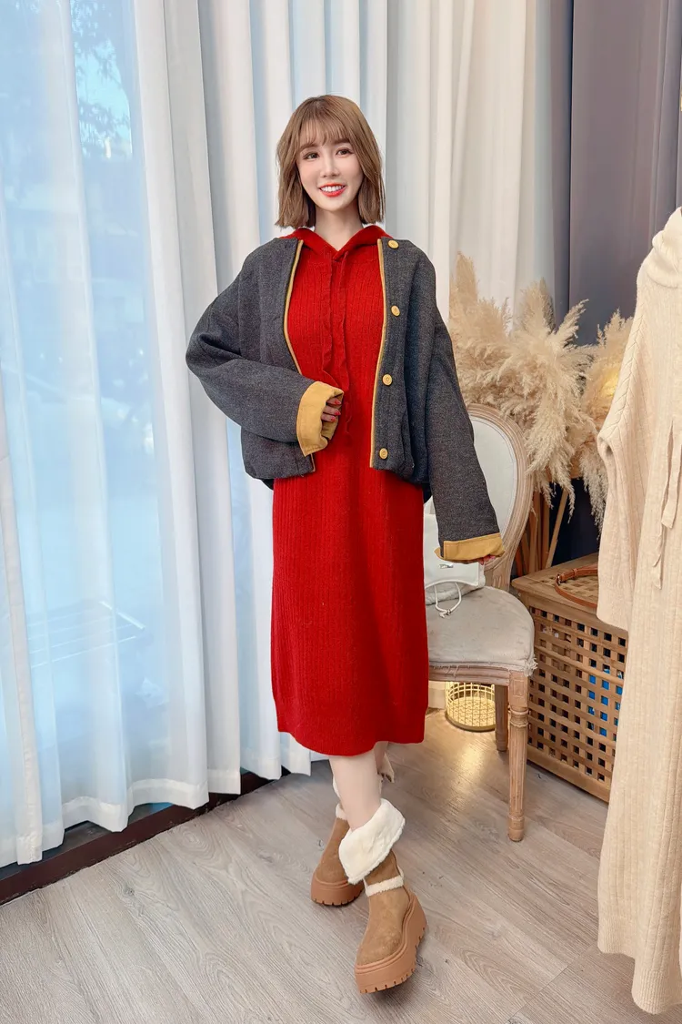 可愛連帽針織洋裝/3色