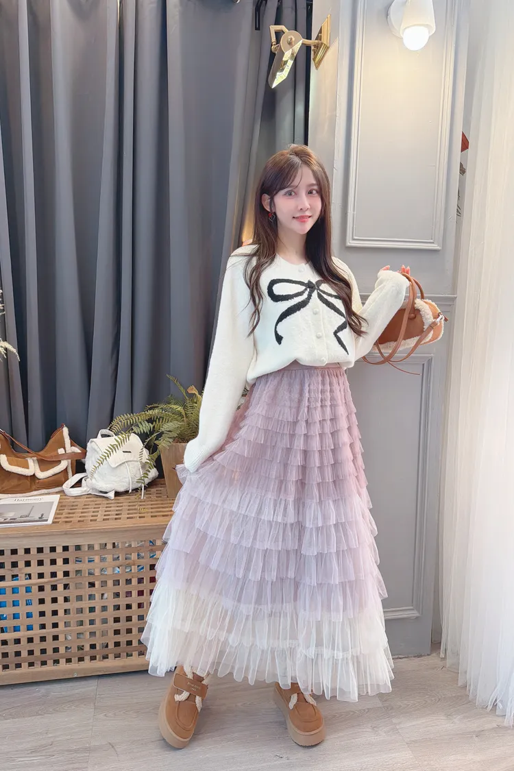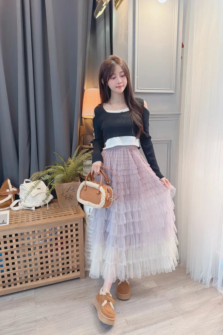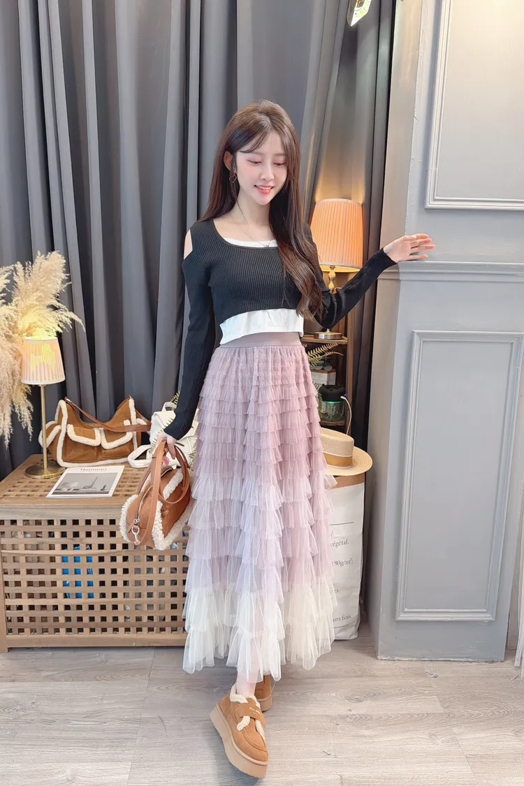 漸層配色蛋糕長裙/2色