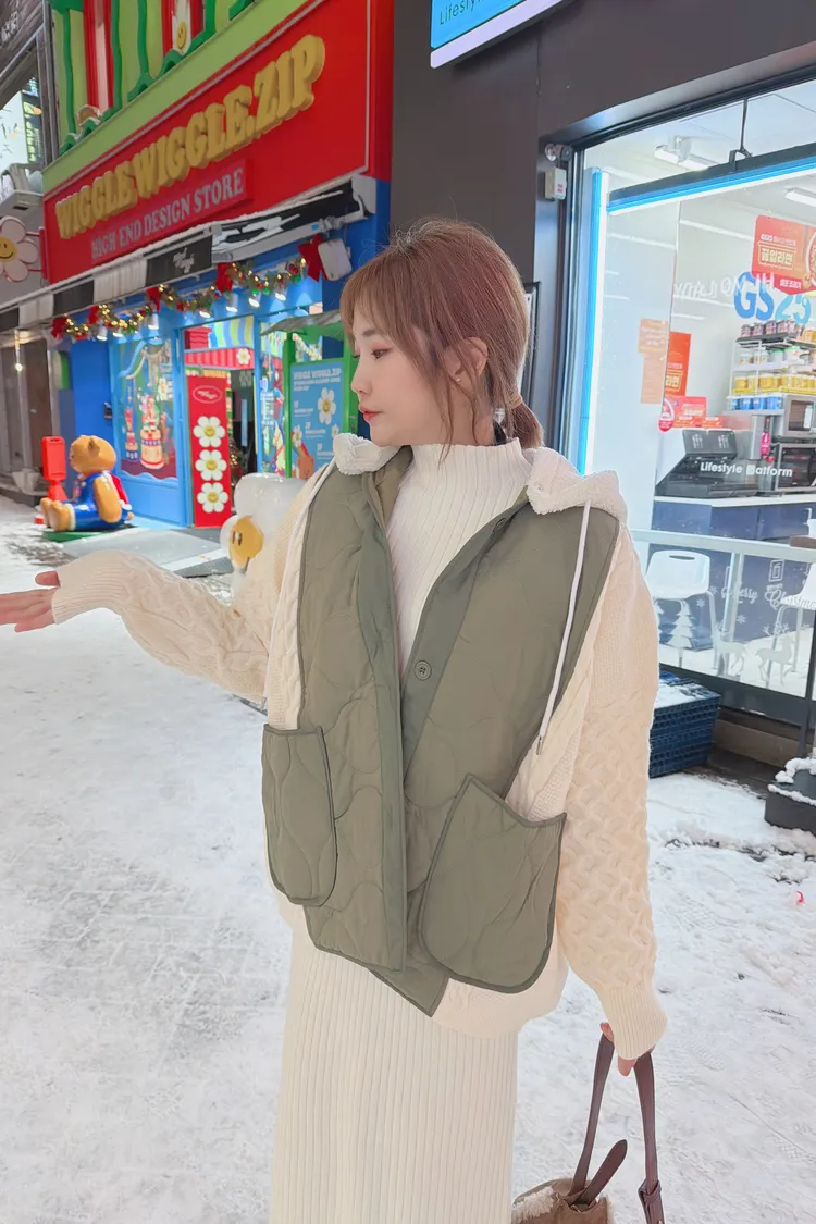 鋪棉拼接連帽外套/2色