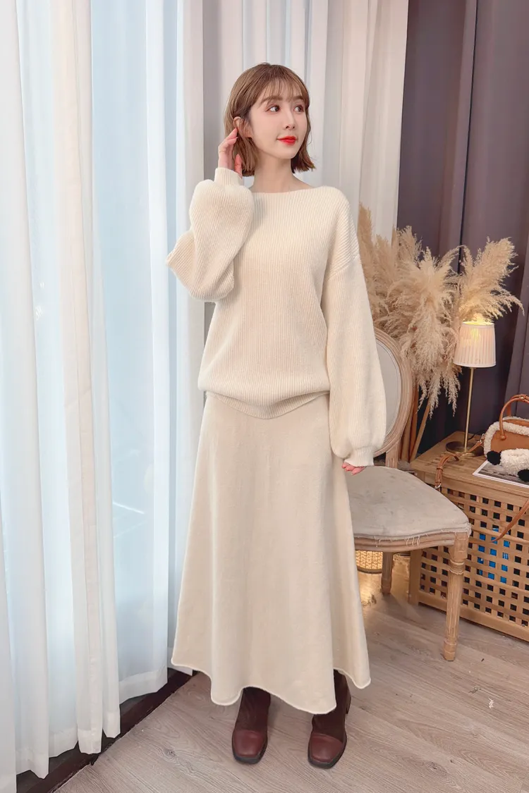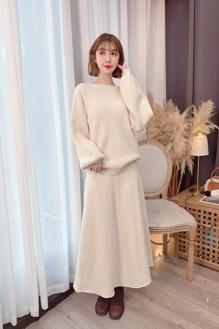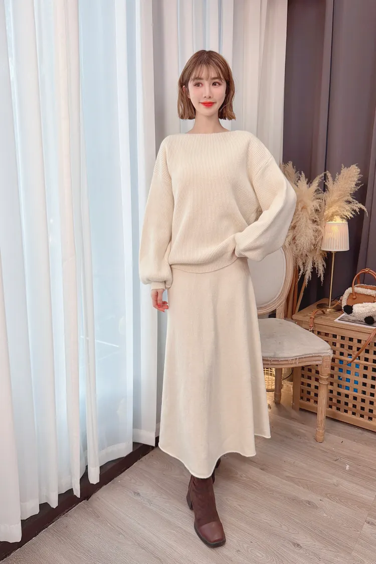 圓領A字裙針織套裝/2色