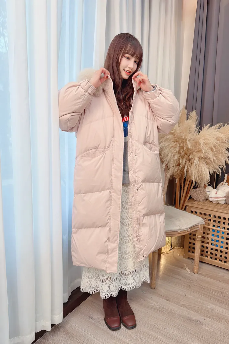 大毛毛長版鴨絨外套/2色