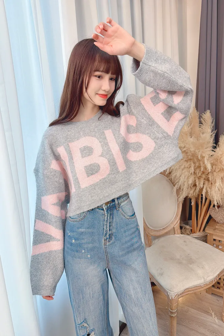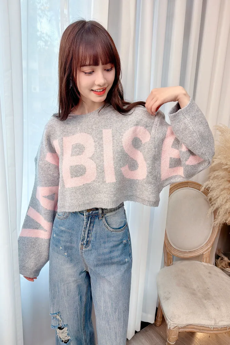 大字母短版針織上衣/1色