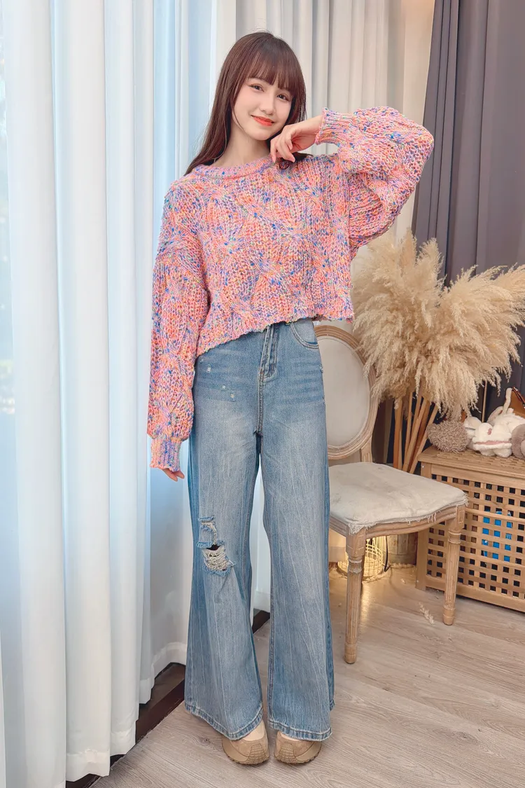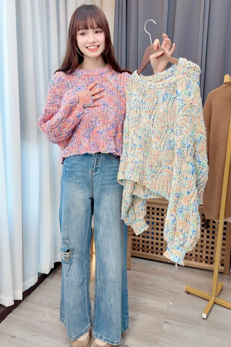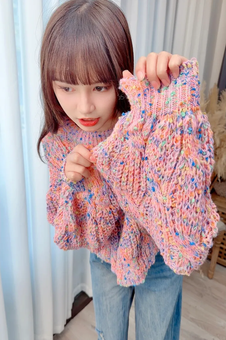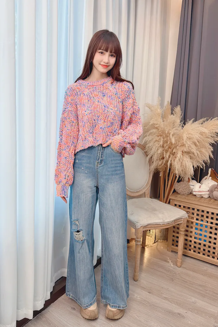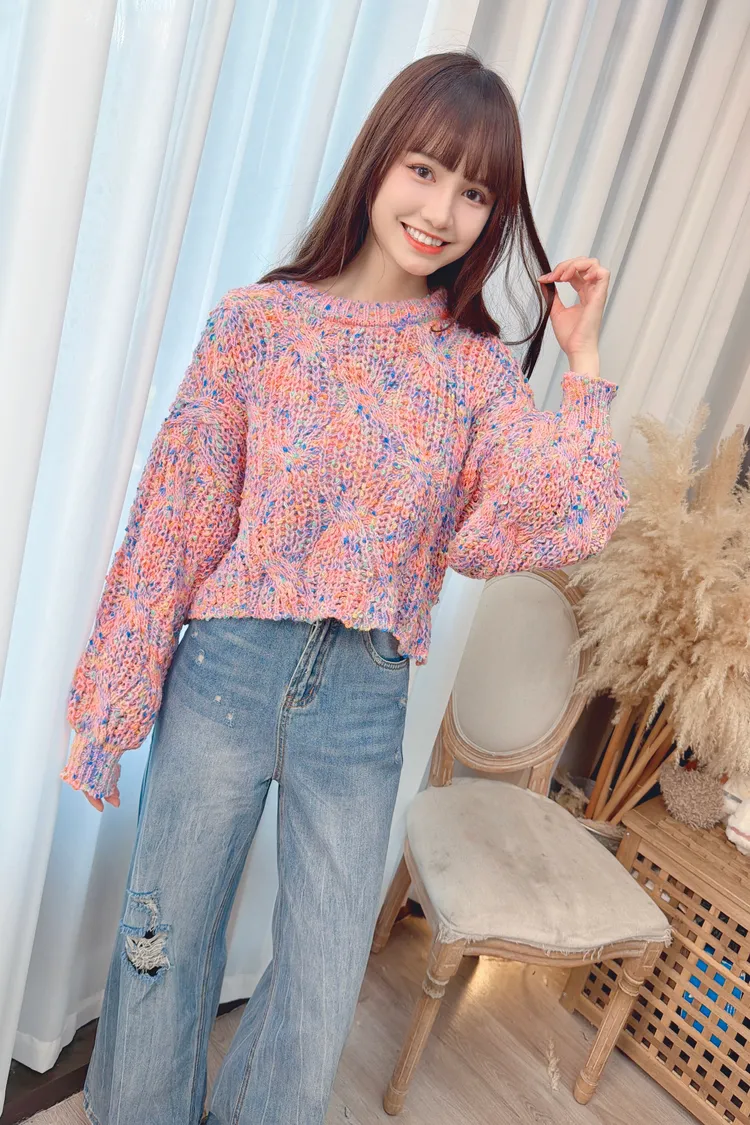 彩色線條感針織上衣/2色