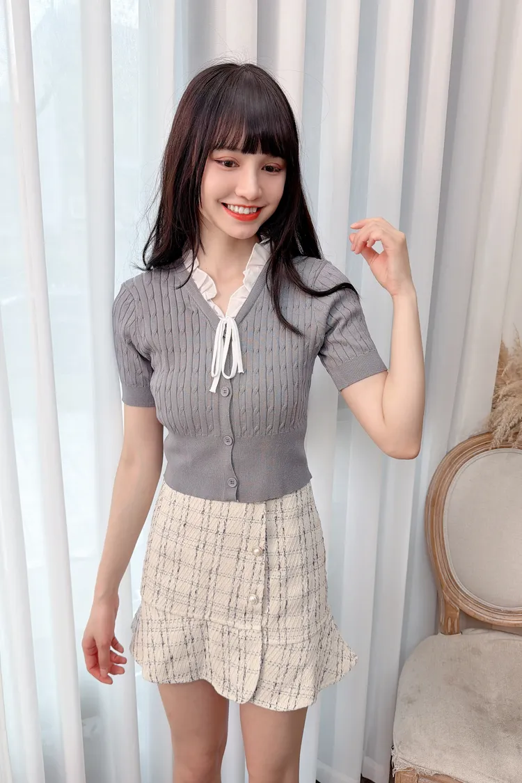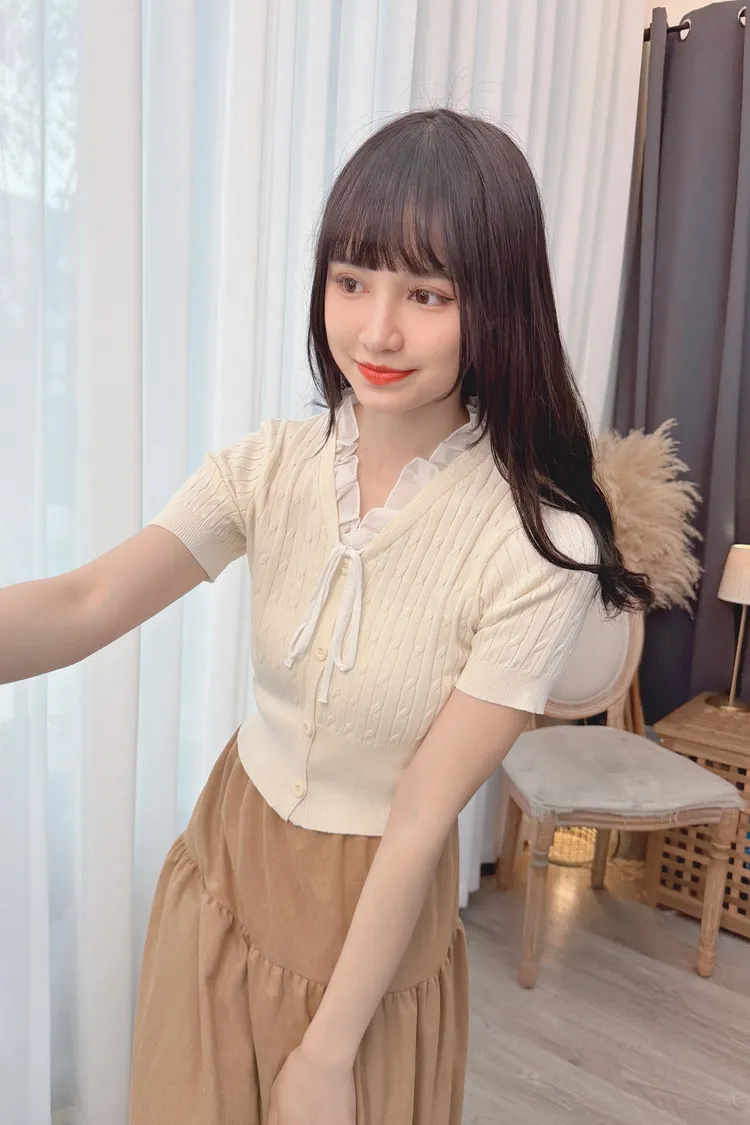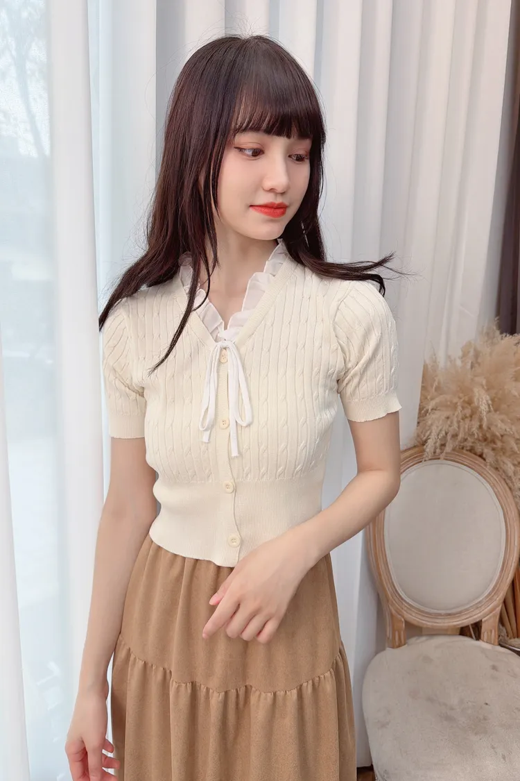 荷葉滾邊編織紋上衣/2色