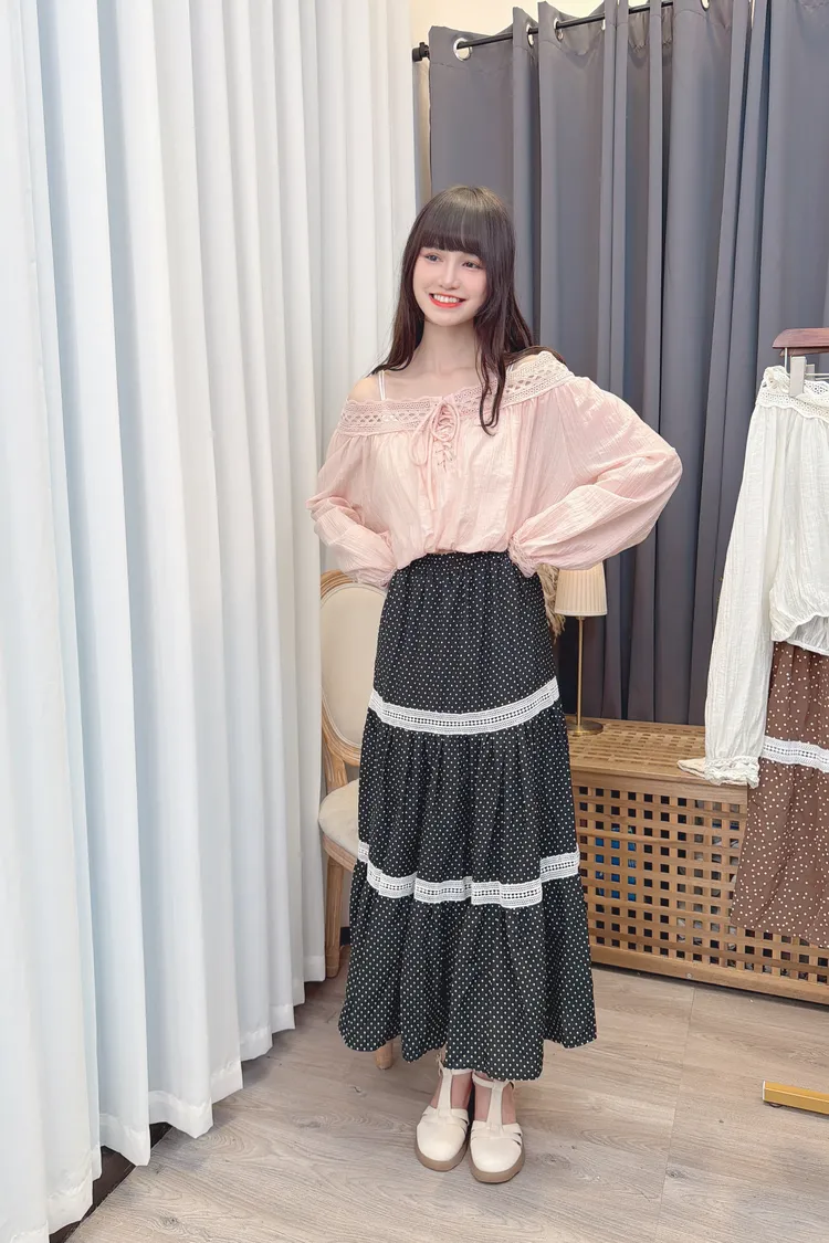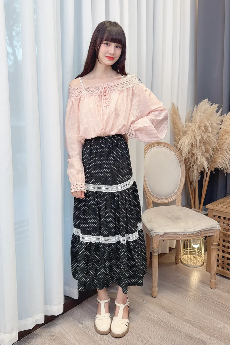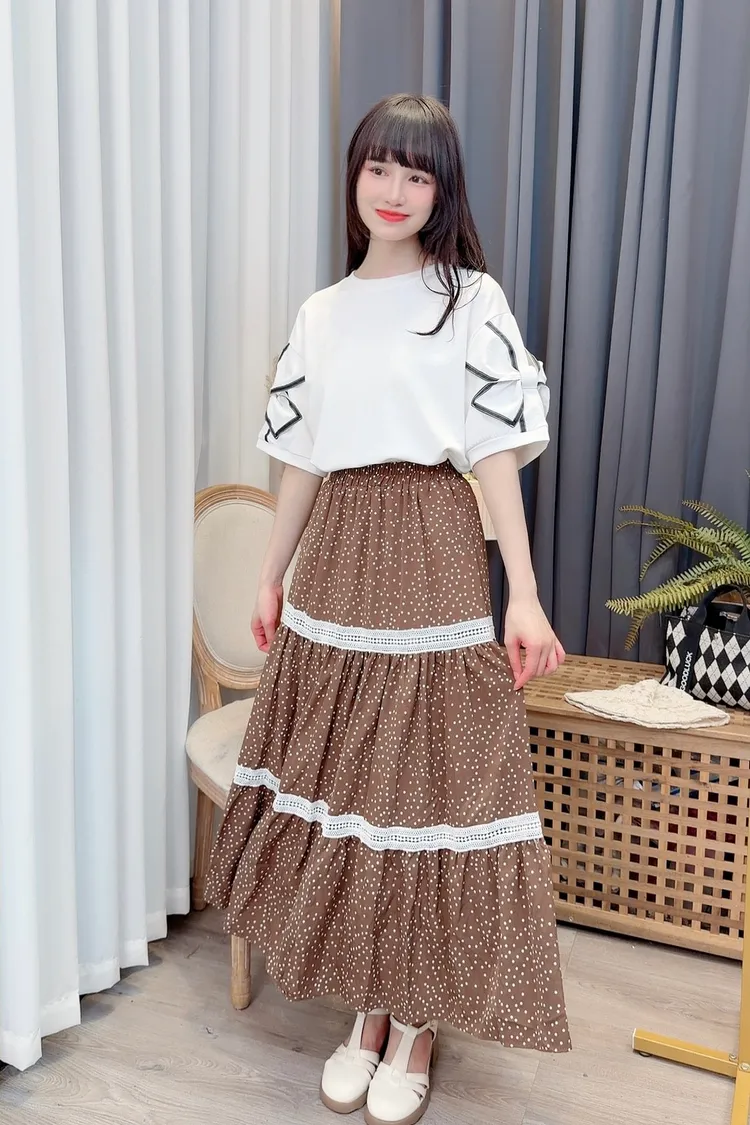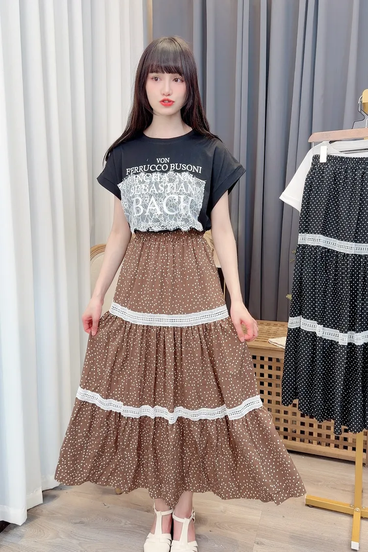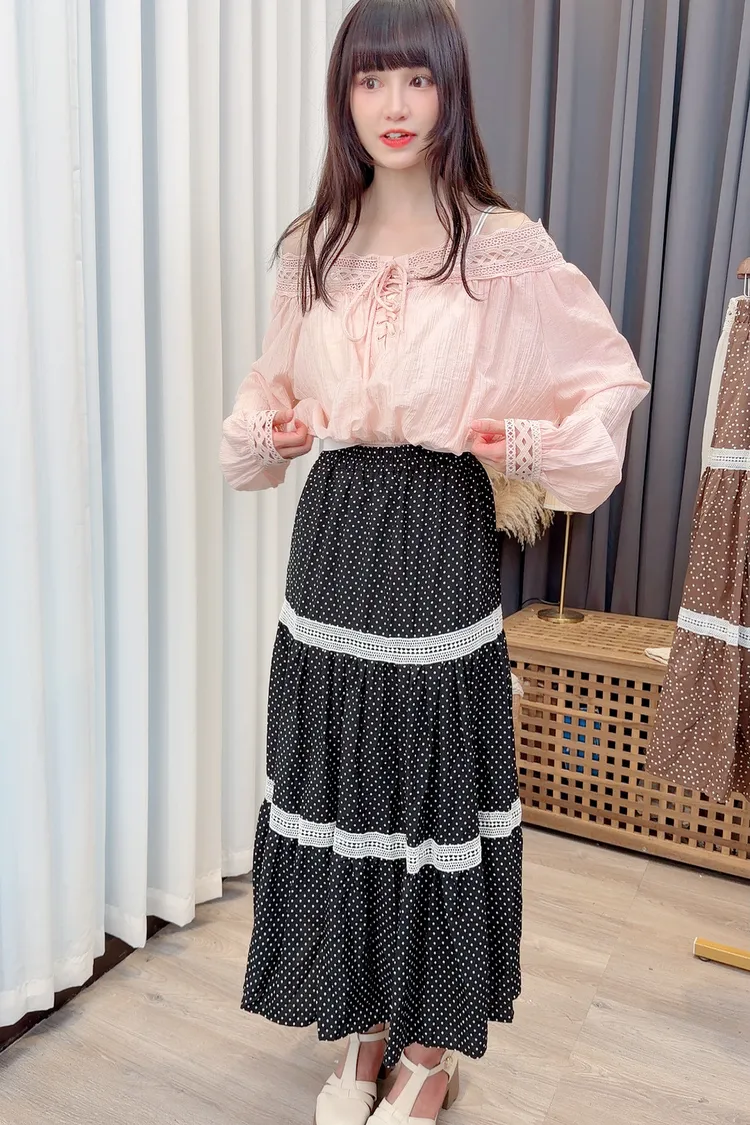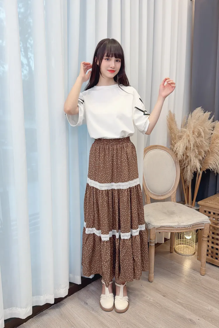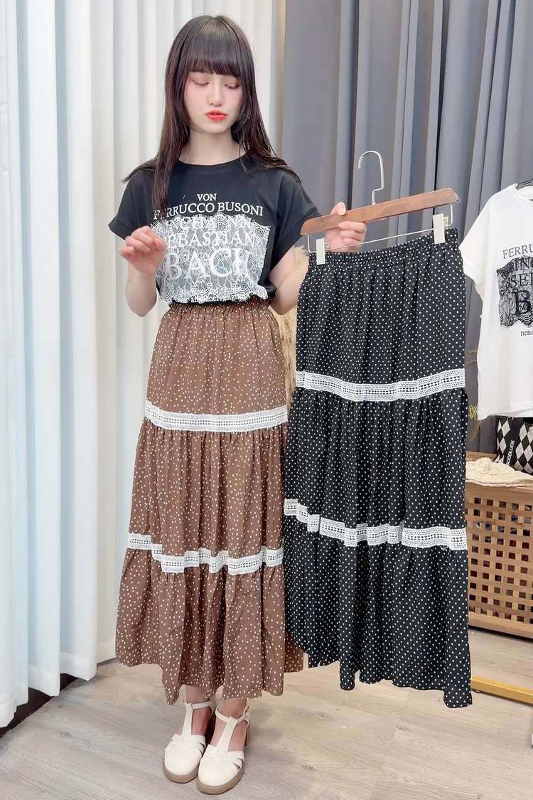點點滾蕾絲咖色長裙/2色