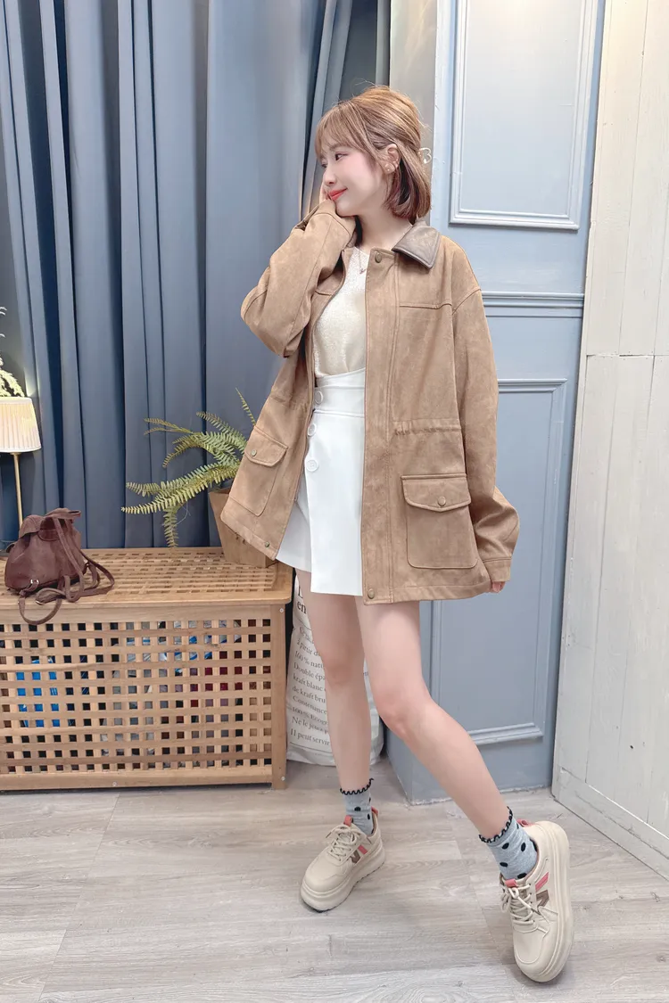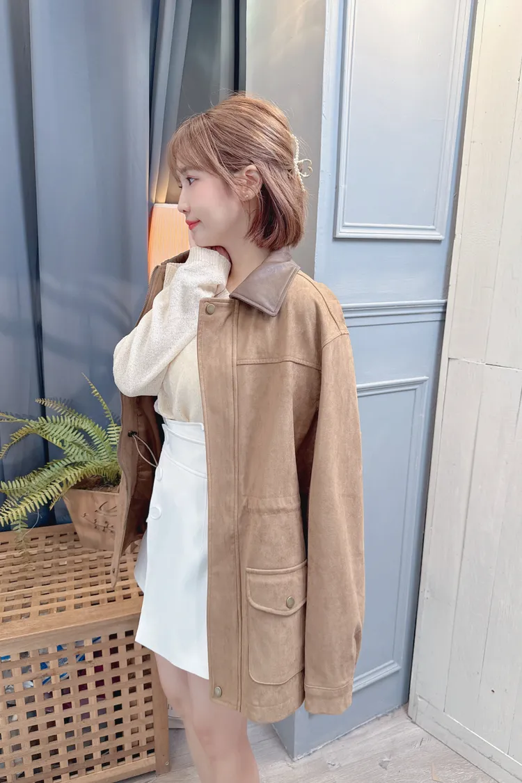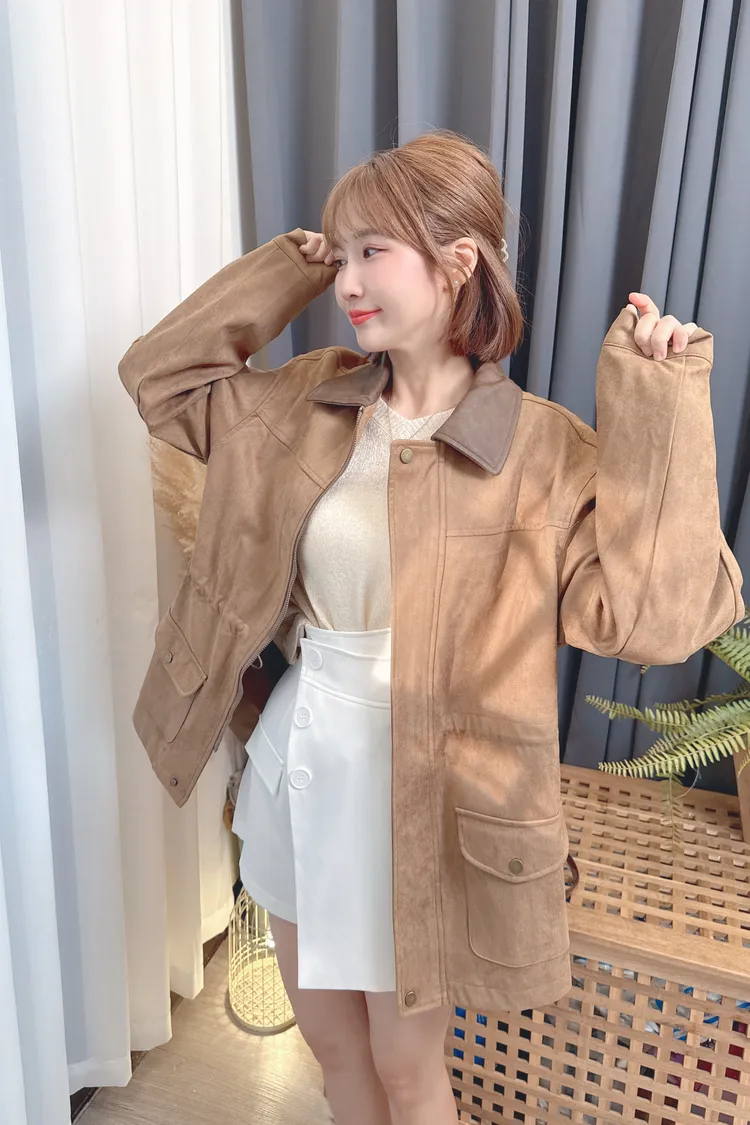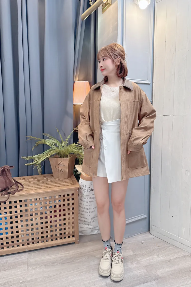 麂皮可縮腰長版外套/1色