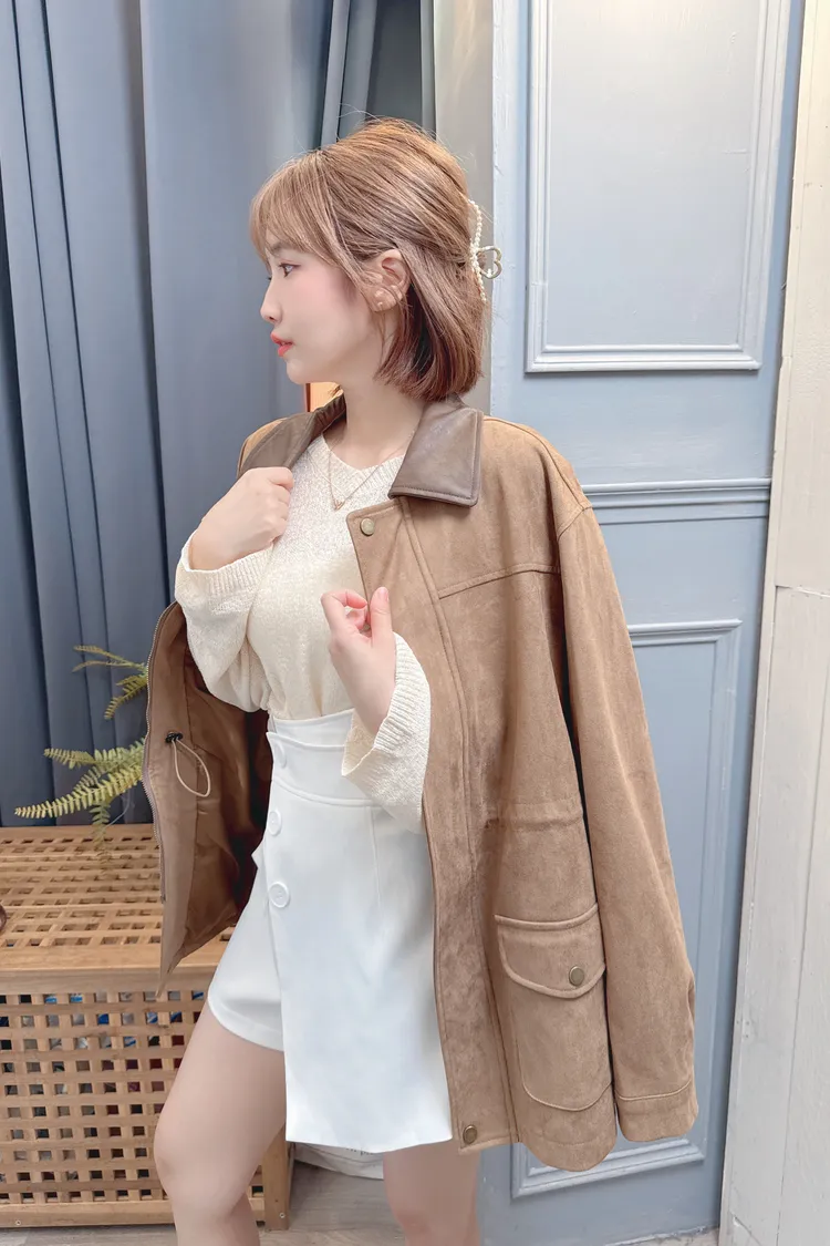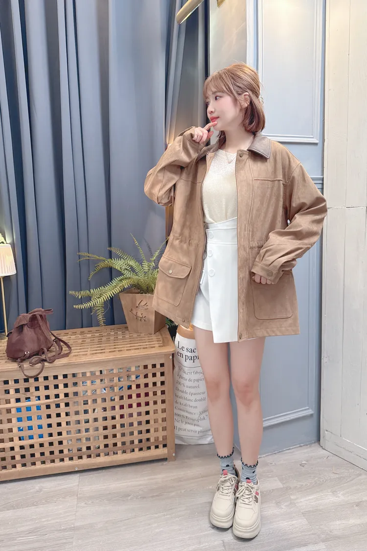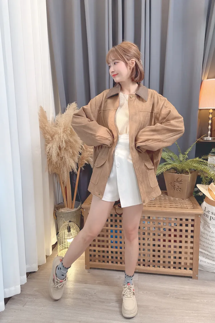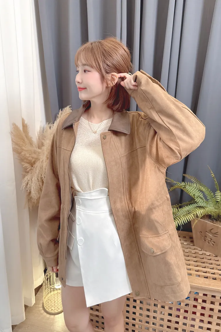麂皮可縮腰長版外套/1色