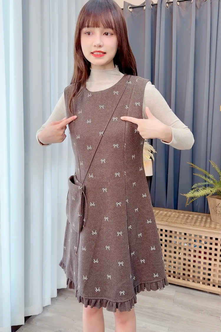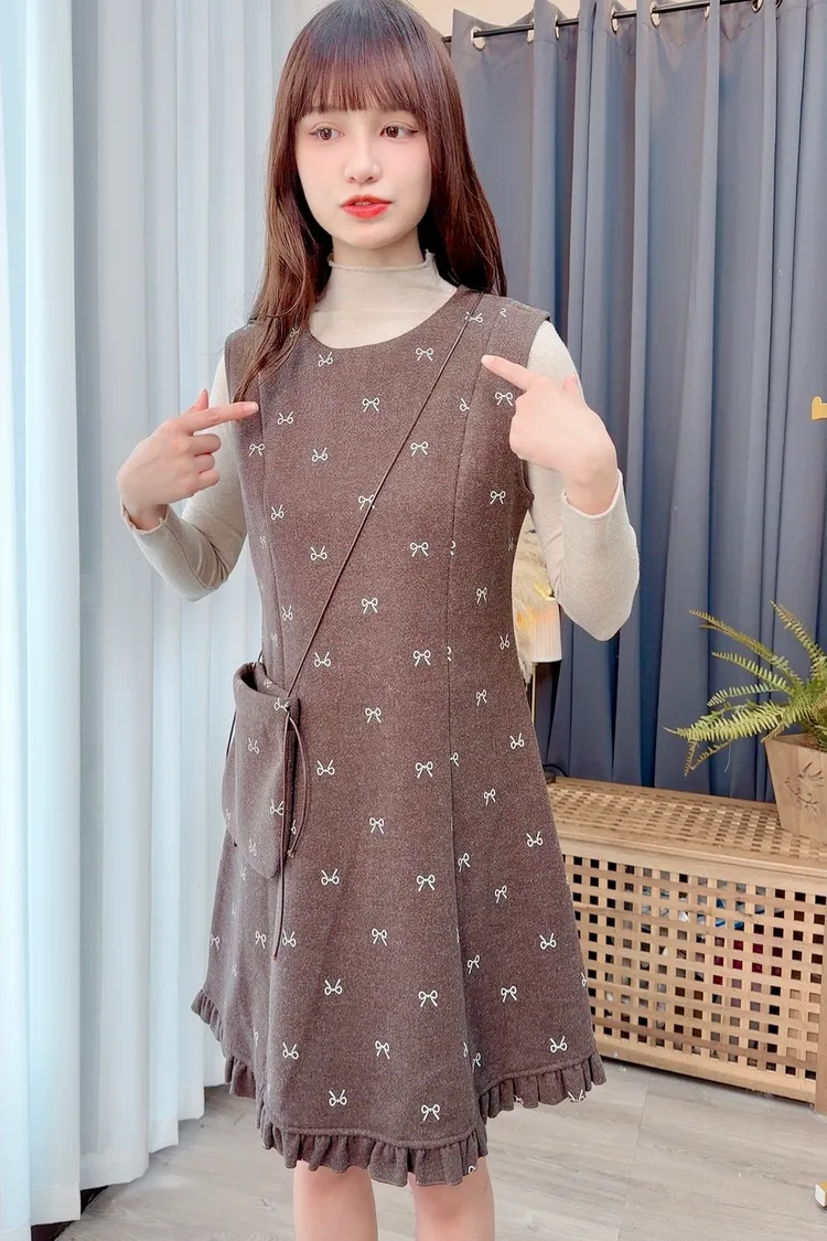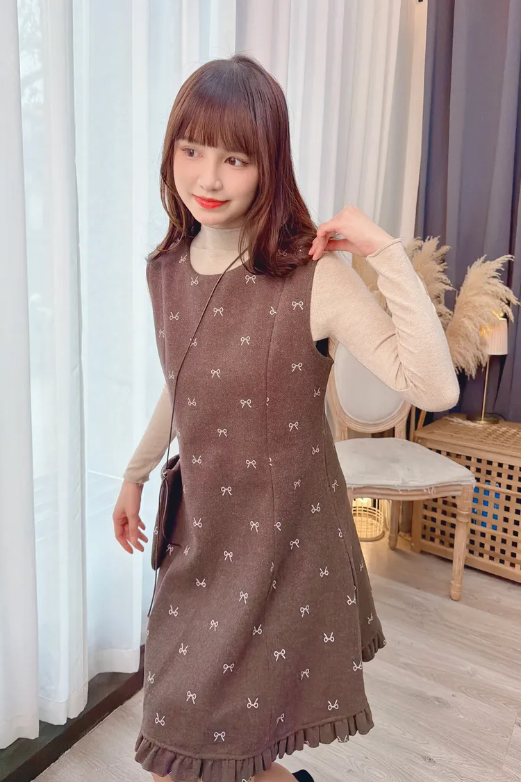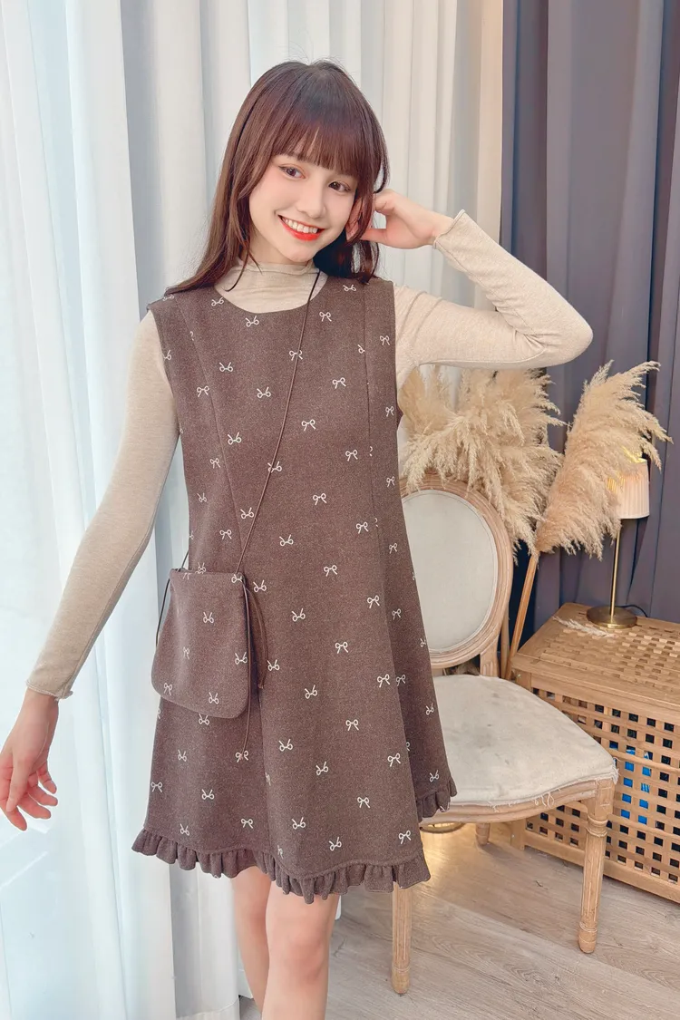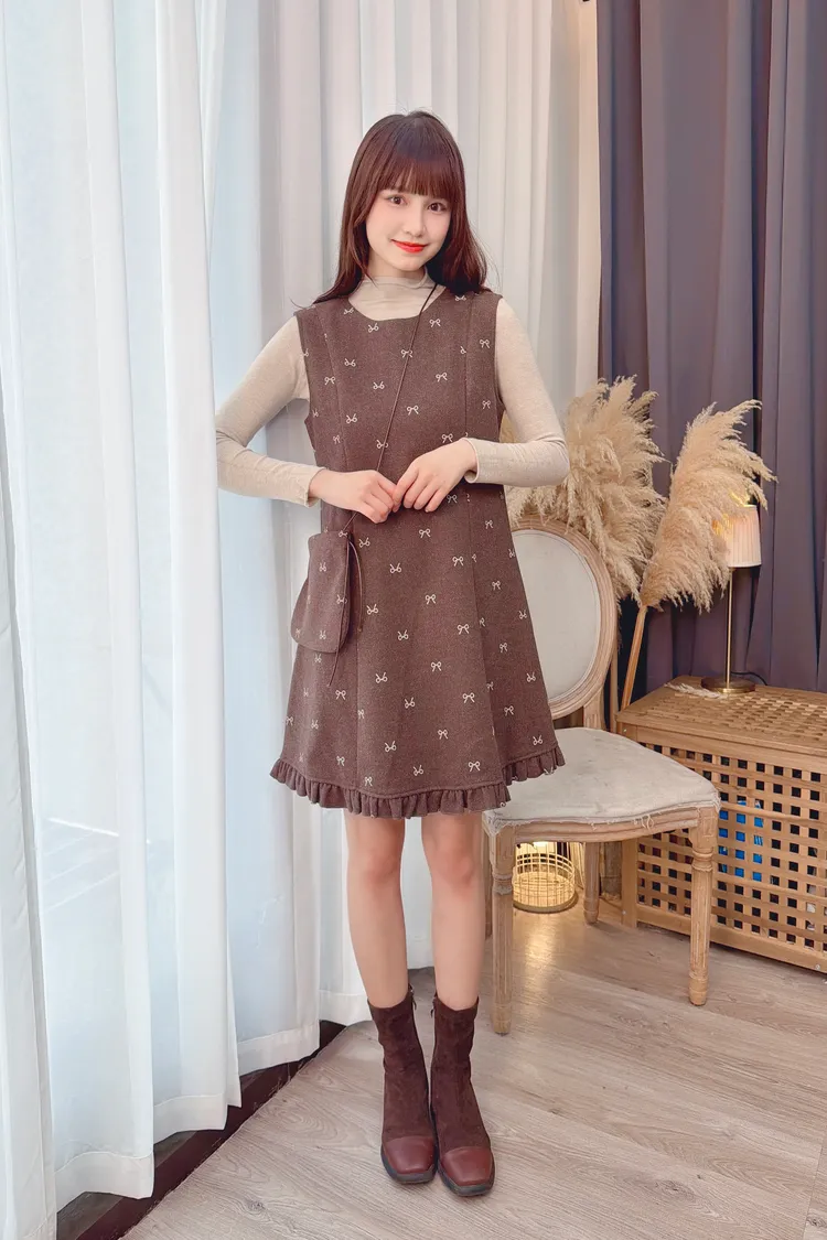 蝴蝶結圖案套裝洋裝組/1色