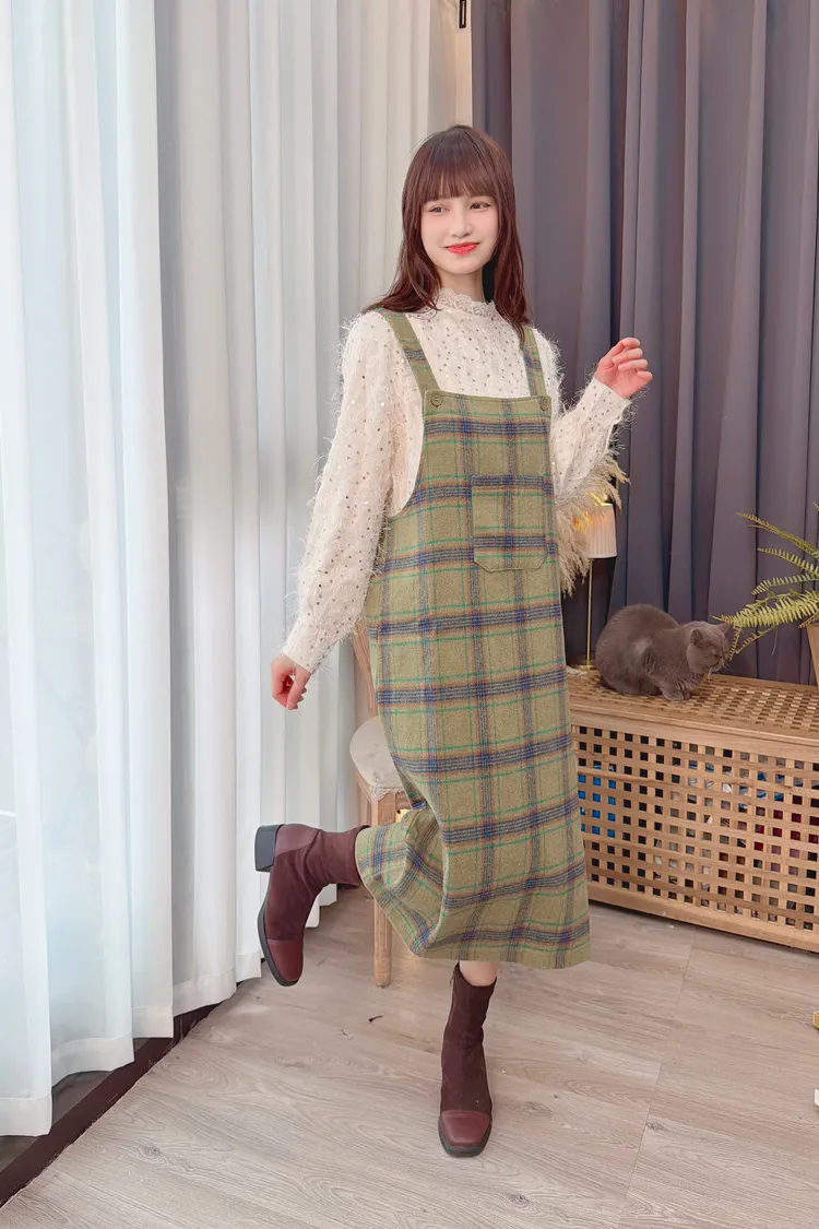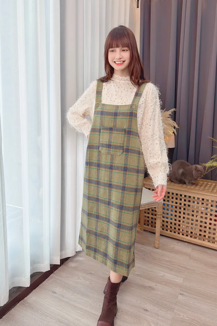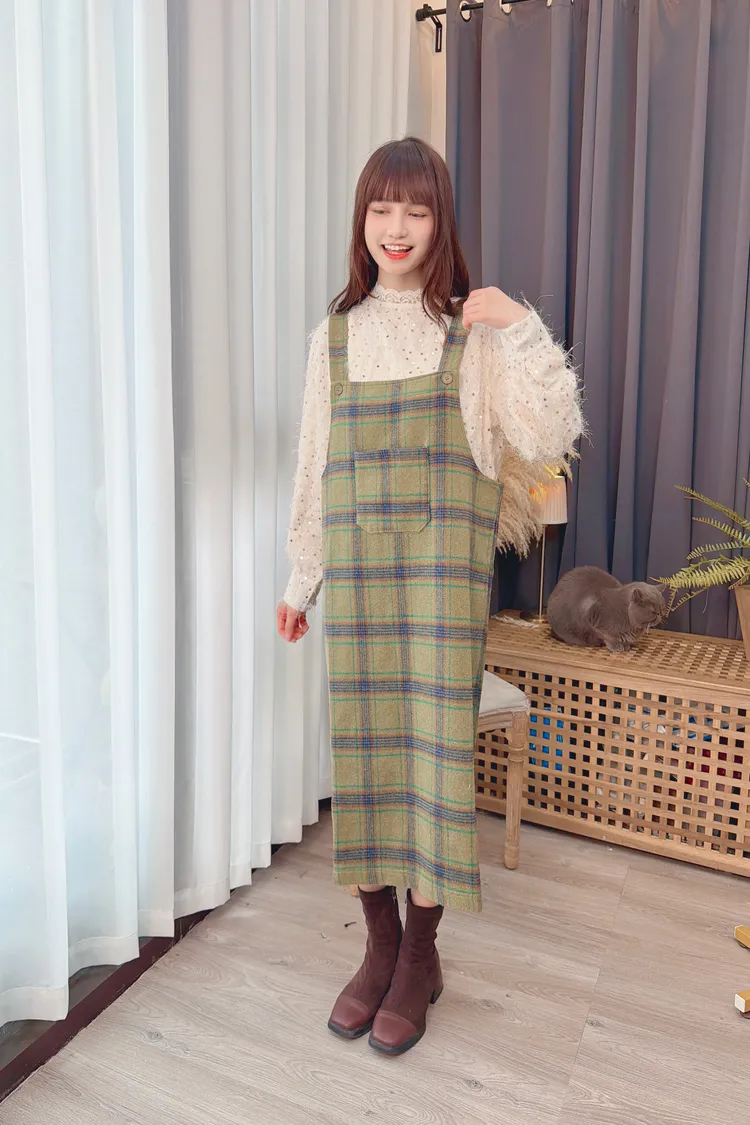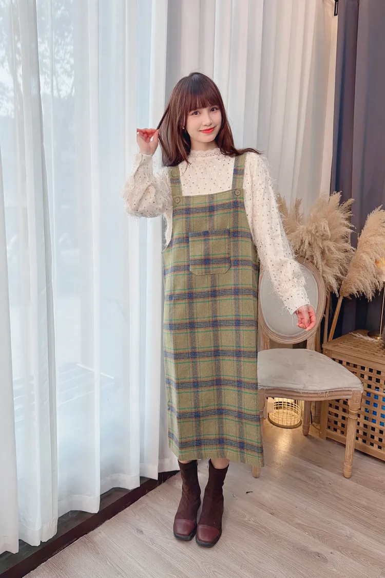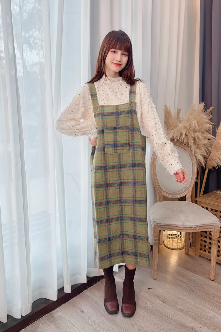 可愛綠格紋洋裝/1色