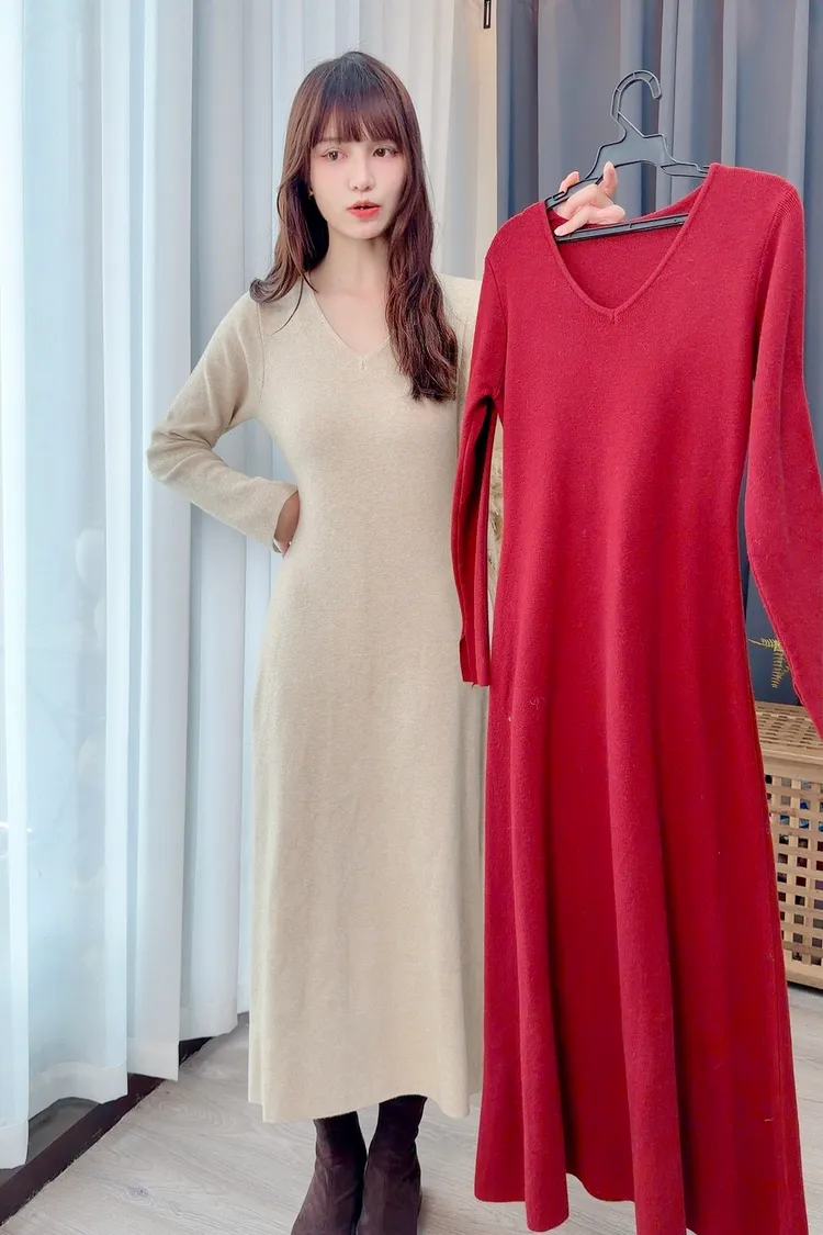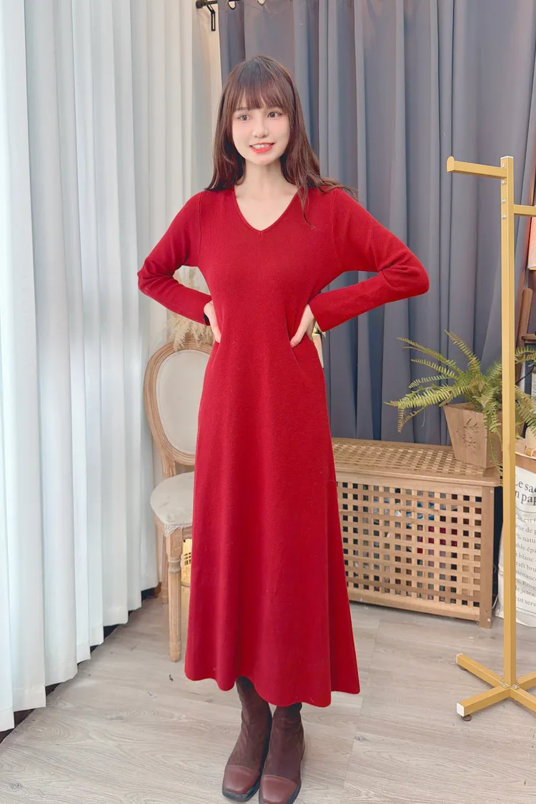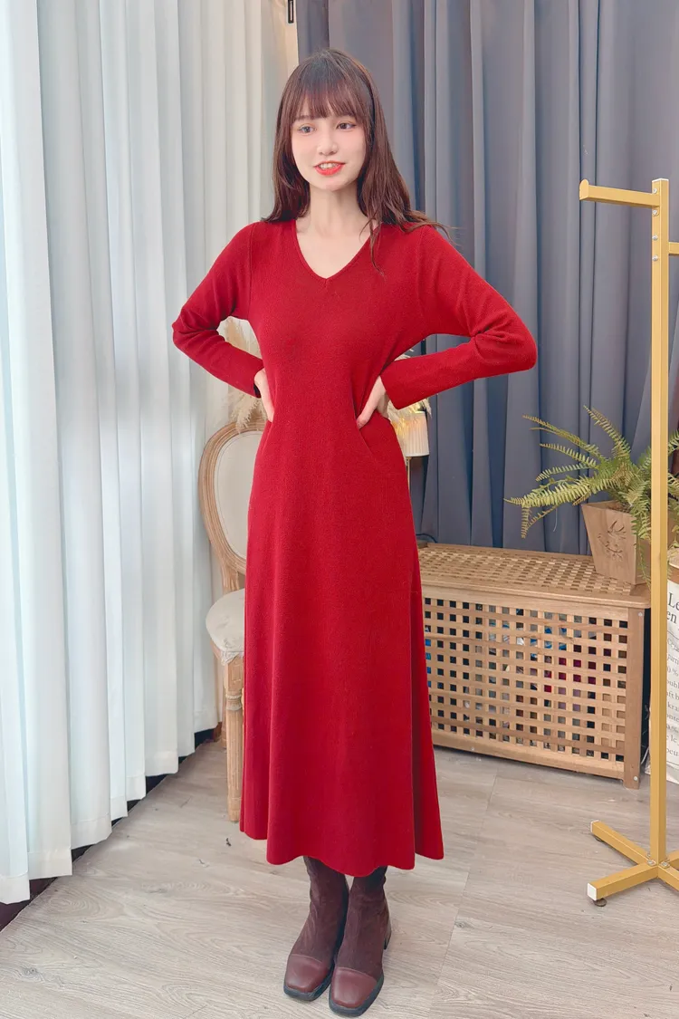 V領針織長洋/2色