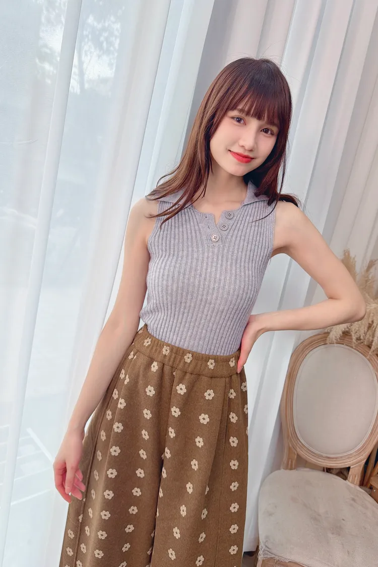 有領開釦針織套裝組/1色