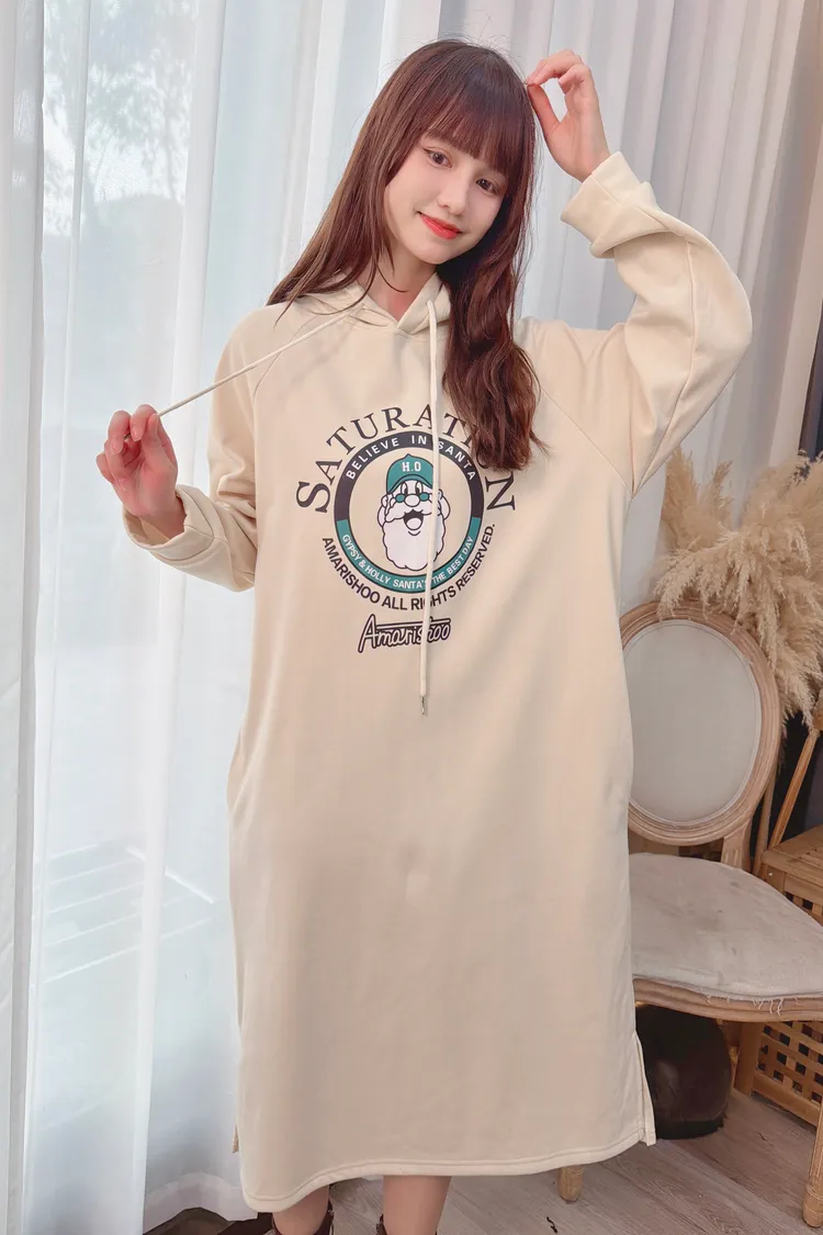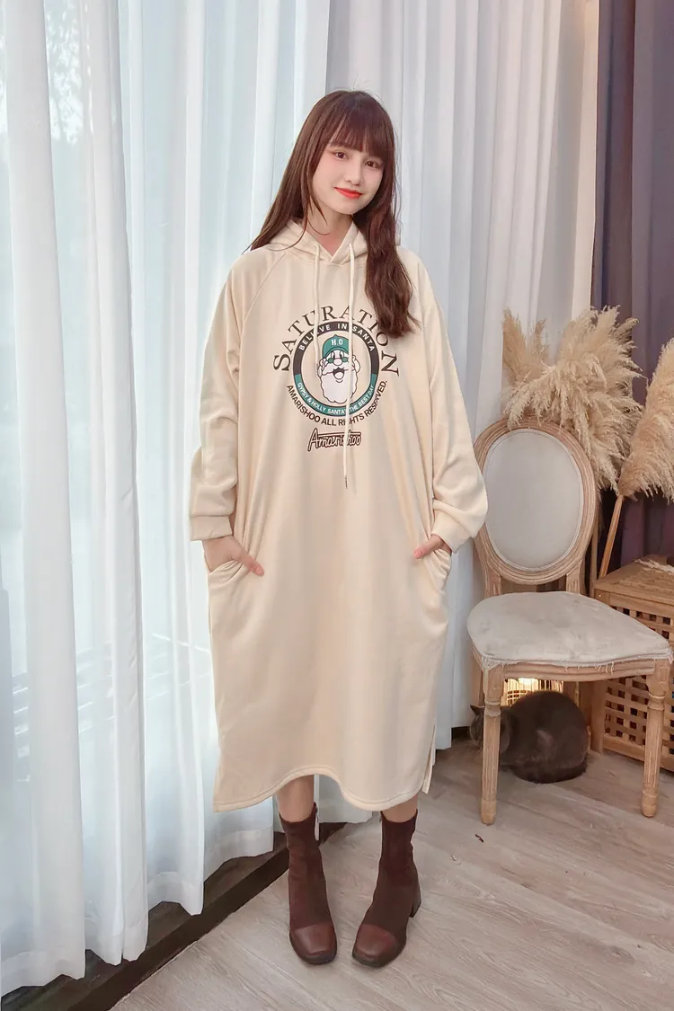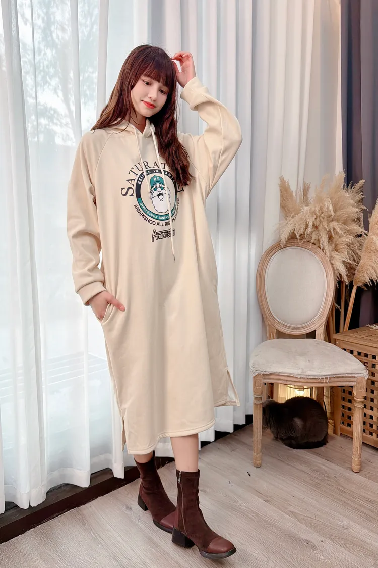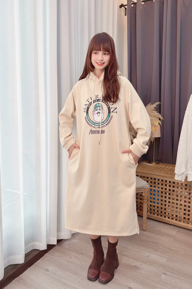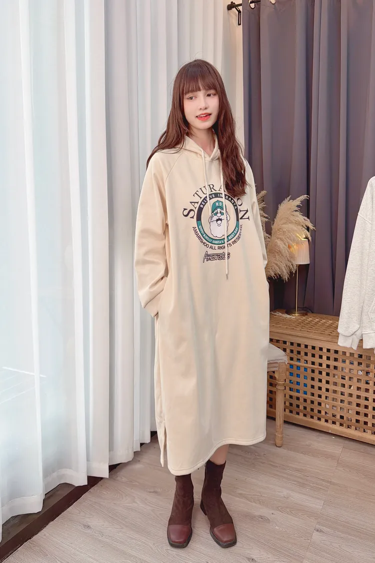 圖騰連帽口袋長洋/1色