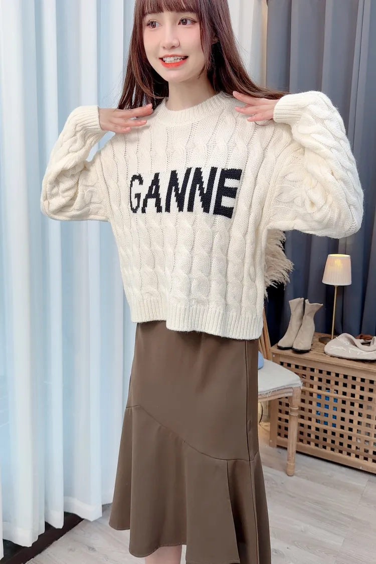 麻花紋字母針織上衣/1色