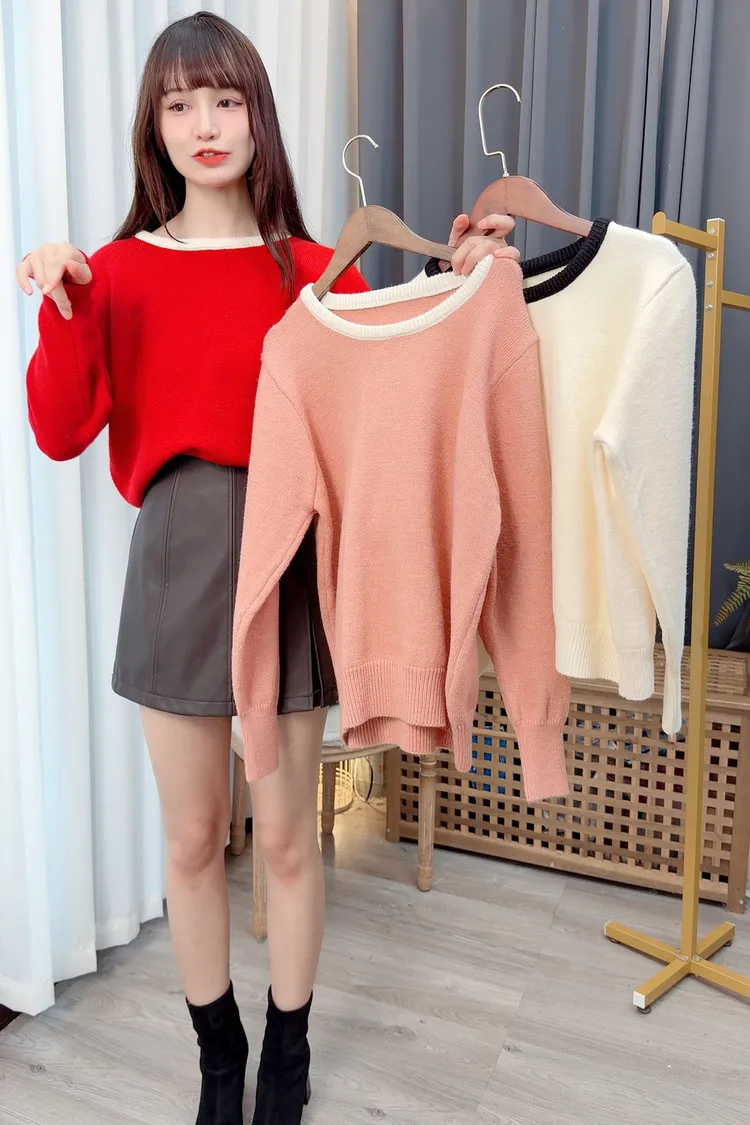 領滾邊針織上衣/3色