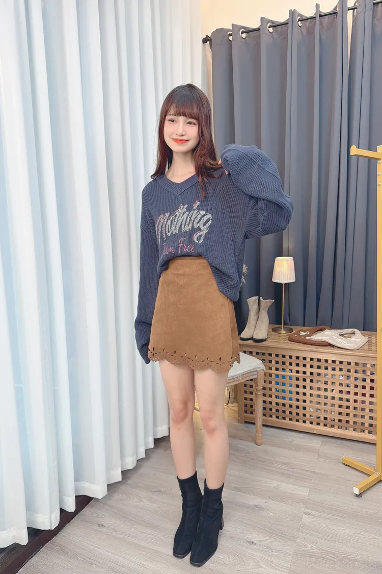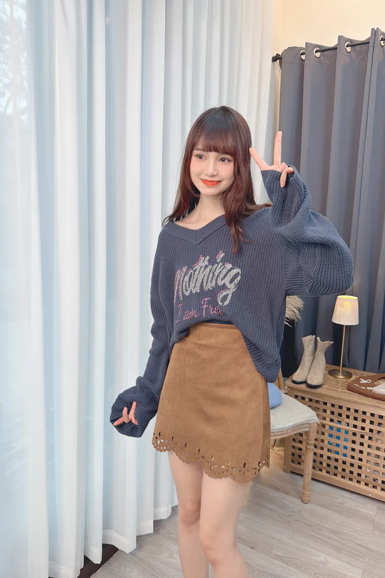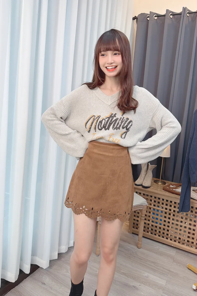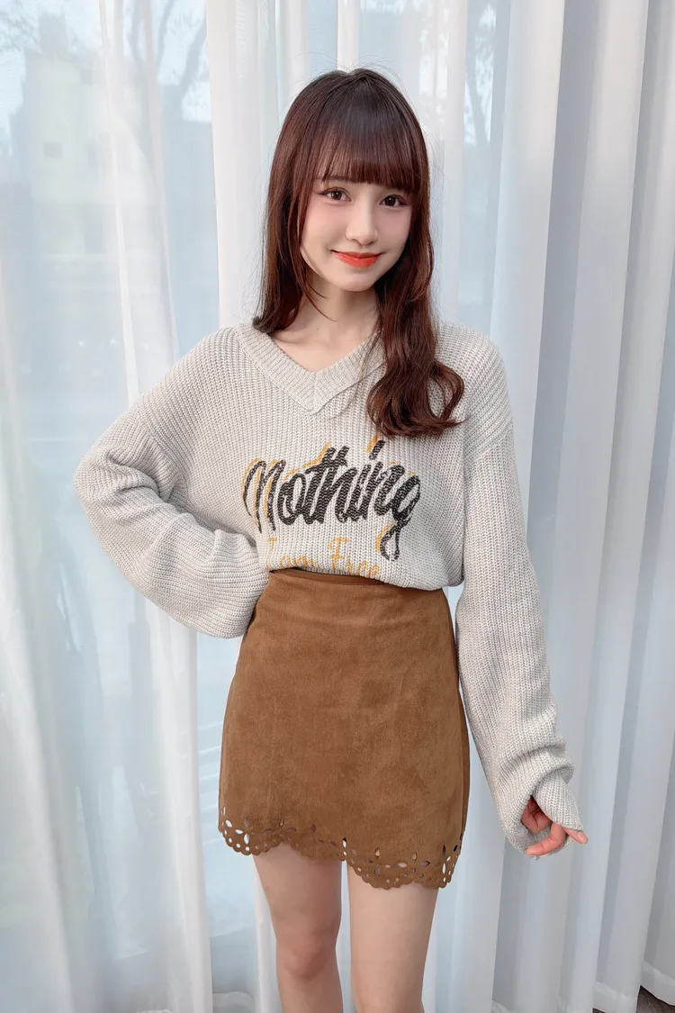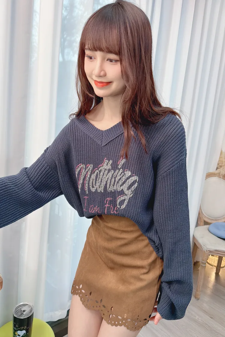V領字母圖案針織上衣/2色