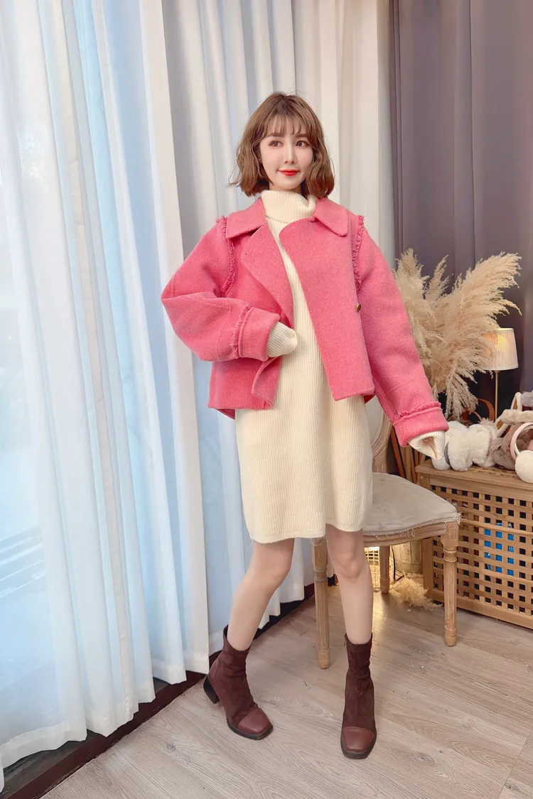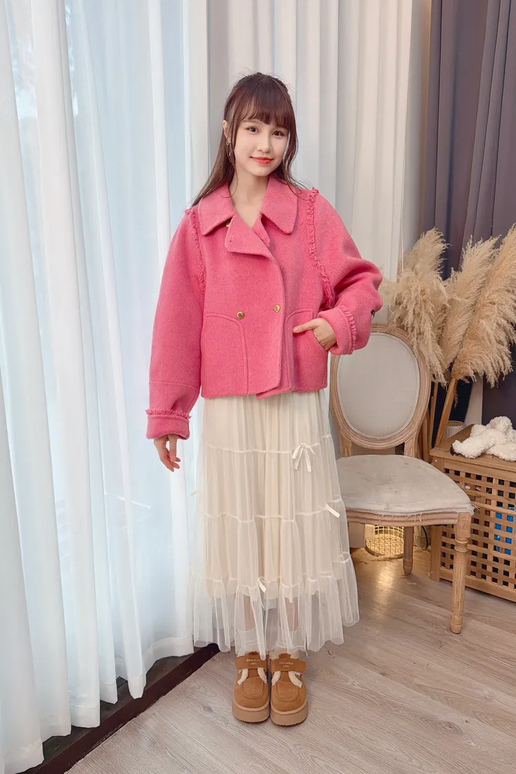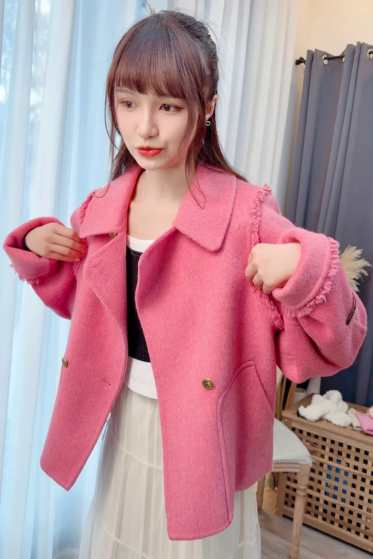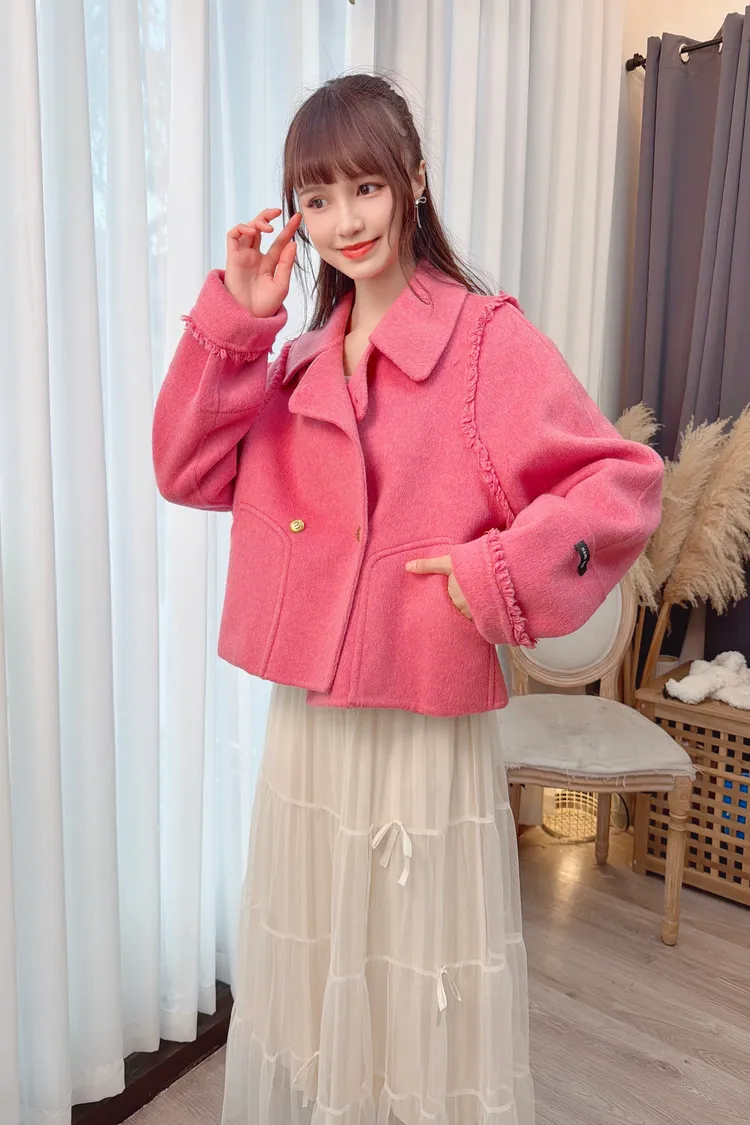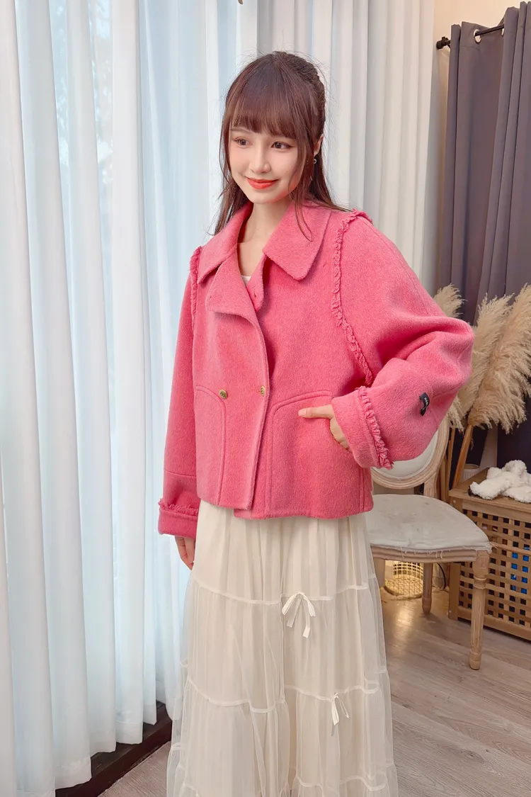 毛邊羊毛短大衣/2色