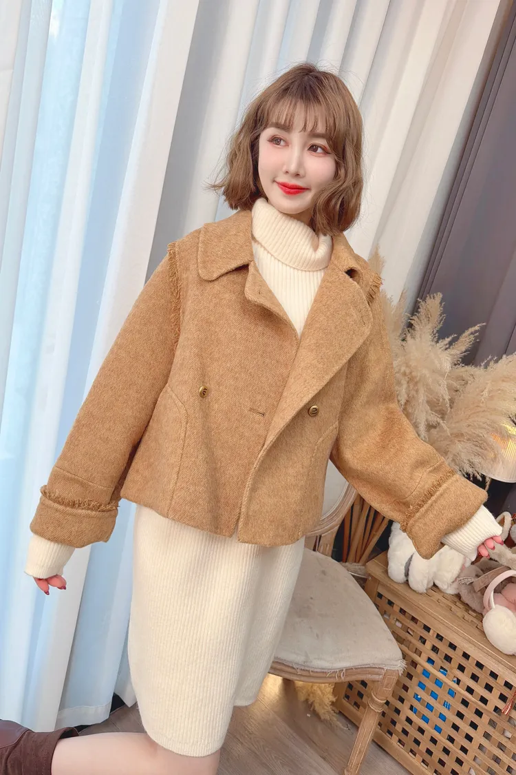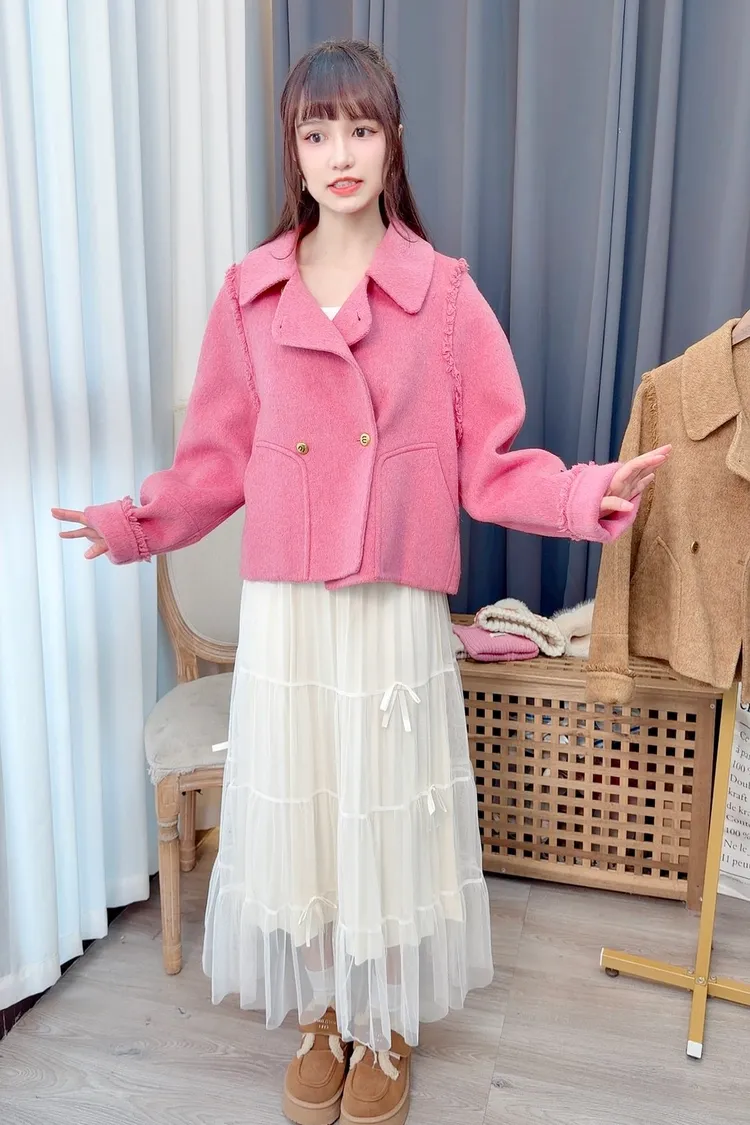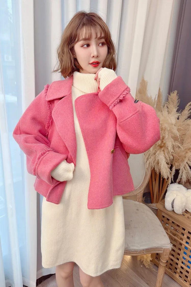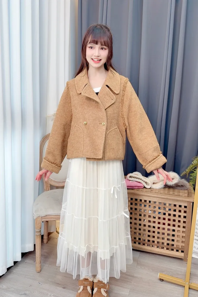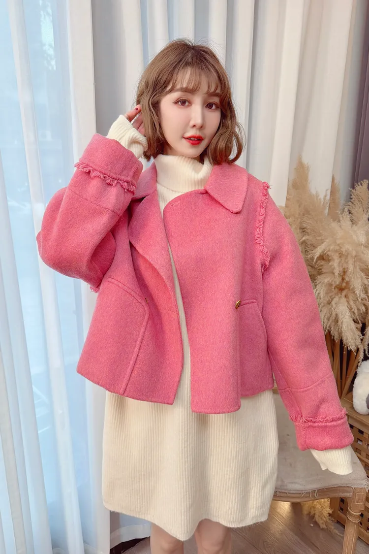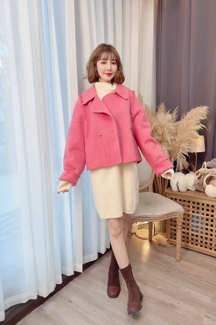 毛邊羊毛短大衣/2色
