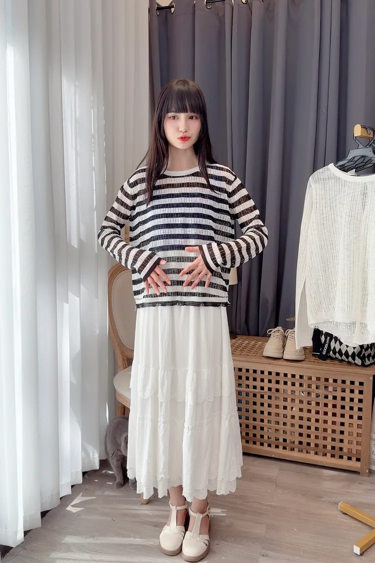 背釦造型薄針織上衣/2色