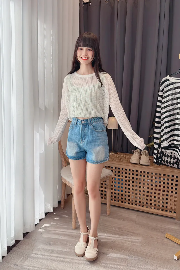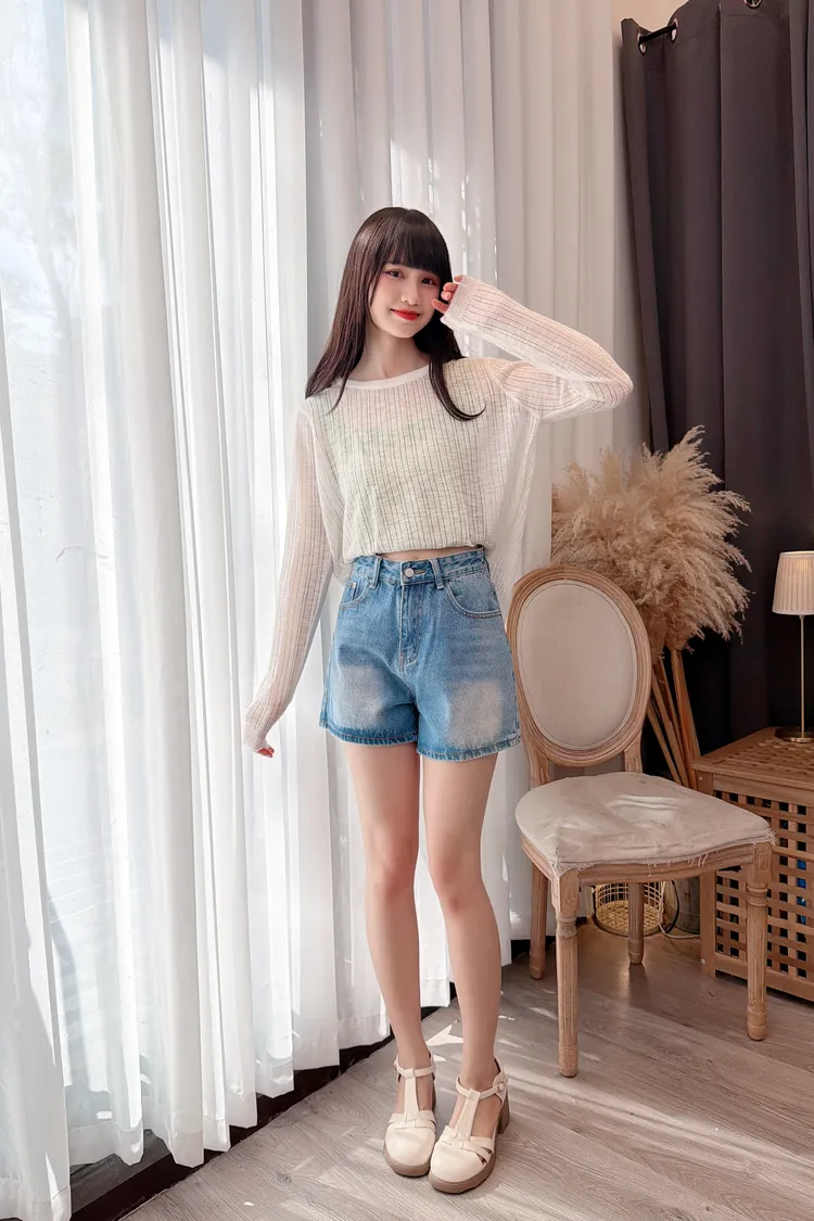 口袋蝴蝶結牛仔短褲/1色