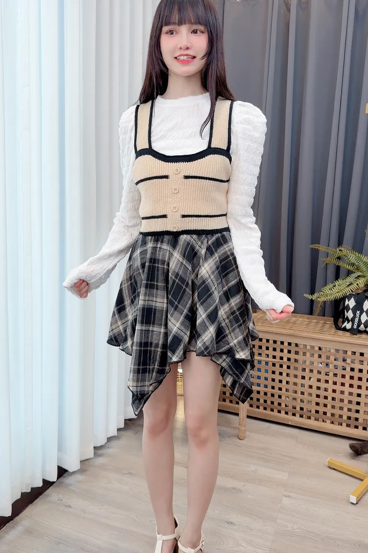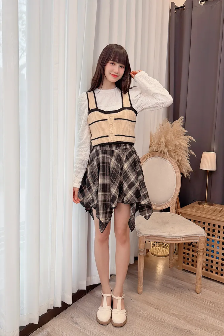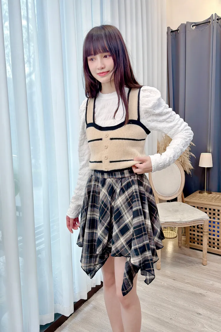 不規則格紋短裙/1色