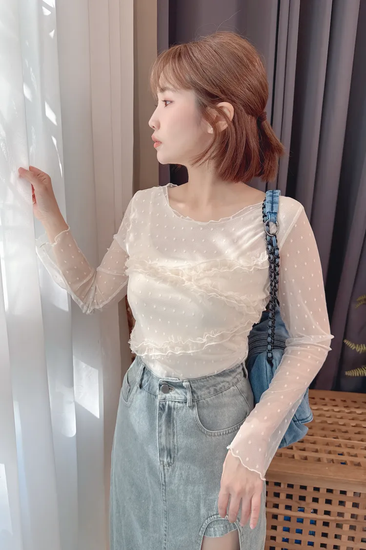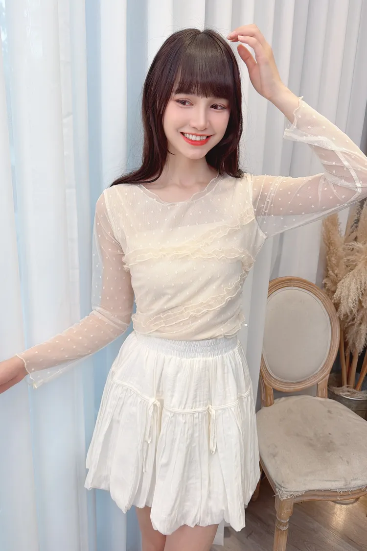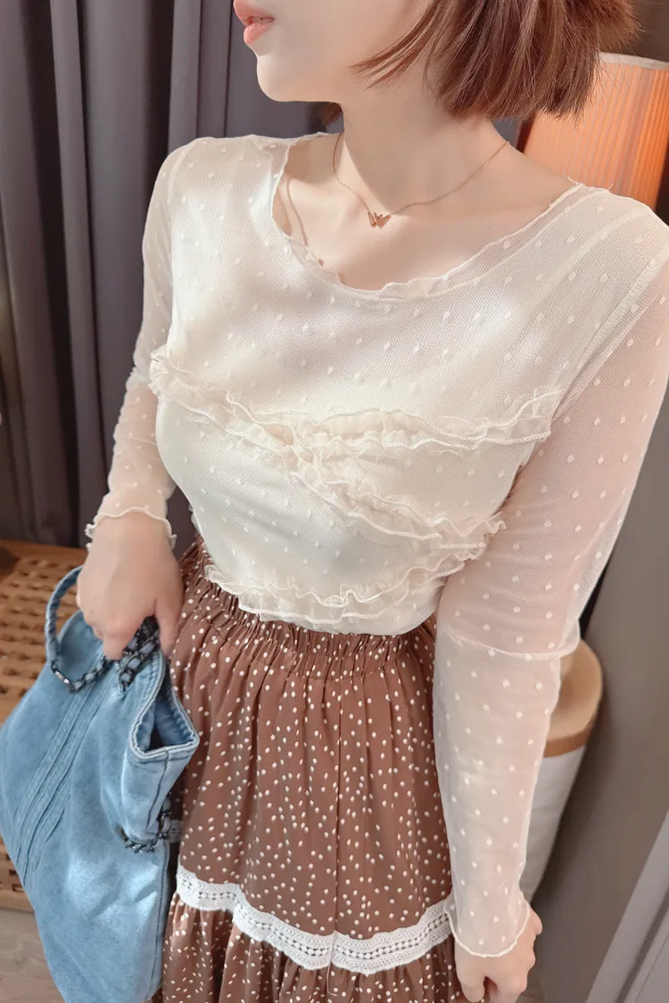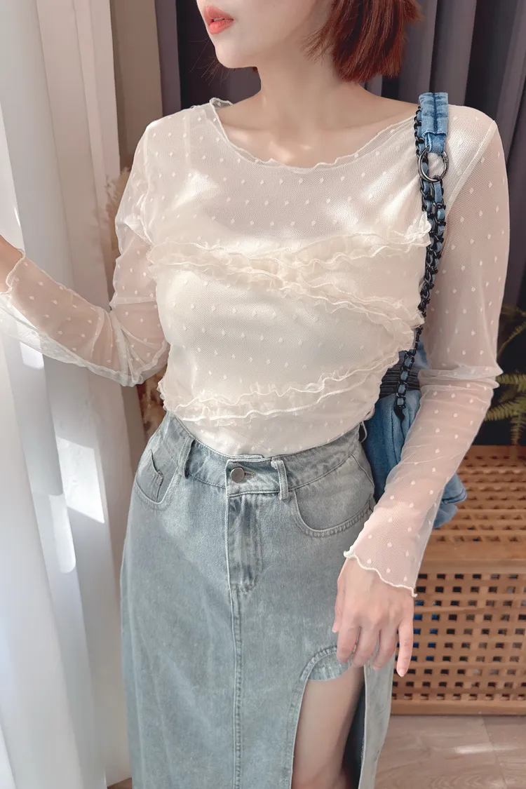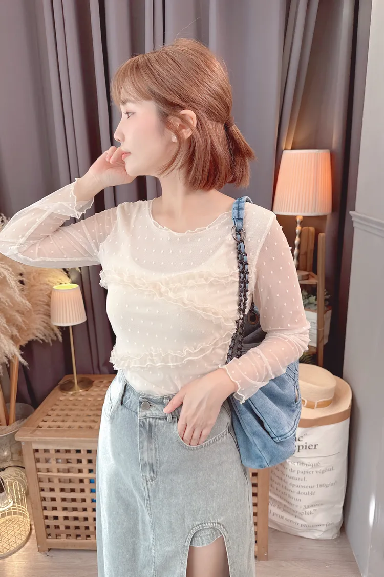點點紗荷葉拼接上衣/2色
