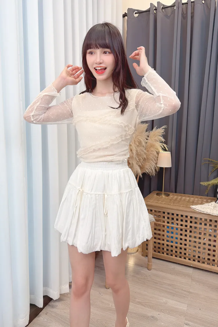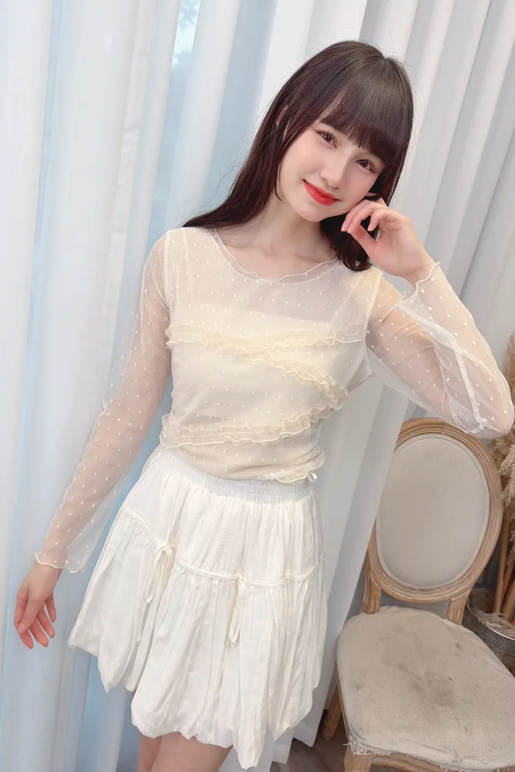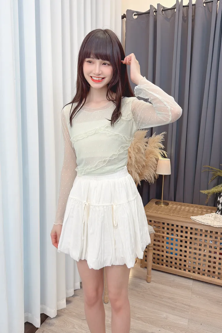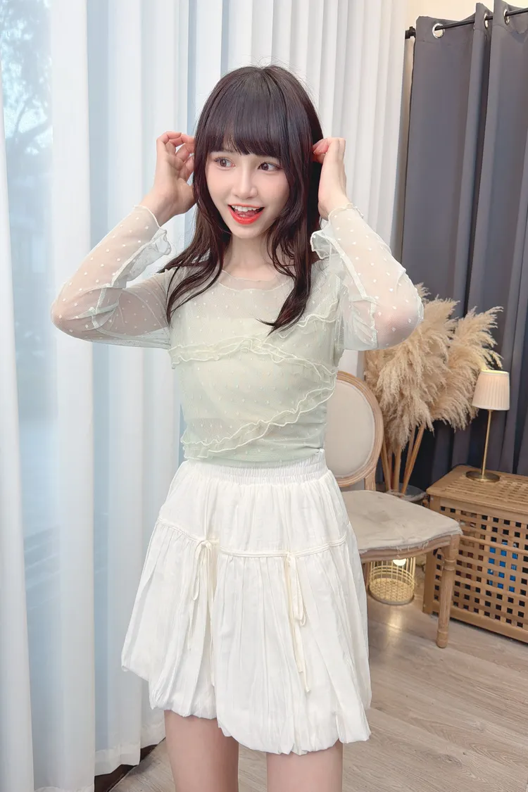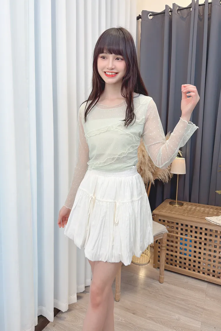 點點紗荷葉拼接上衣/2色