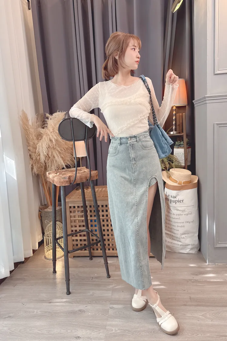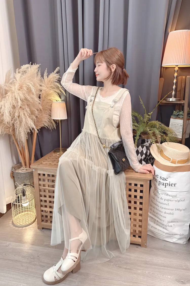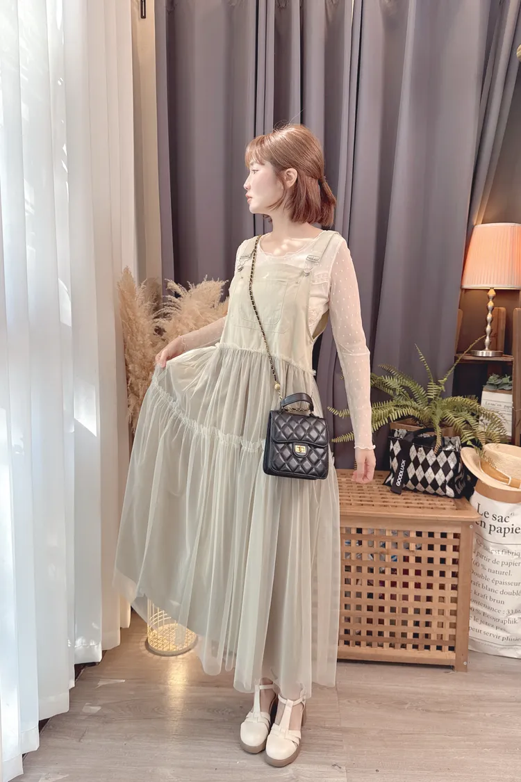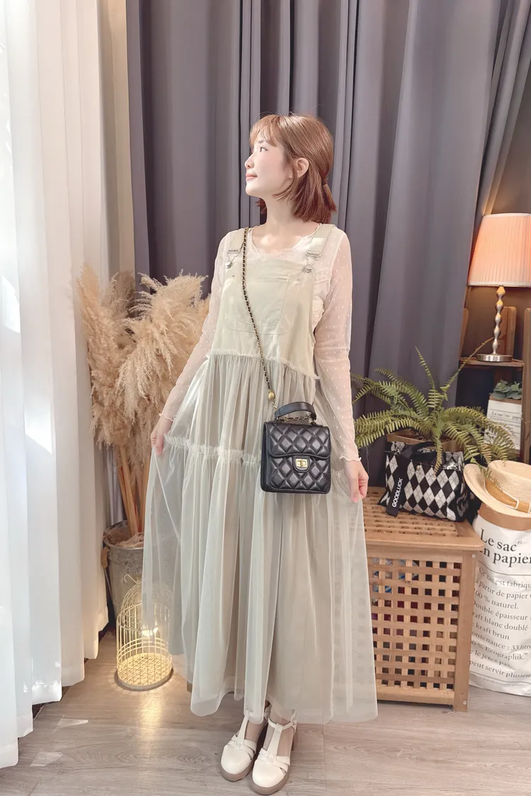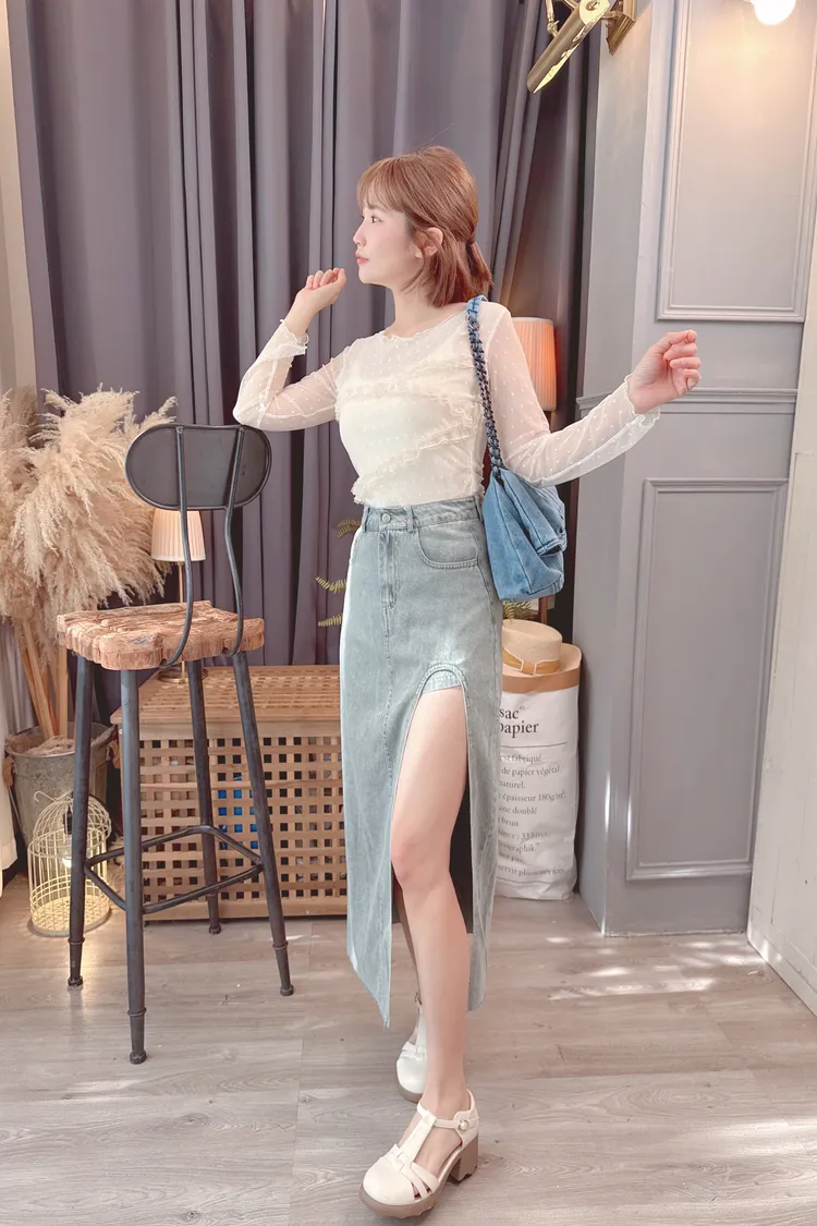 點點紗荷葉拼接上衣/2色