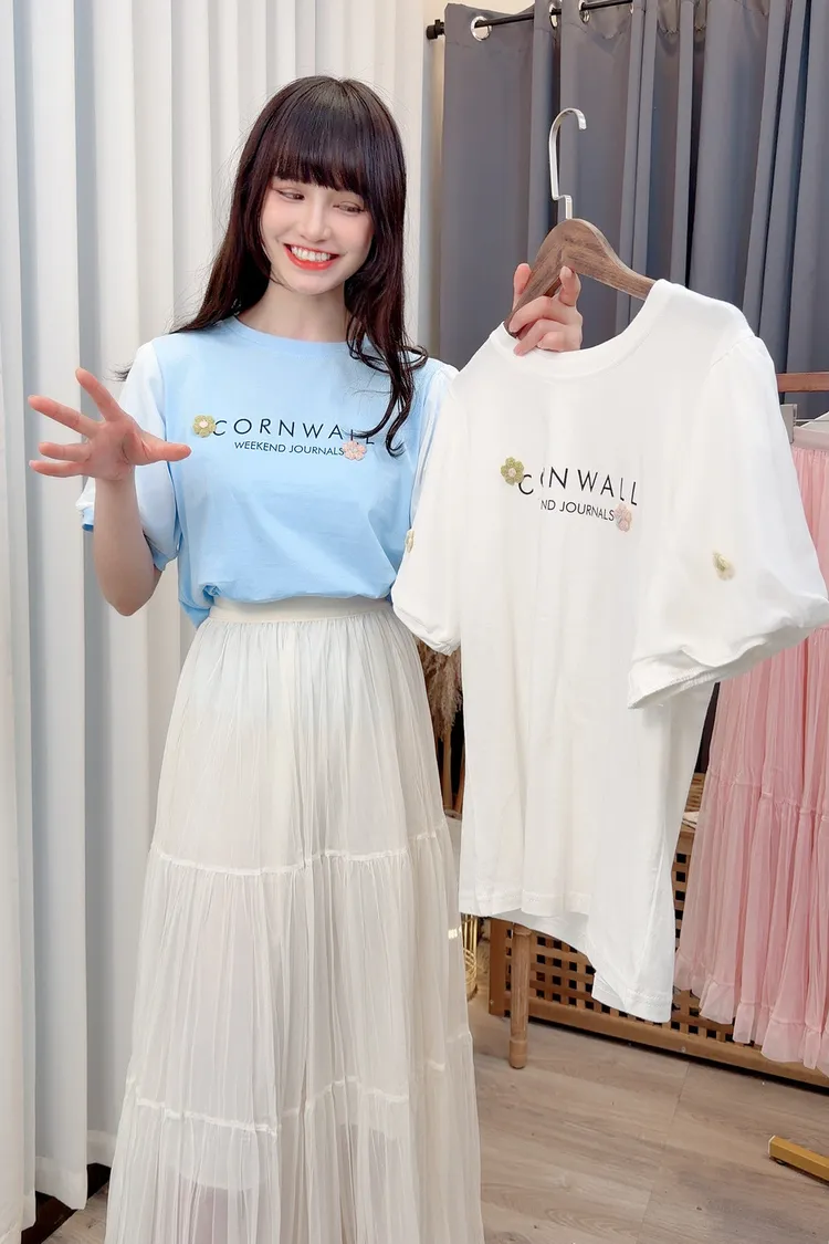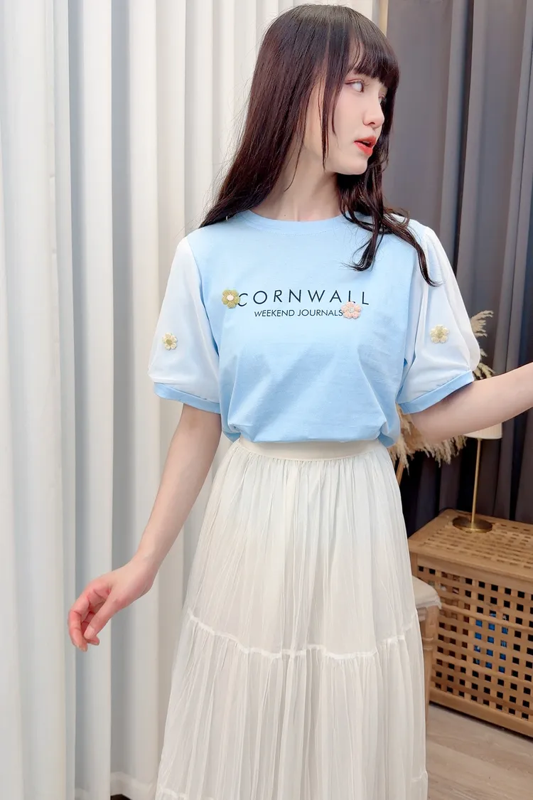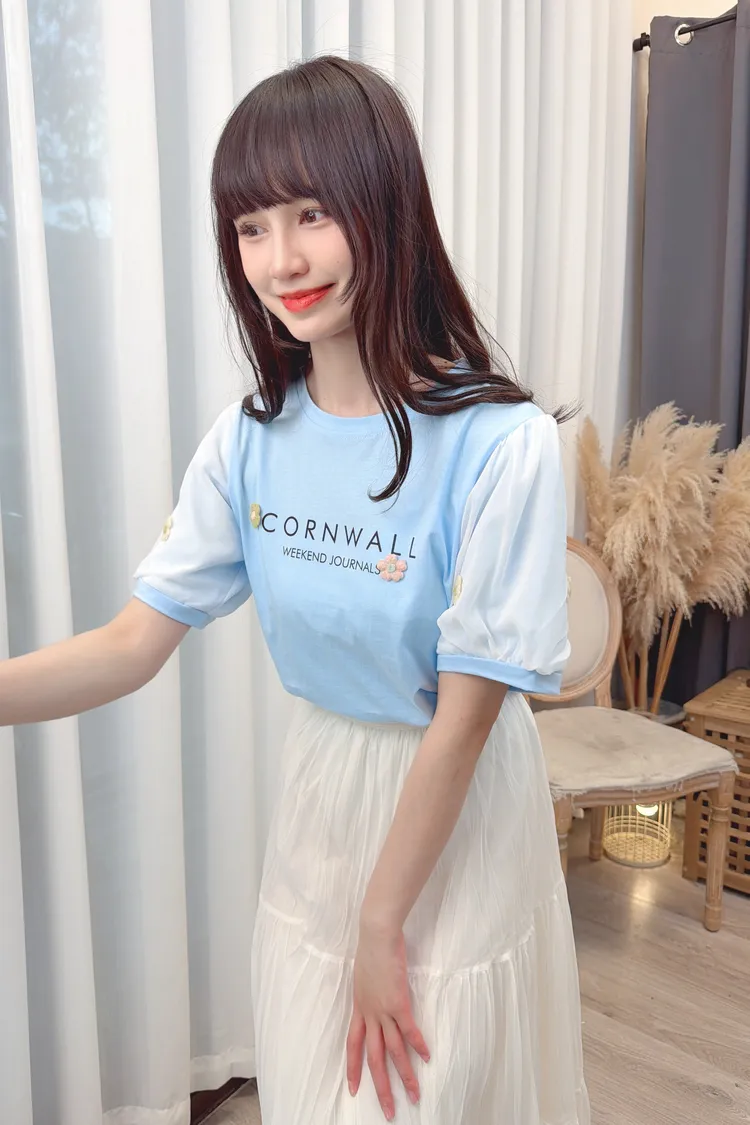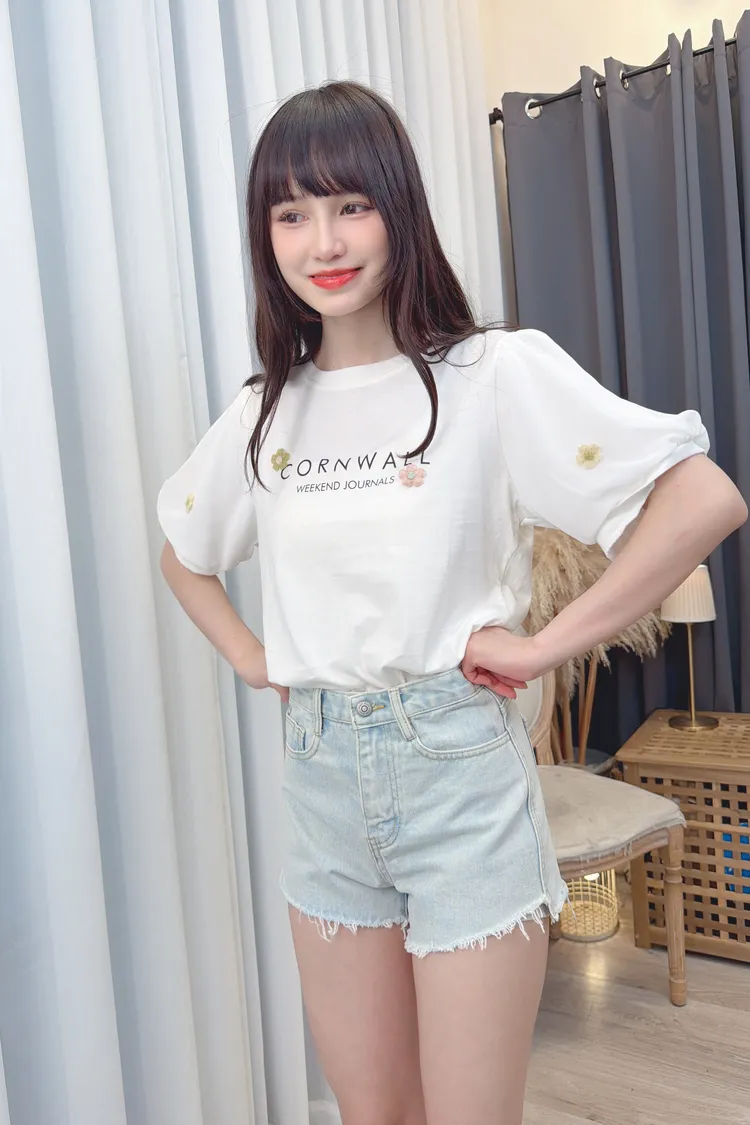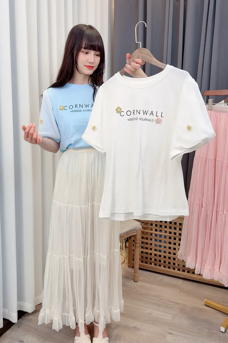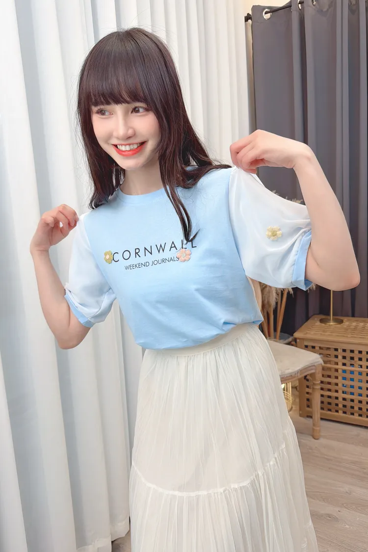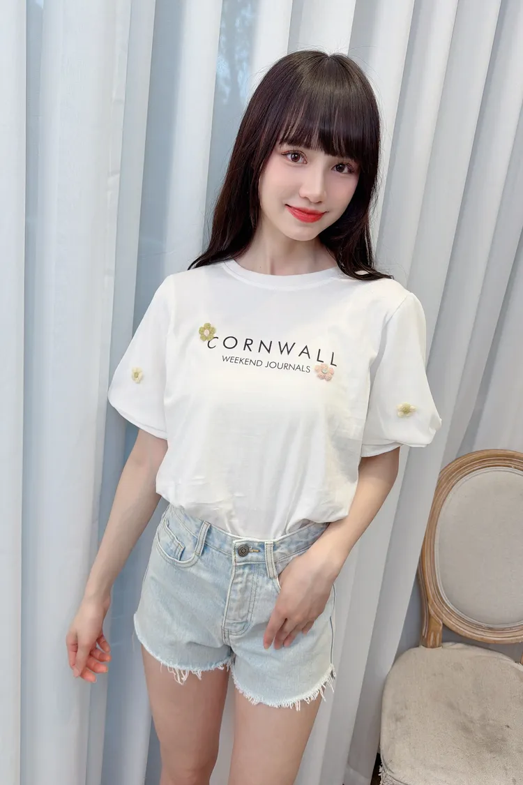 袖花朵字母上衣/2色