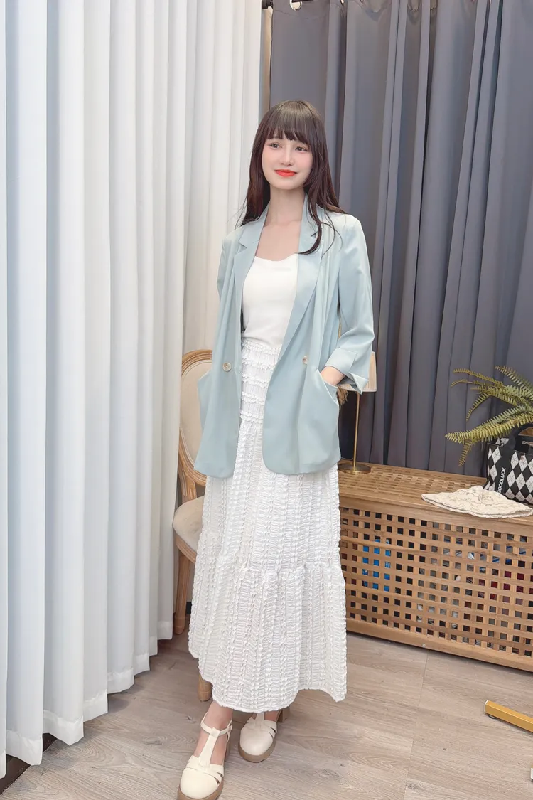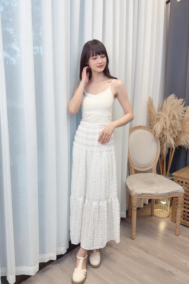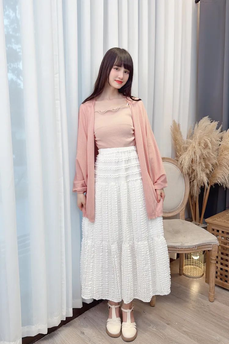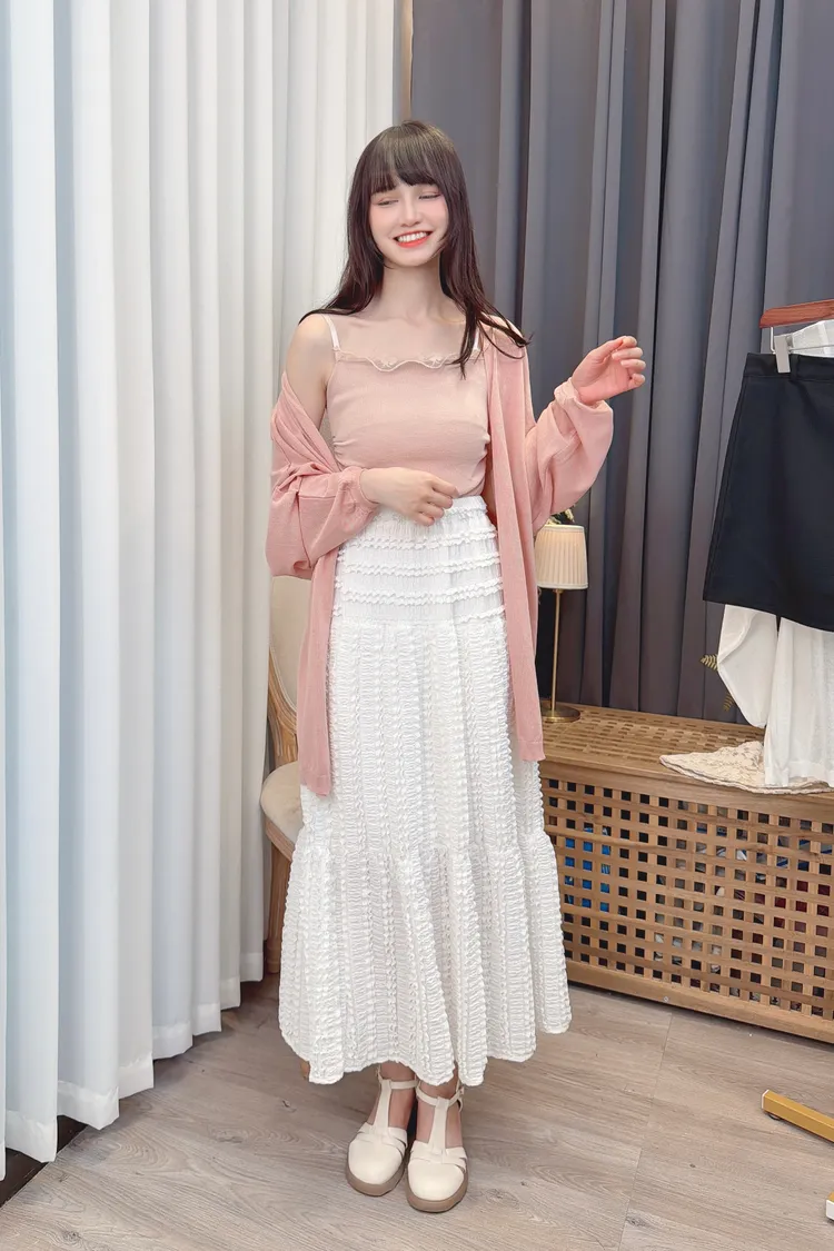 鬆緊腰圍蕾絲長裙/1色