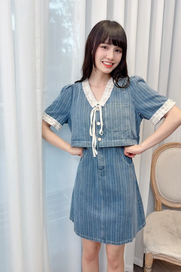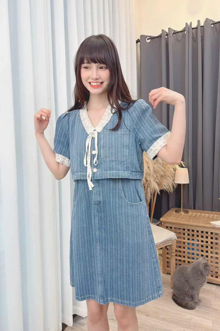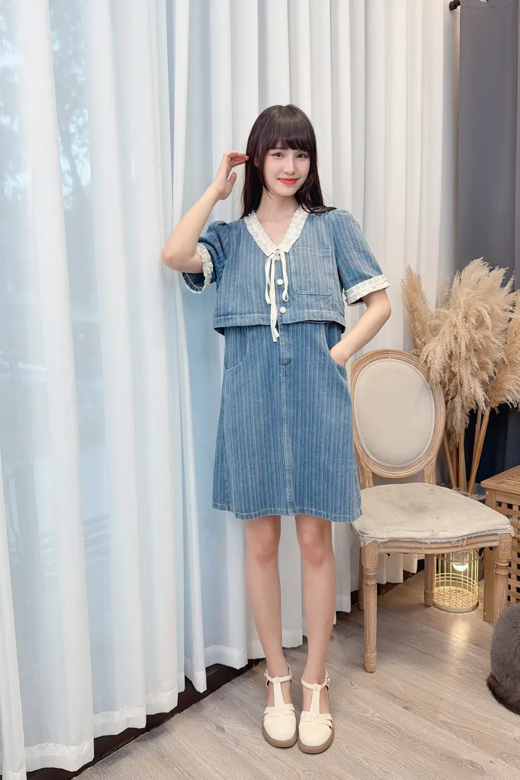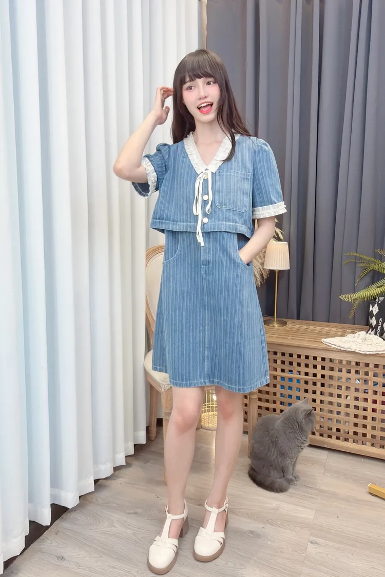 假兩件造型牛仔短洋/1色