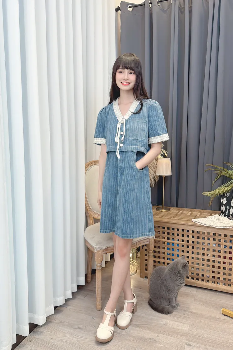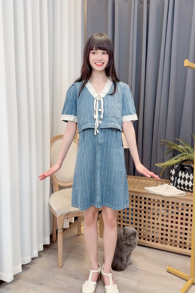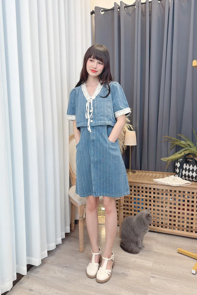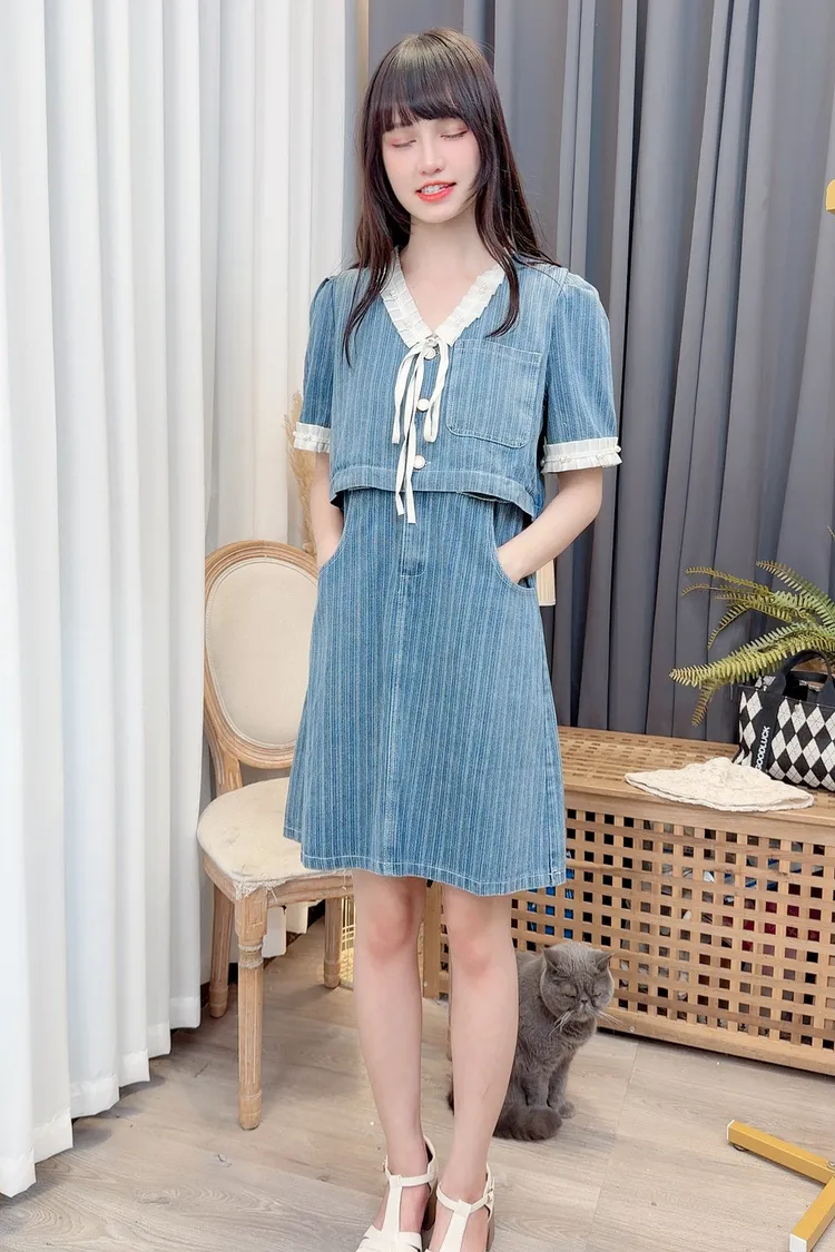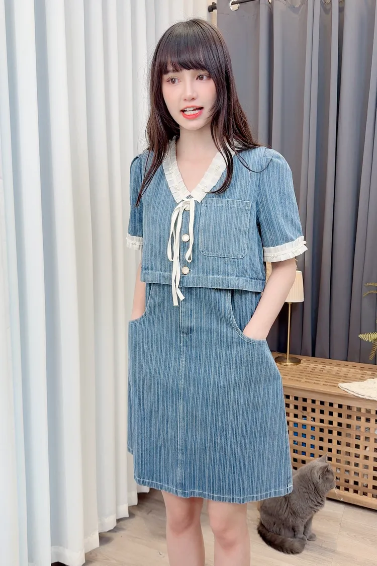 假兩件造型牛仔短洋/1色