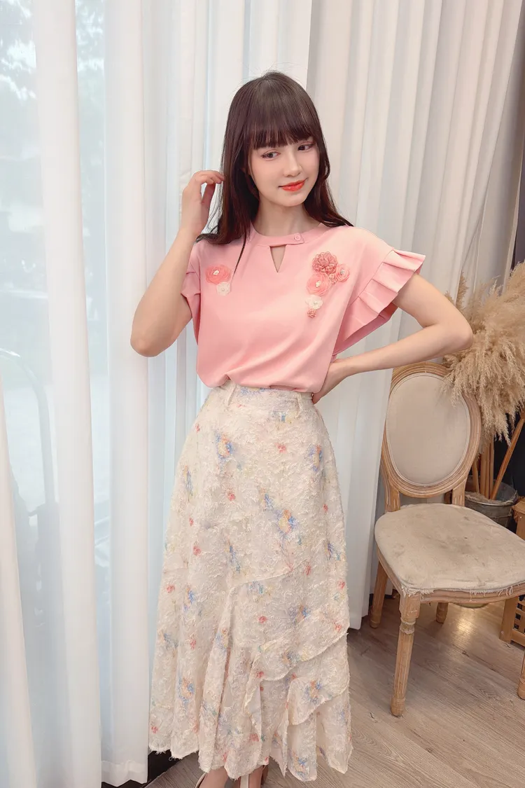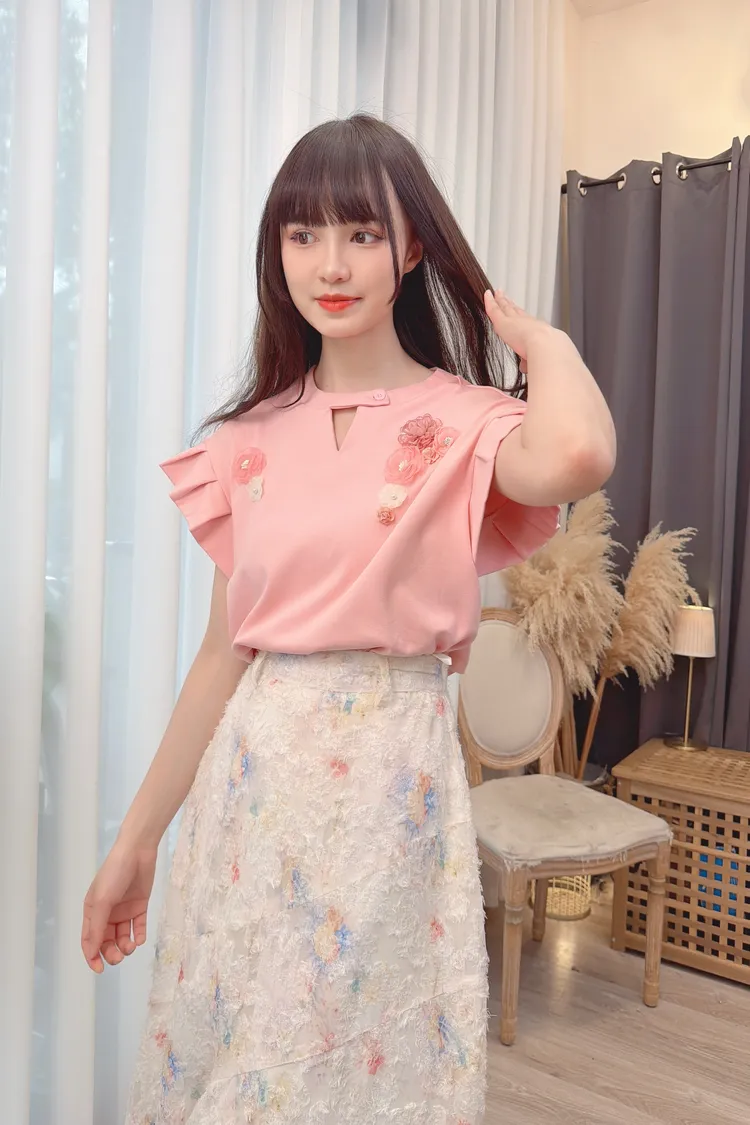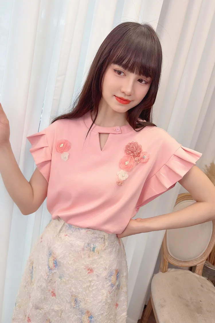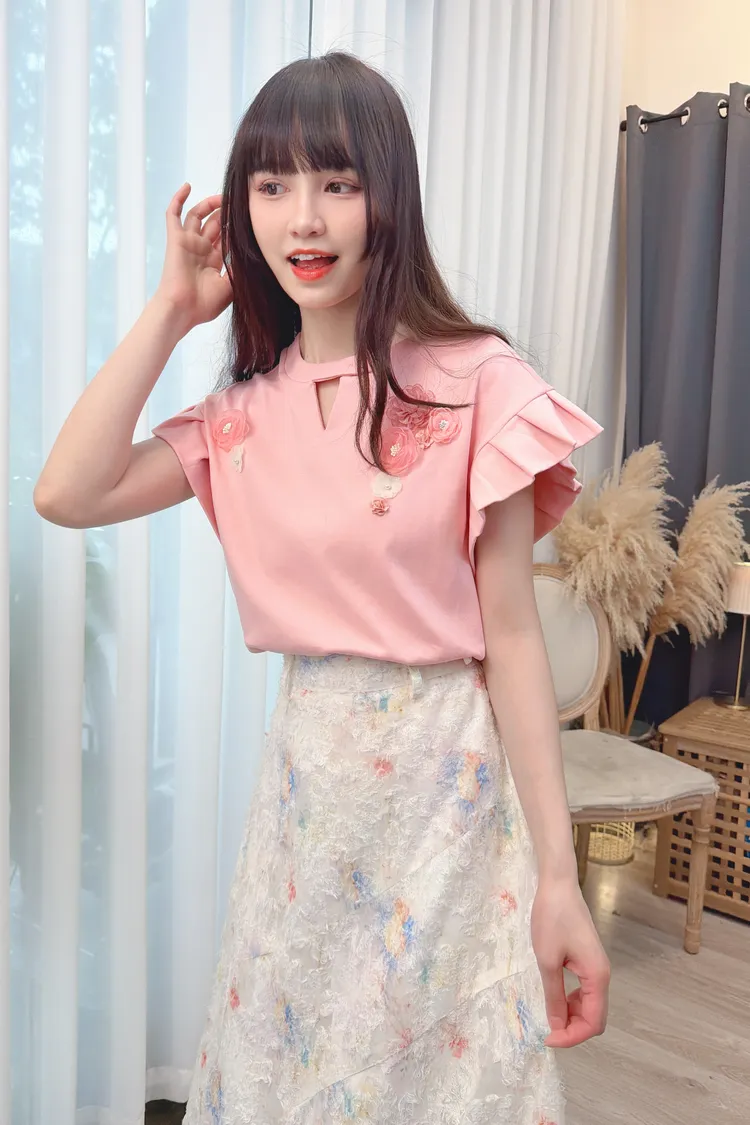 前鏤空造型花朵上衣/1色