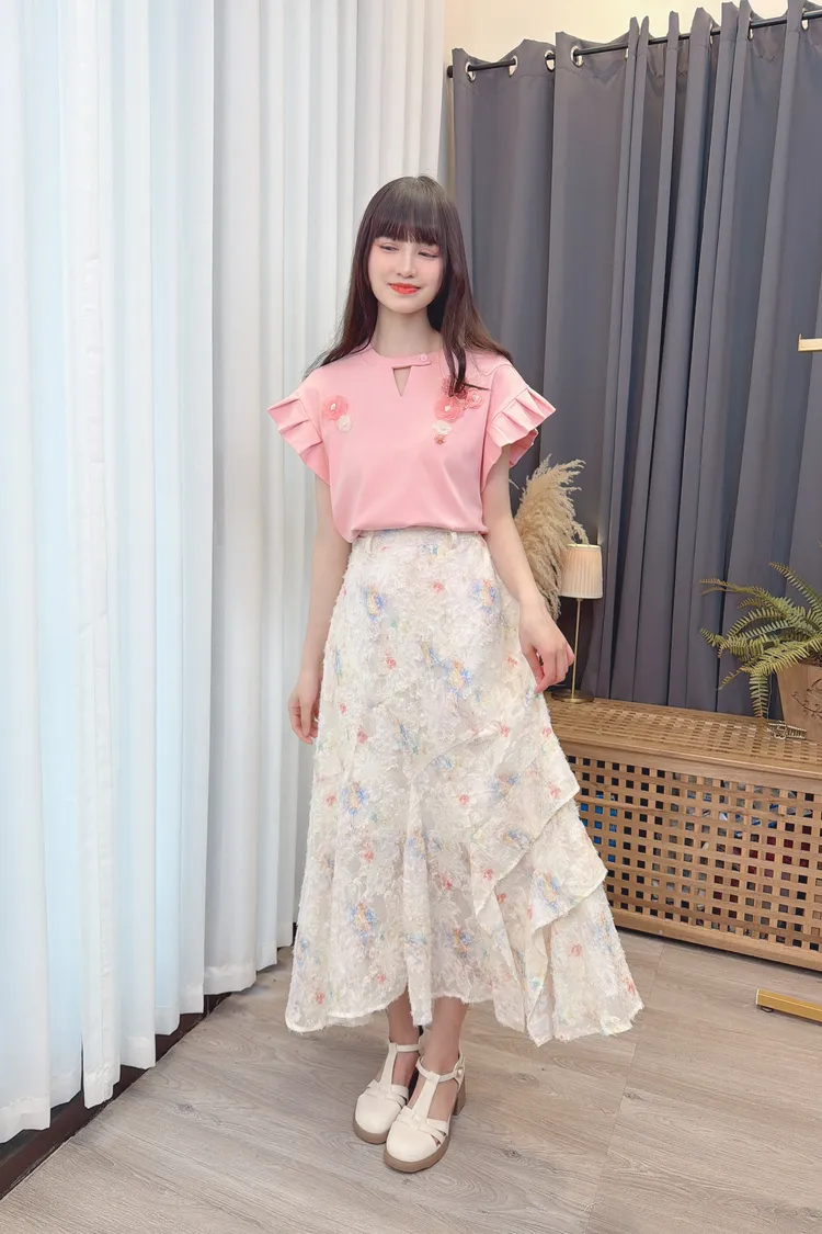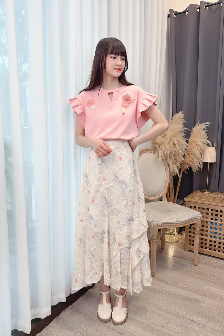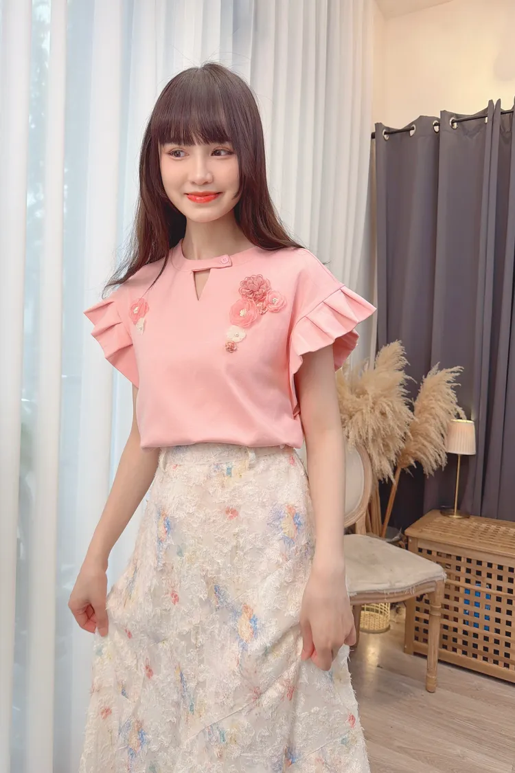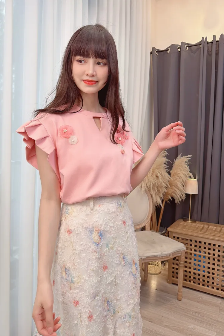 前鏤空造型花朵上衣/1色