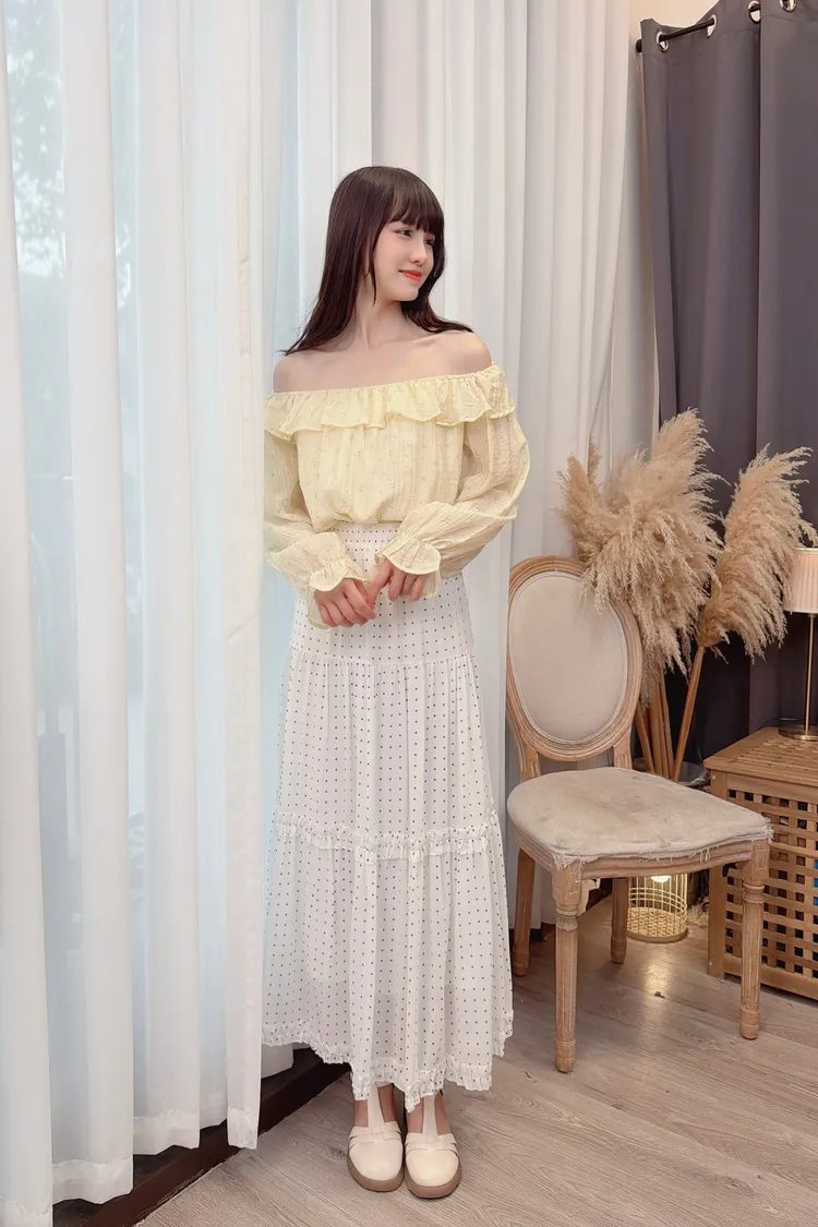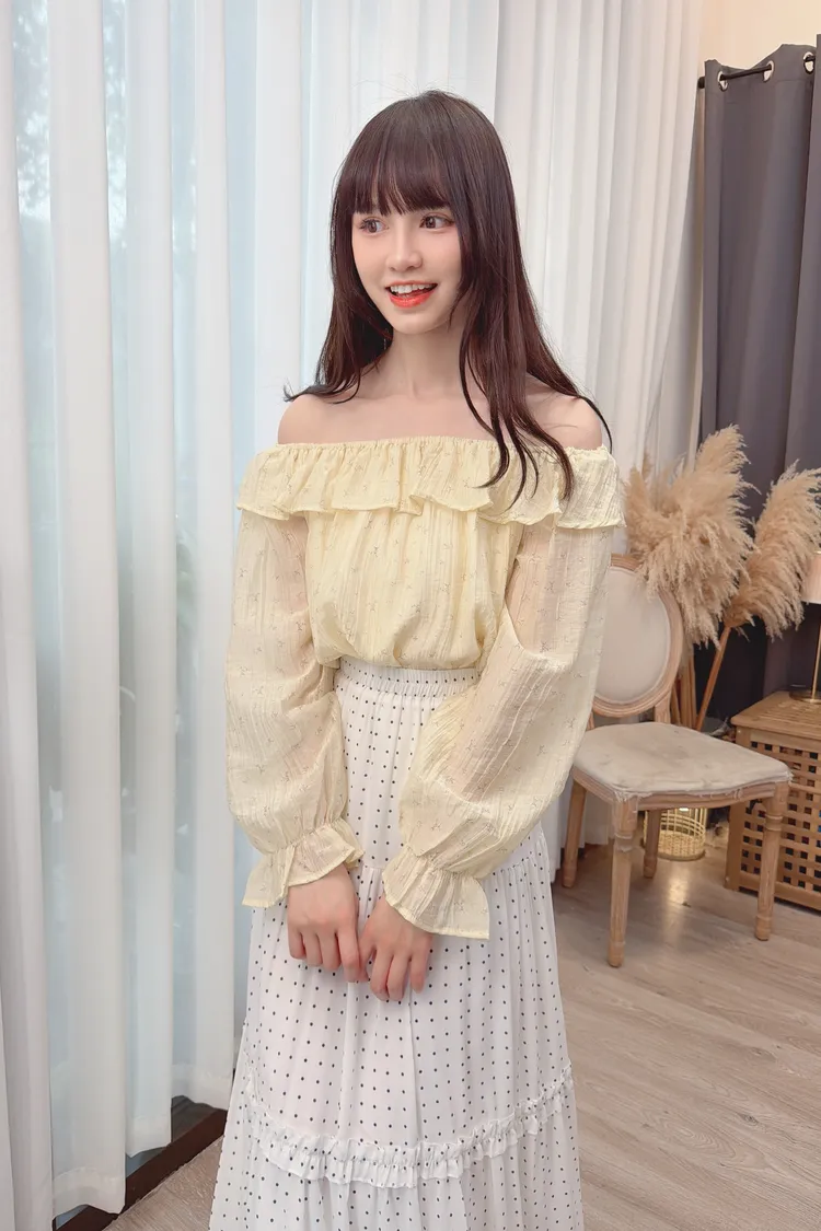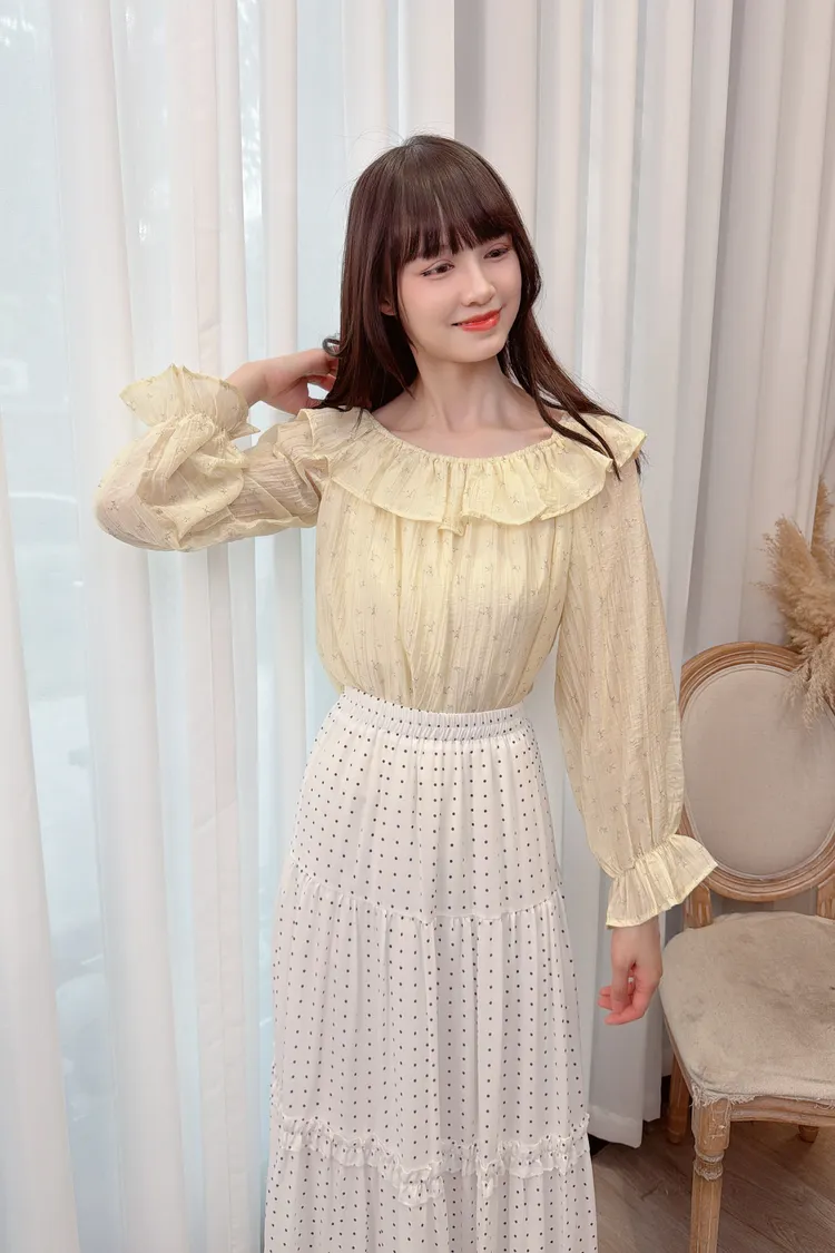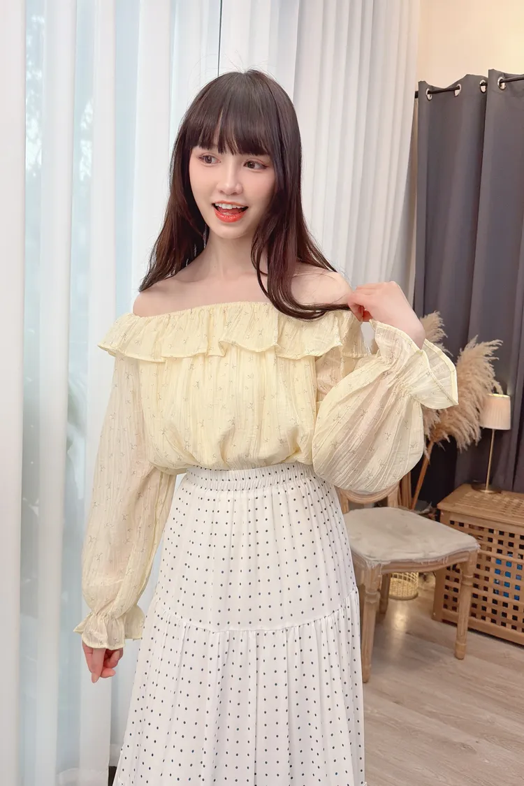 溫柔小花可拉一字領上衣/1色