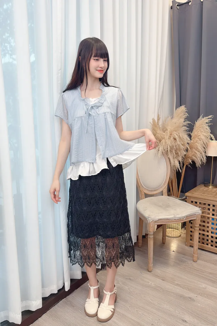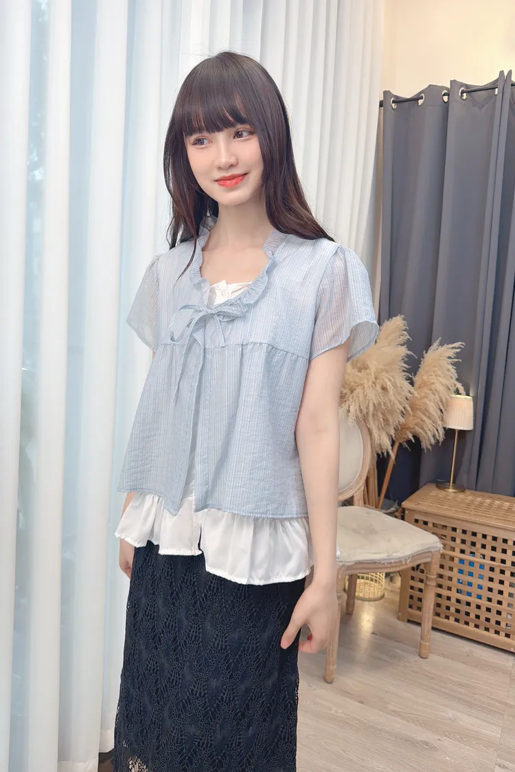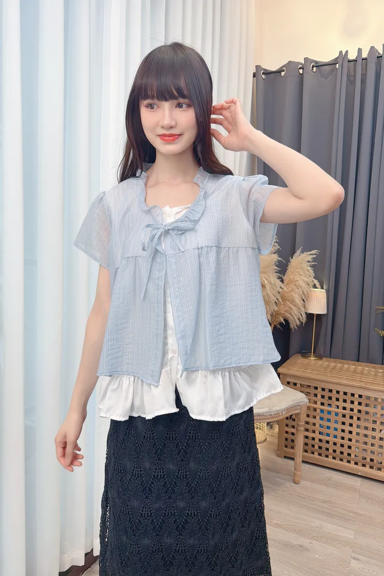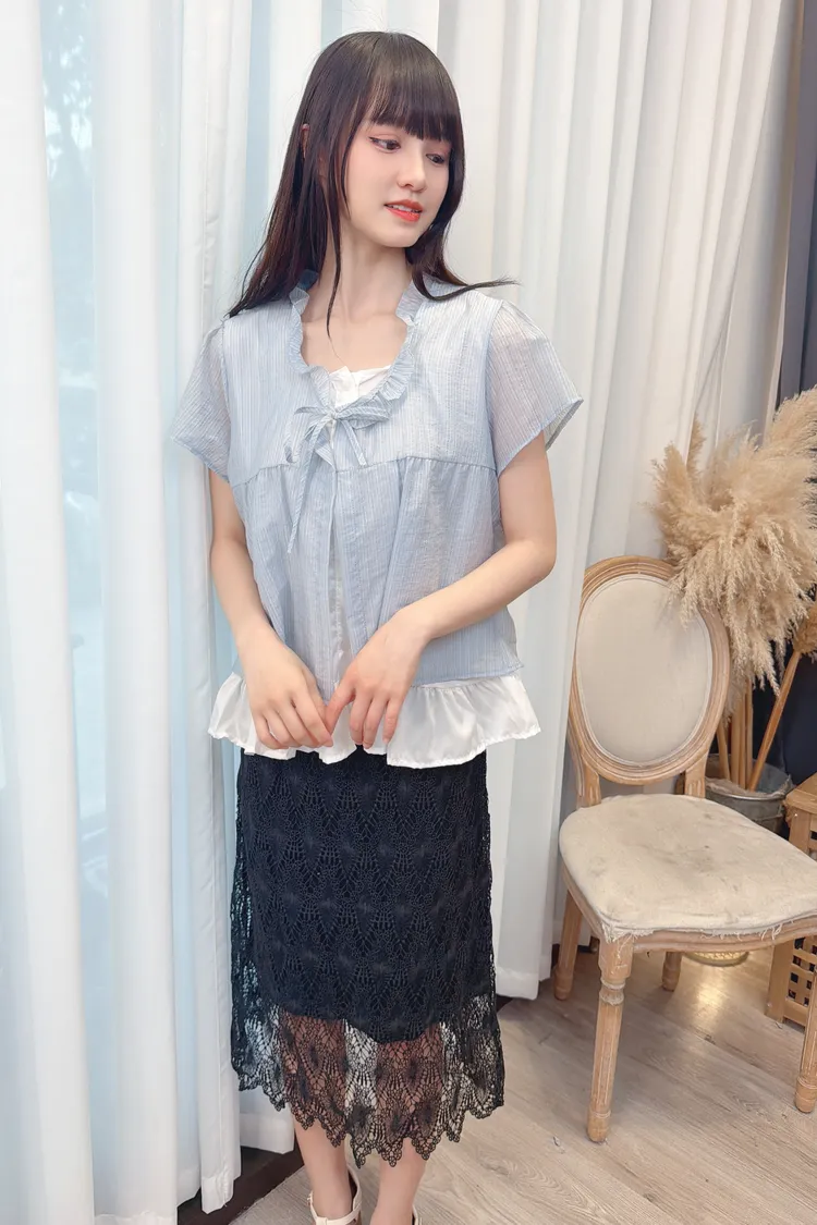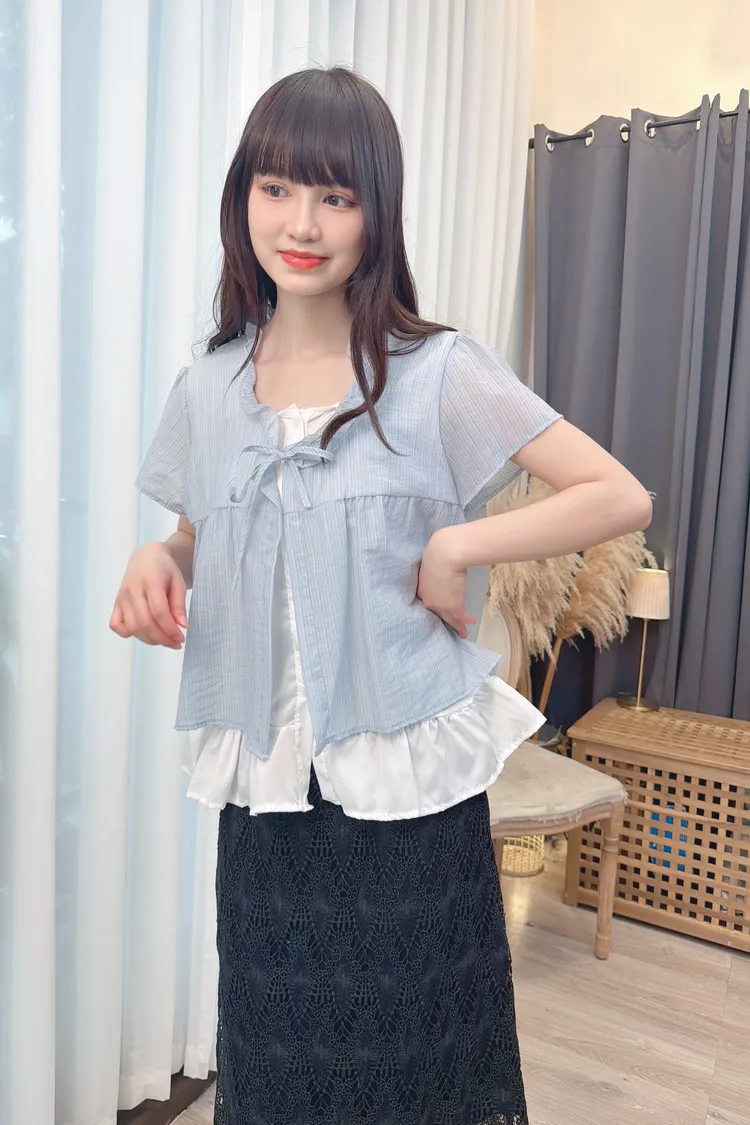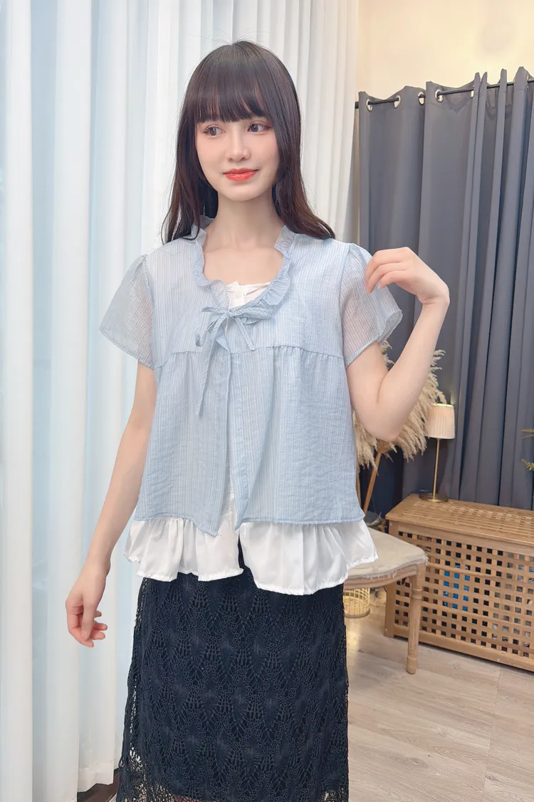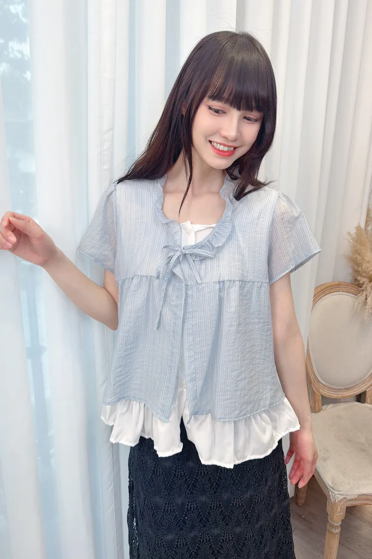 領綁帶假兩件造型上衣/1色