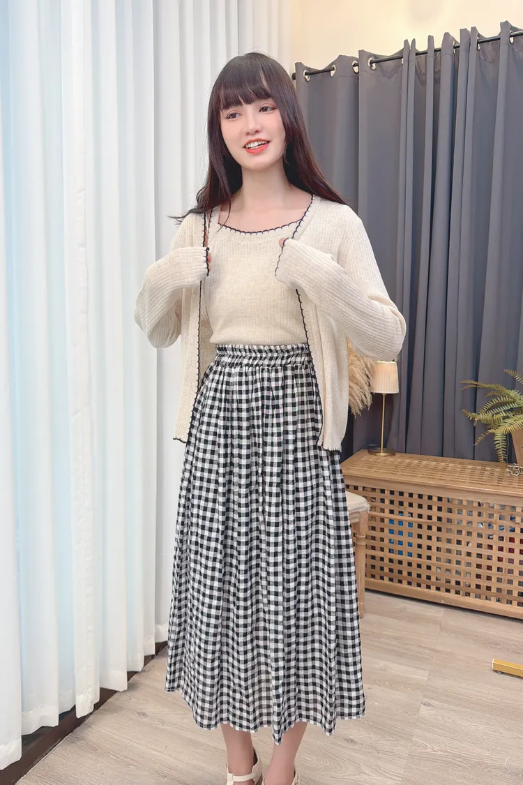 黑白小方格長裙/1色