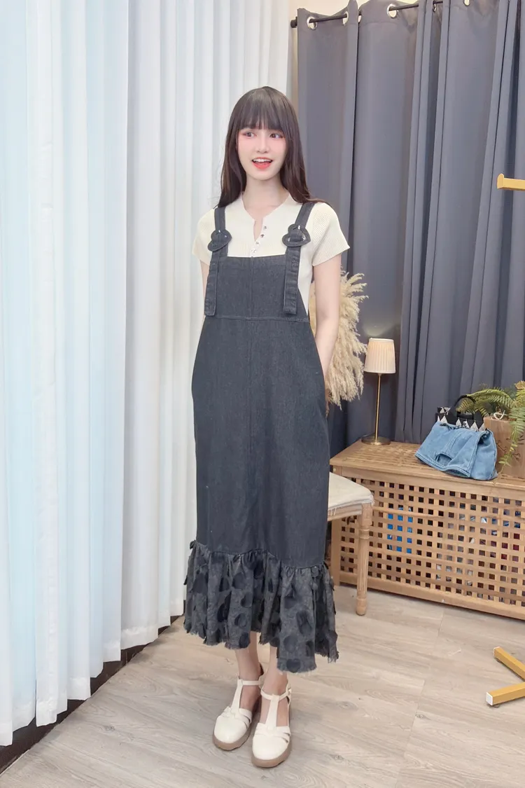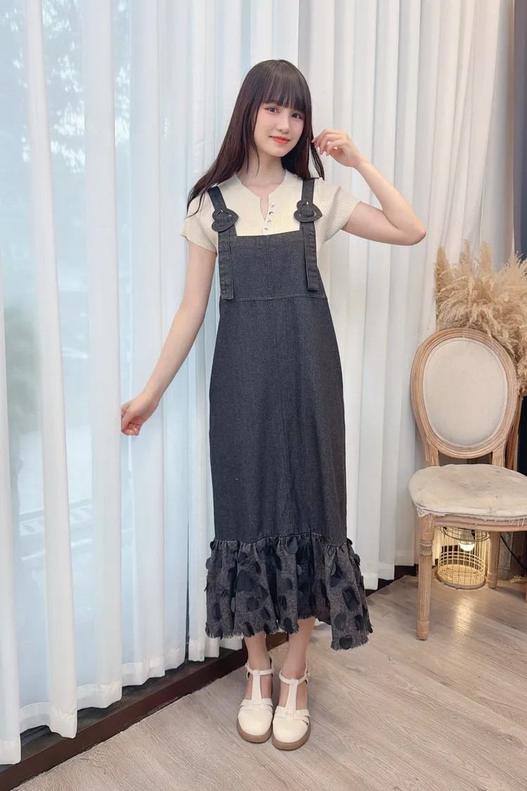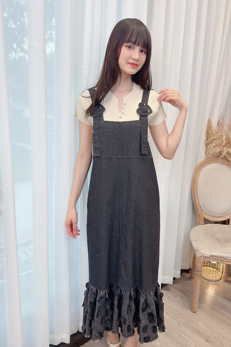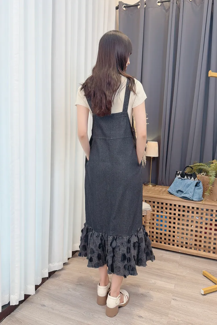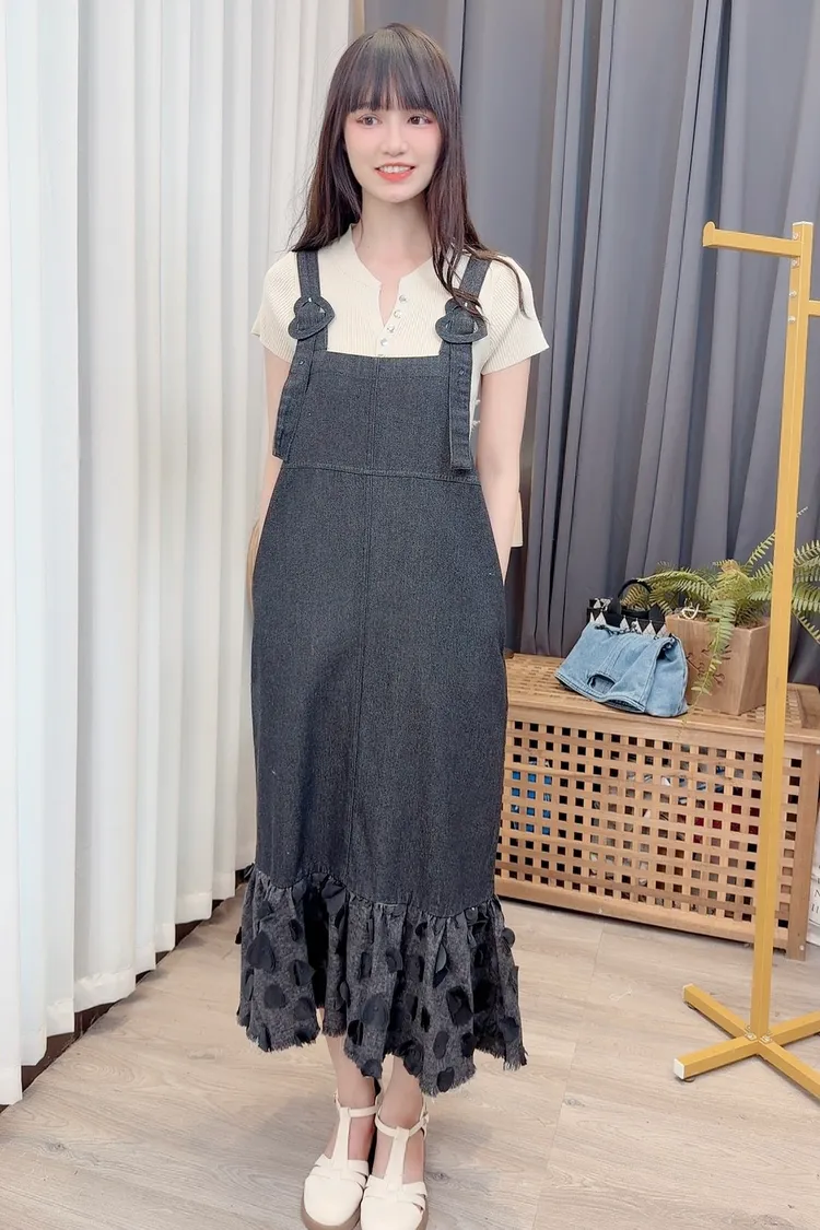 小愛心點綴背心牛仔洋裝/1色