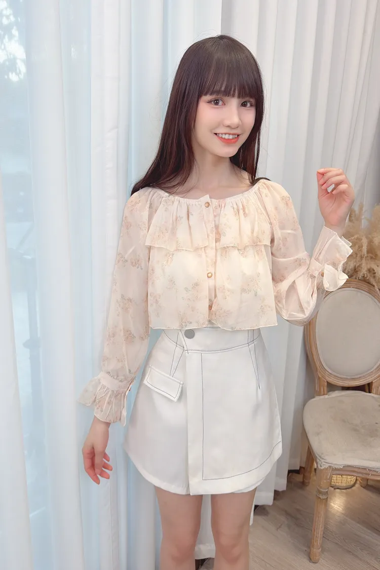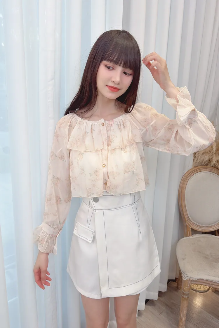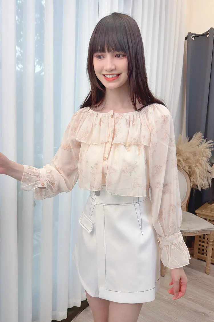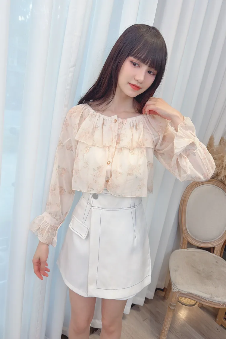 前荷葉暈染花朵雪紡上衣/1色